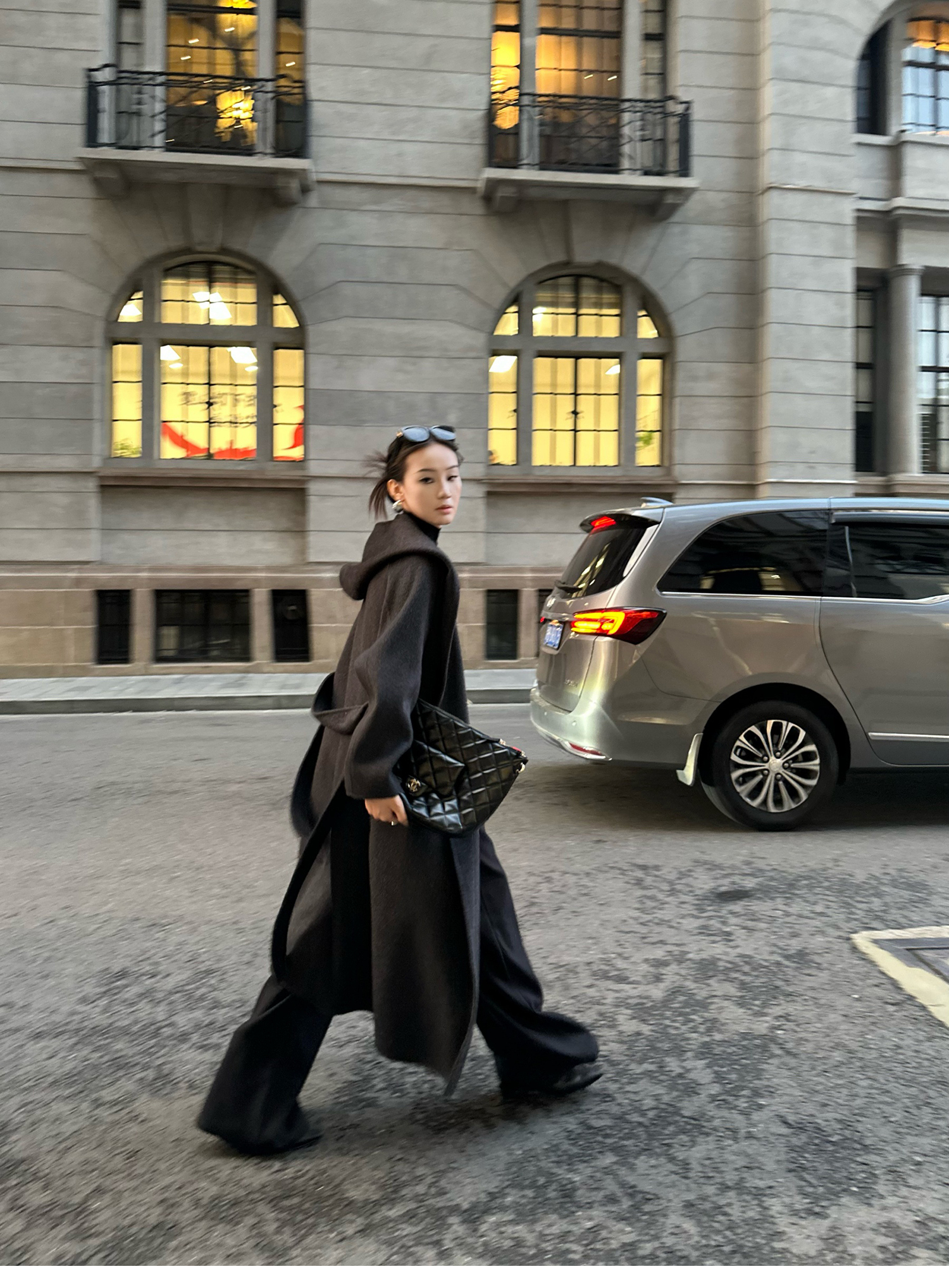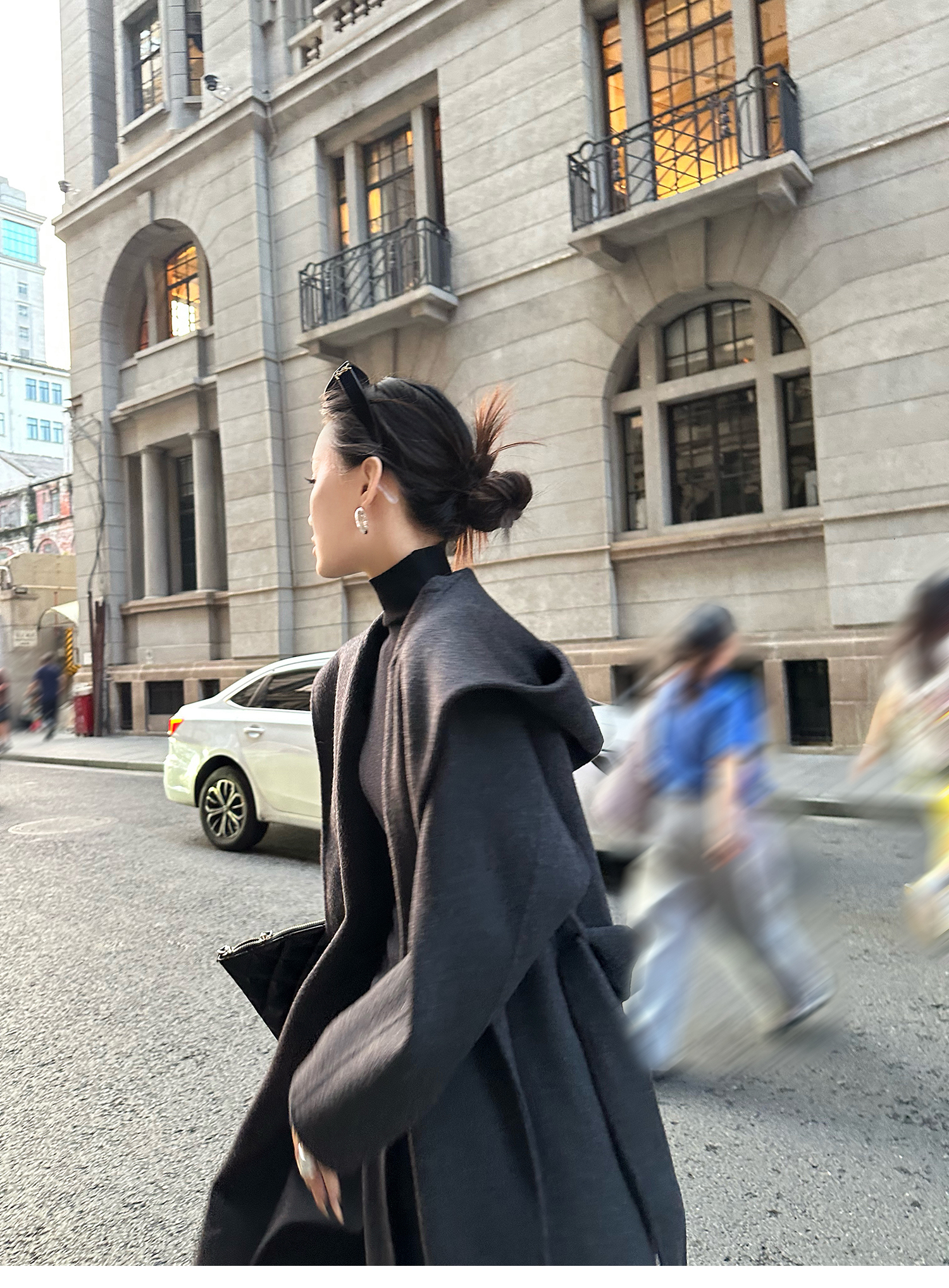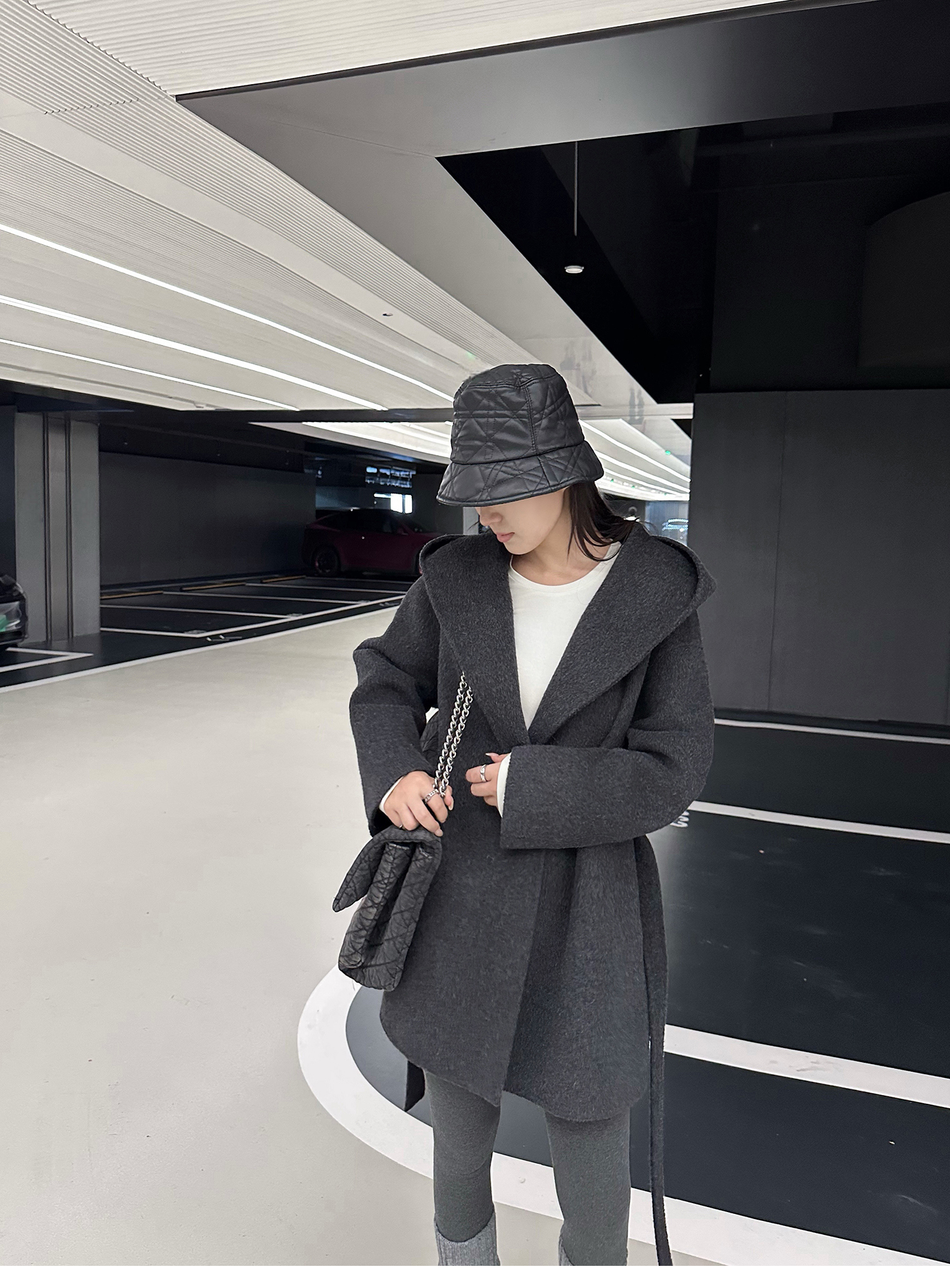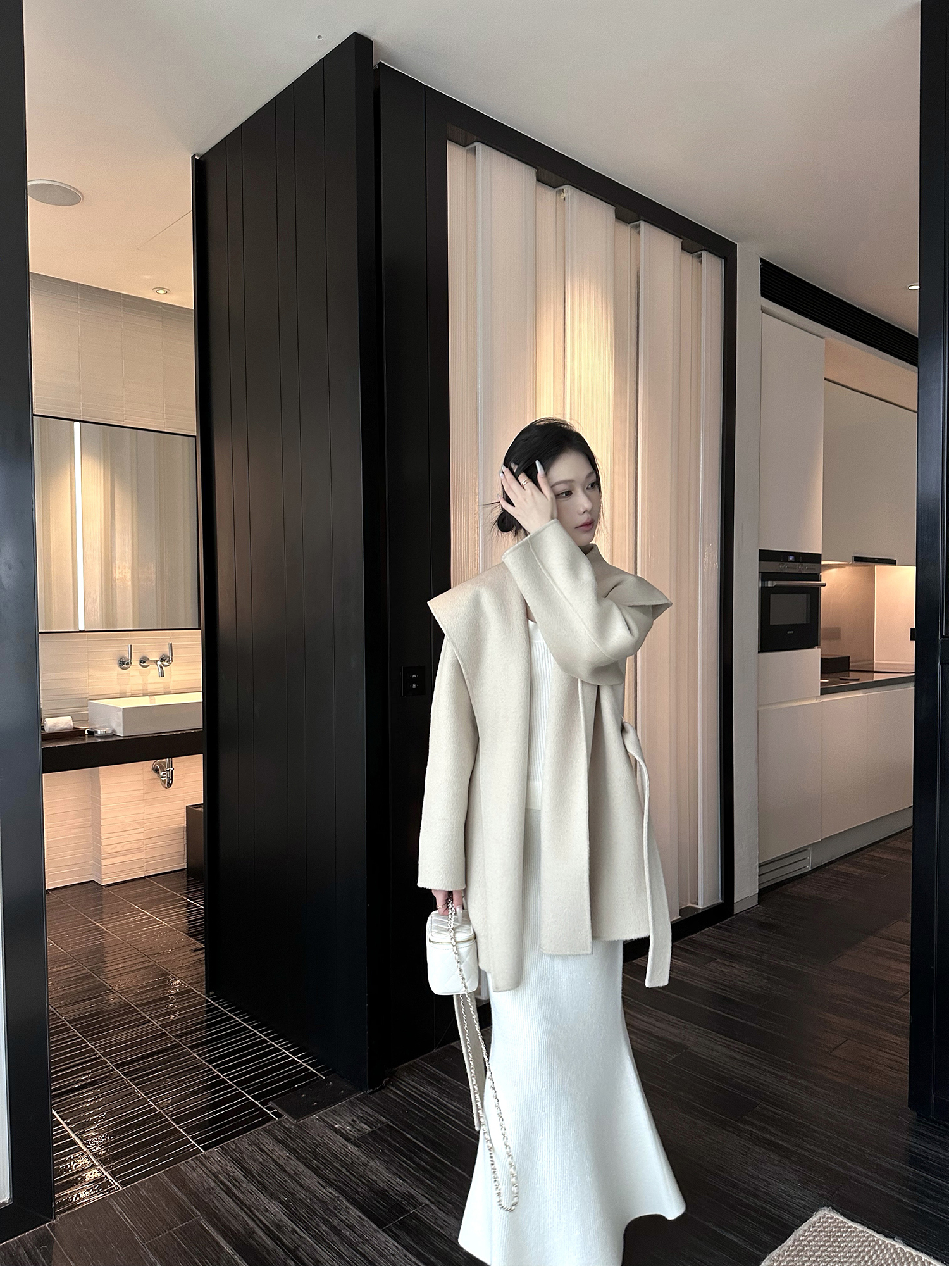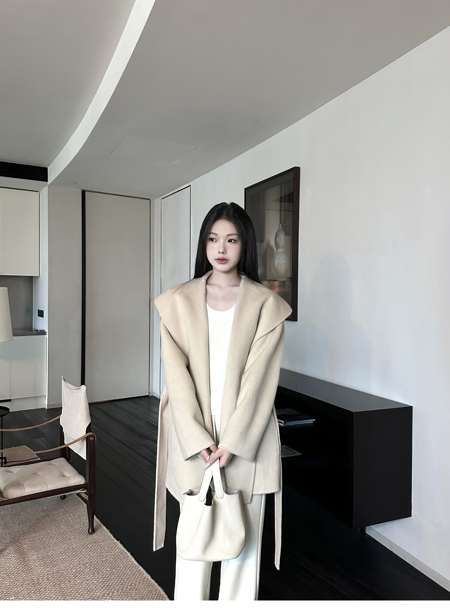 5Werkwen Minimalist the Row Hooded Wool Oversized Double-Sided Woolen Coat