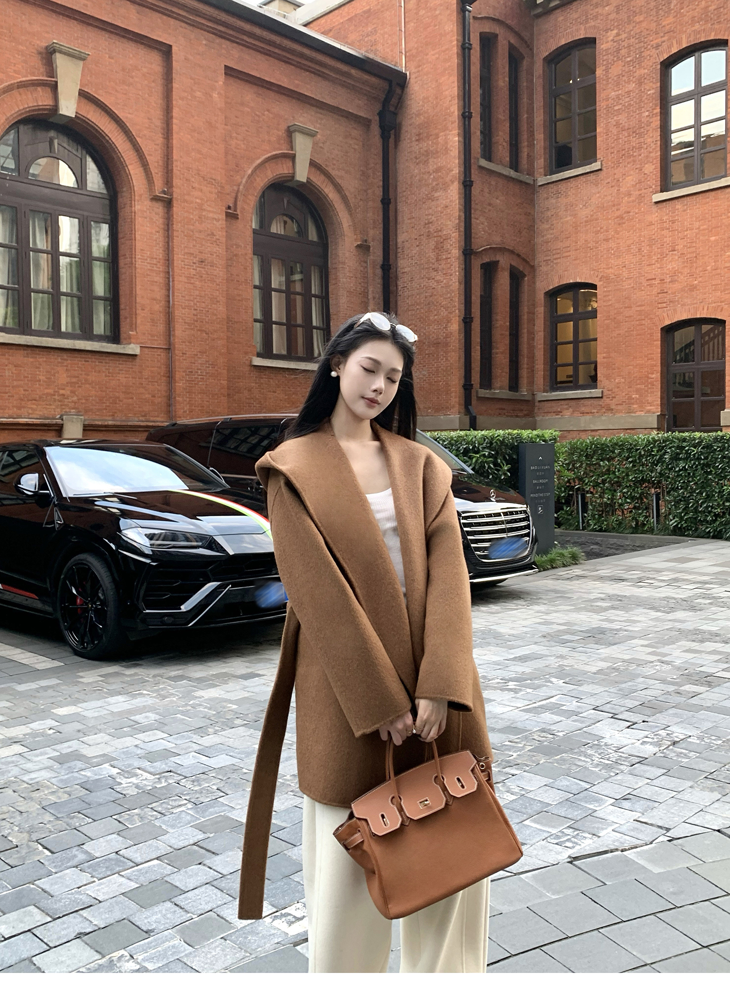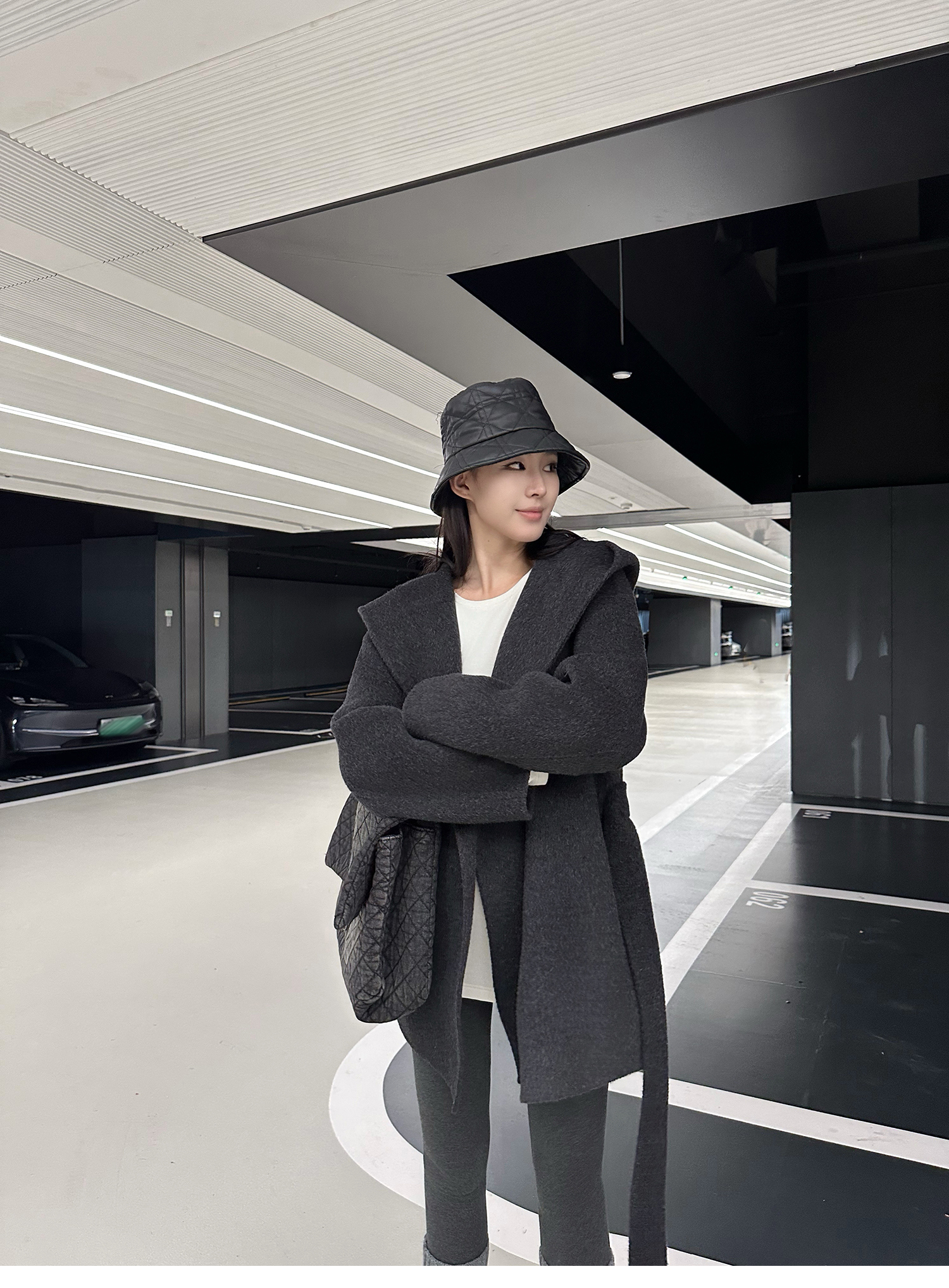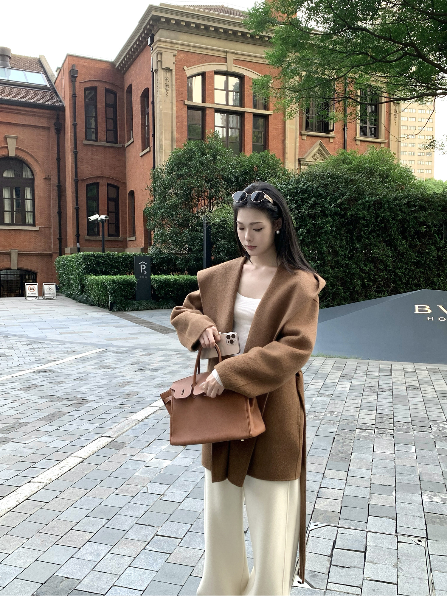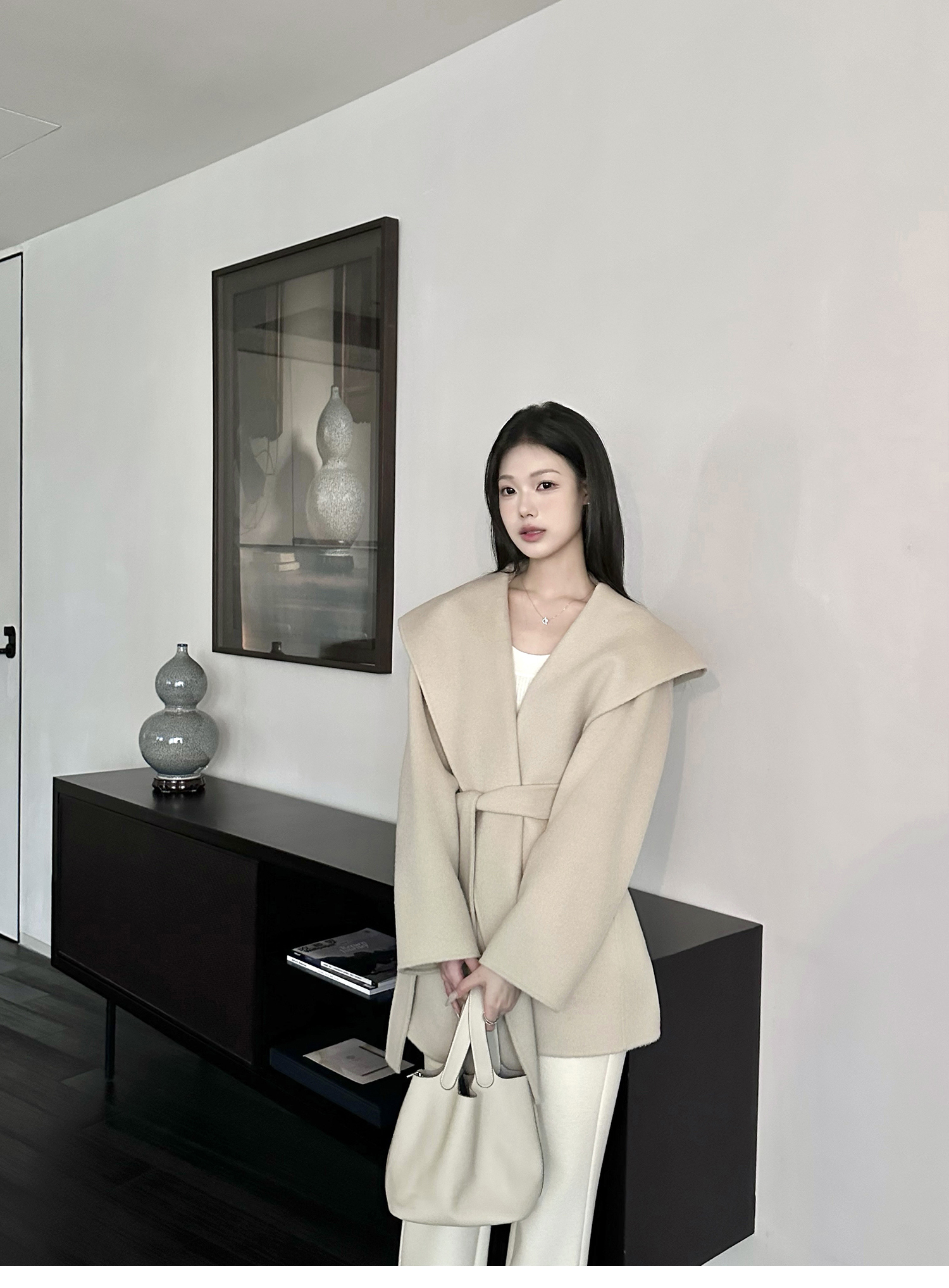 5Werkwen Minimalist the Row Hooded Wool Oversized Double-Sided Woolen Coat