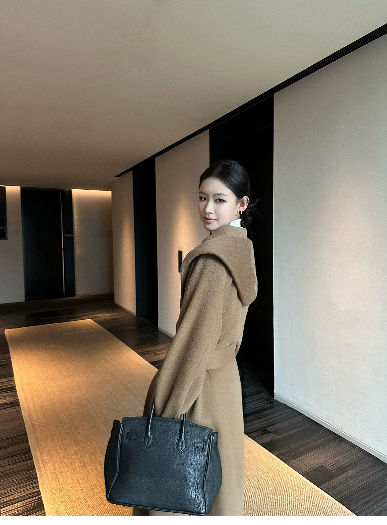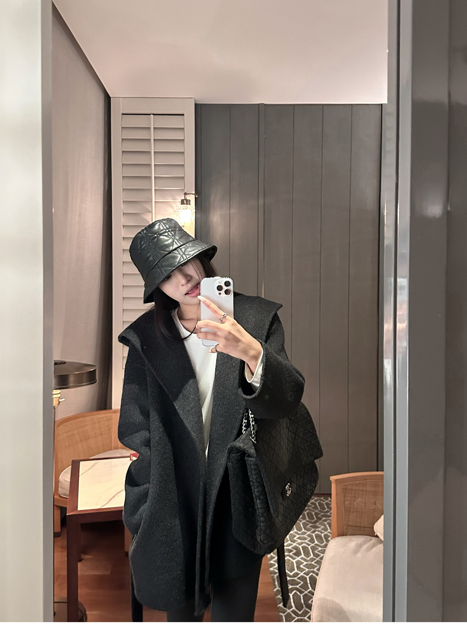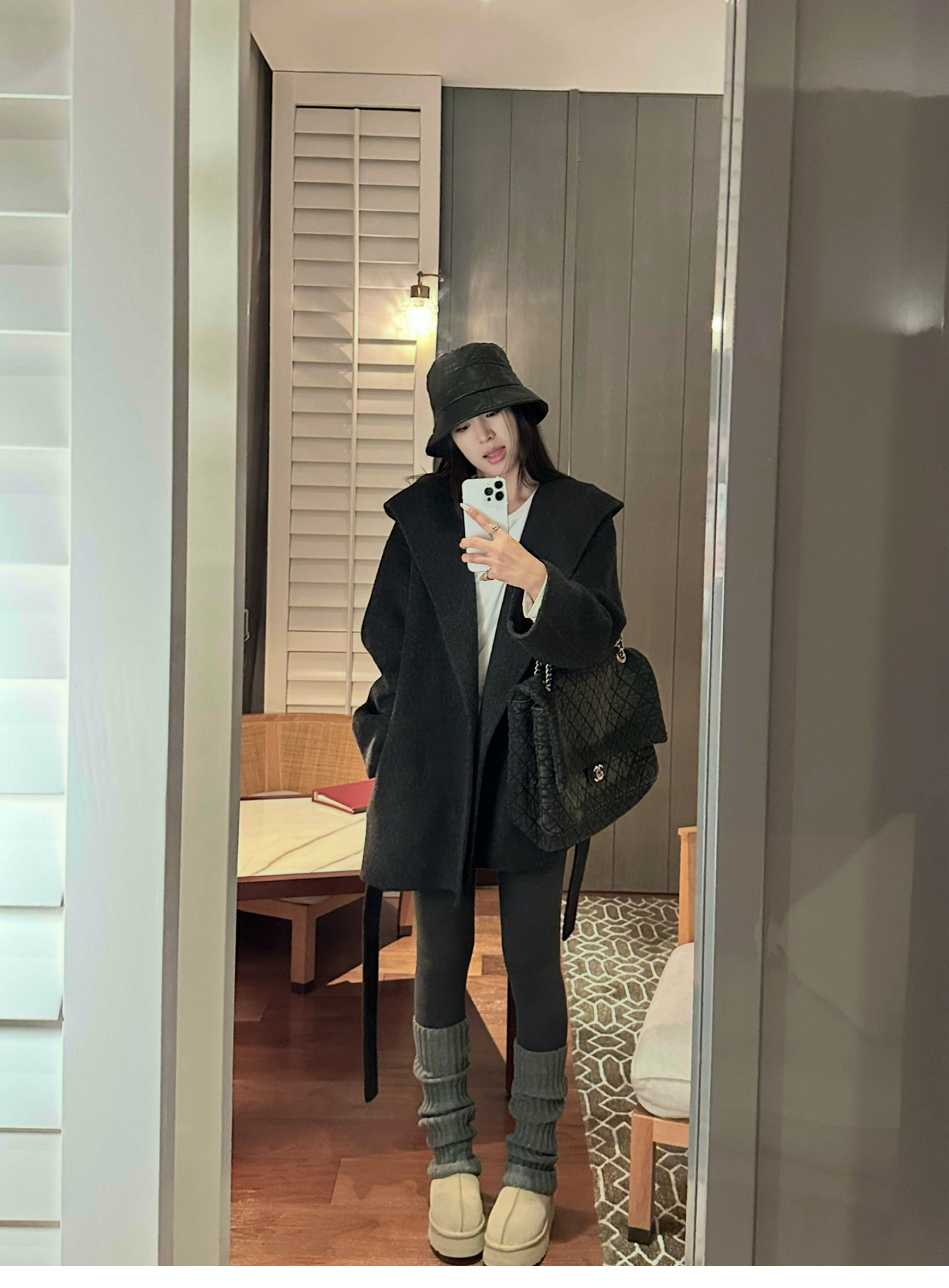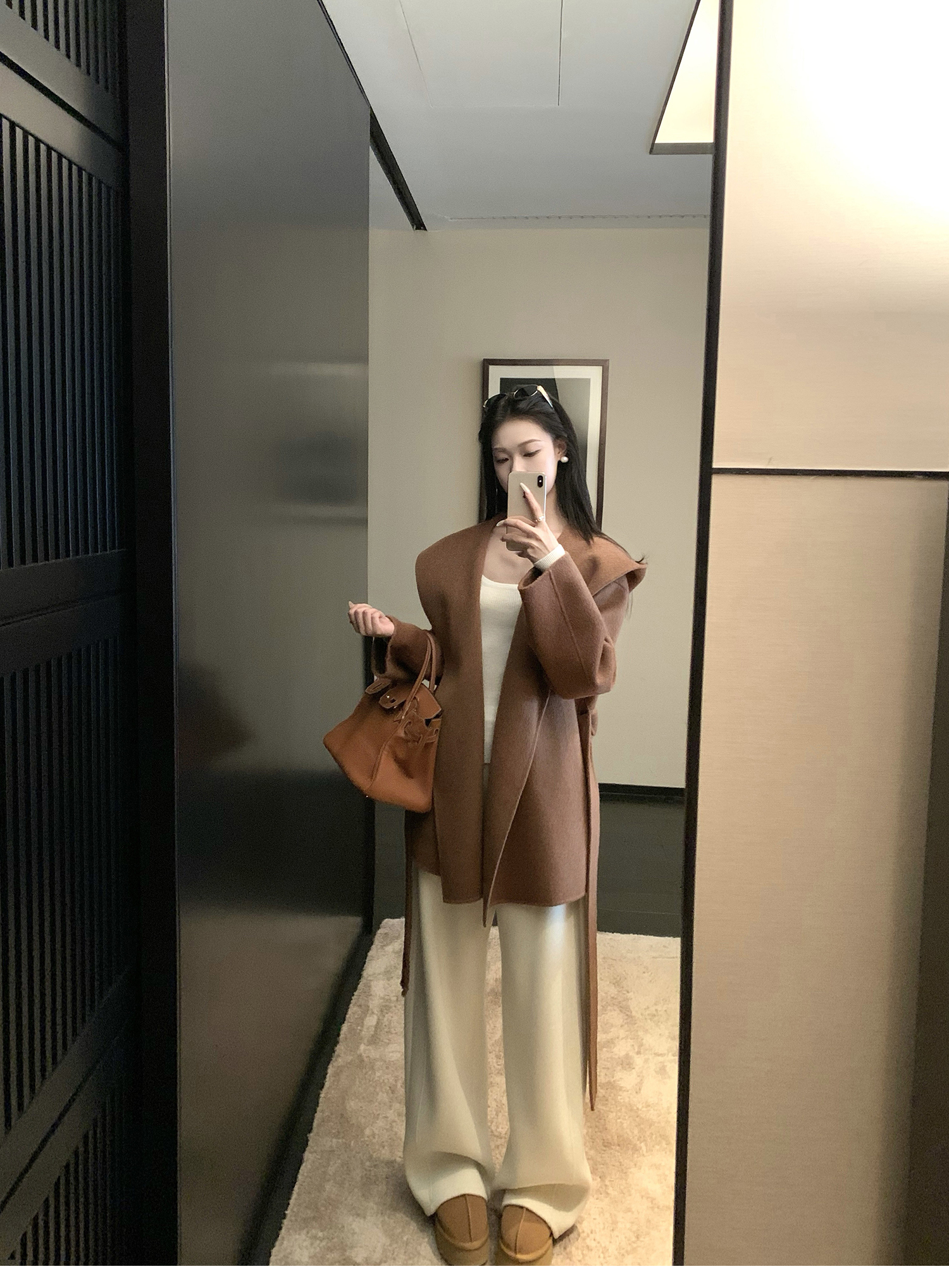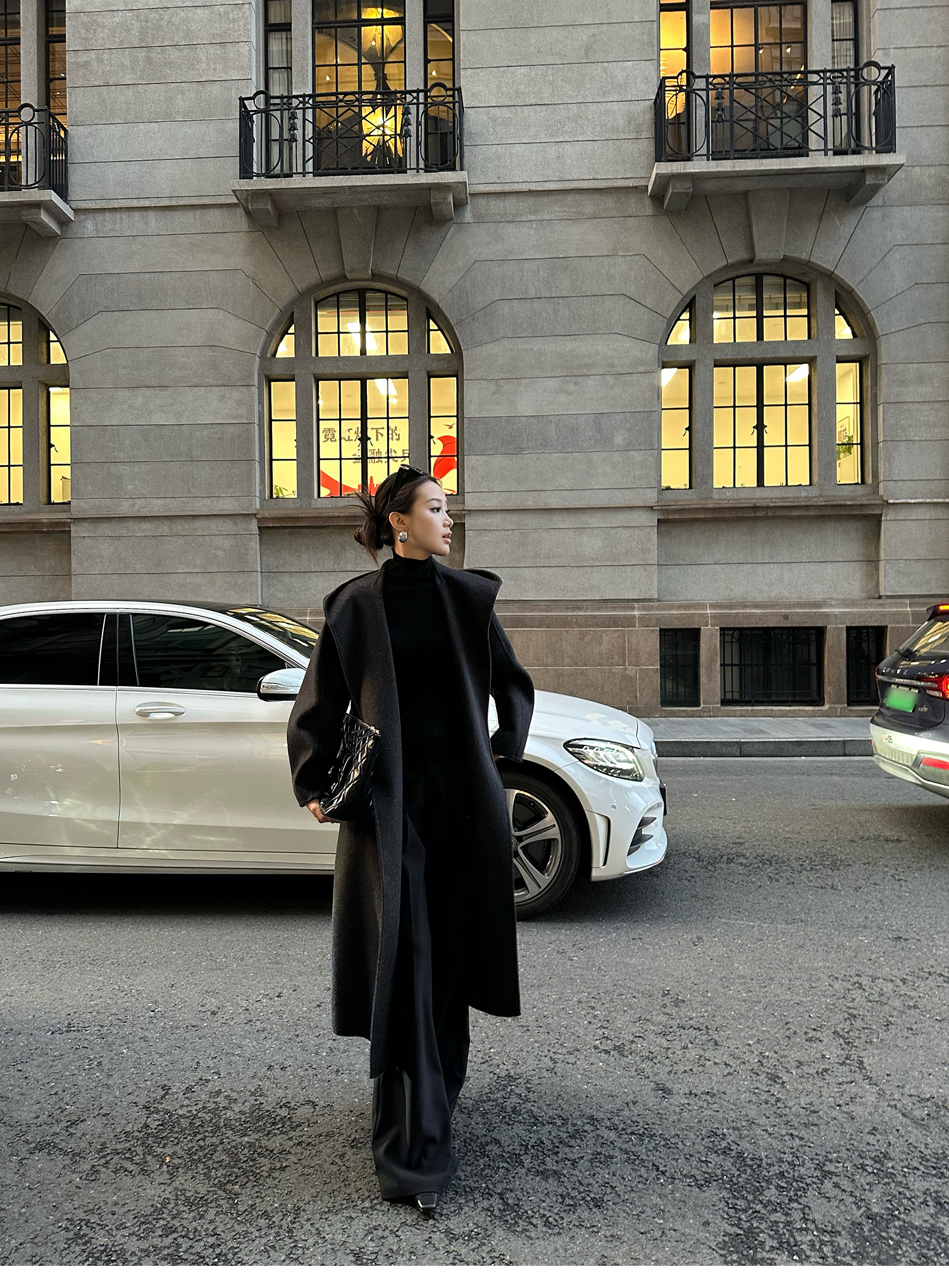 5Werkwen Minimalist the Row Hooded Wool Oversized Double-Sided Woolen Coat
