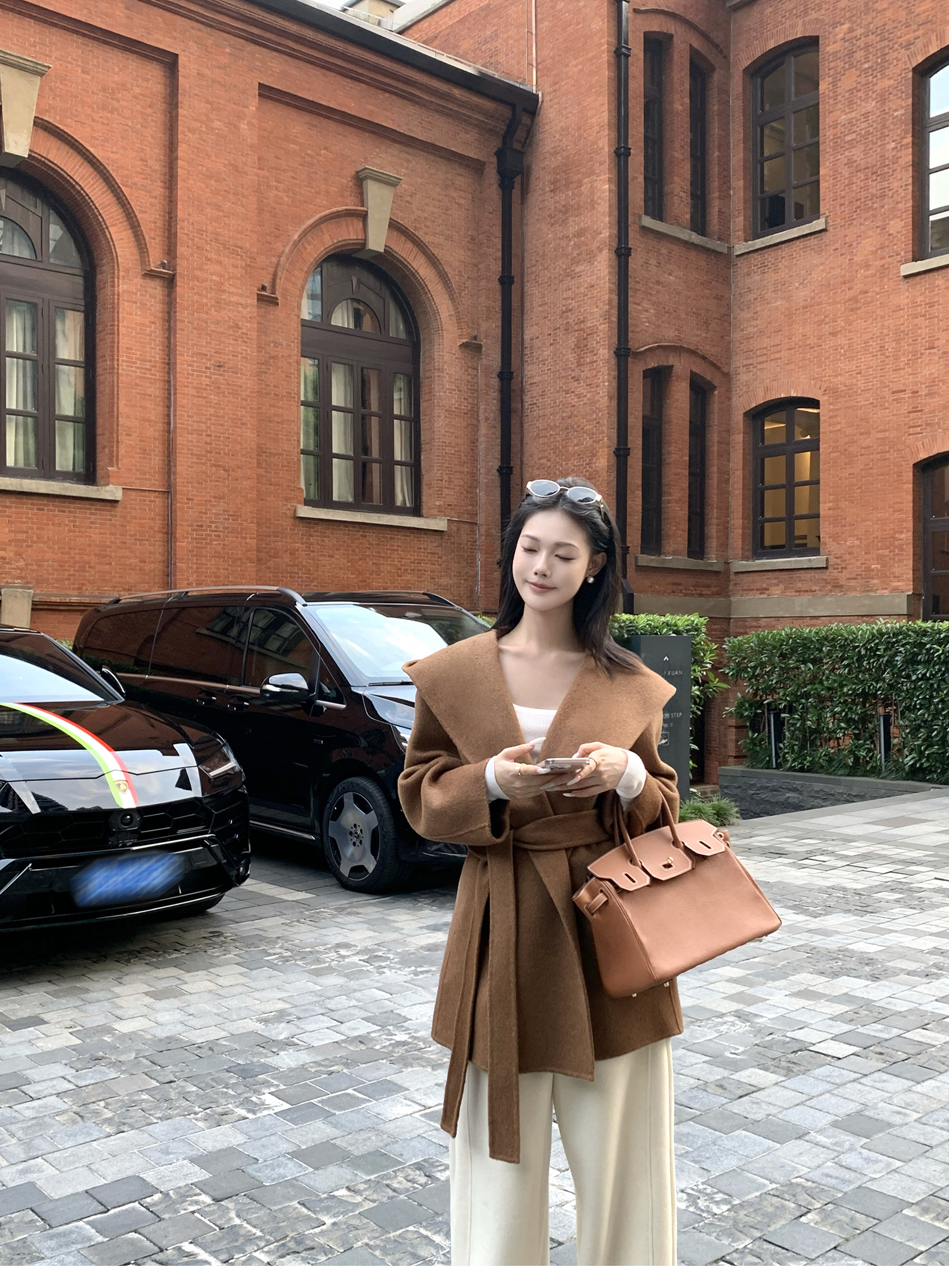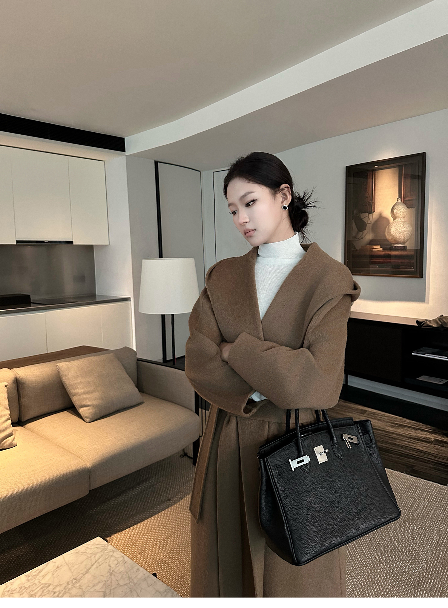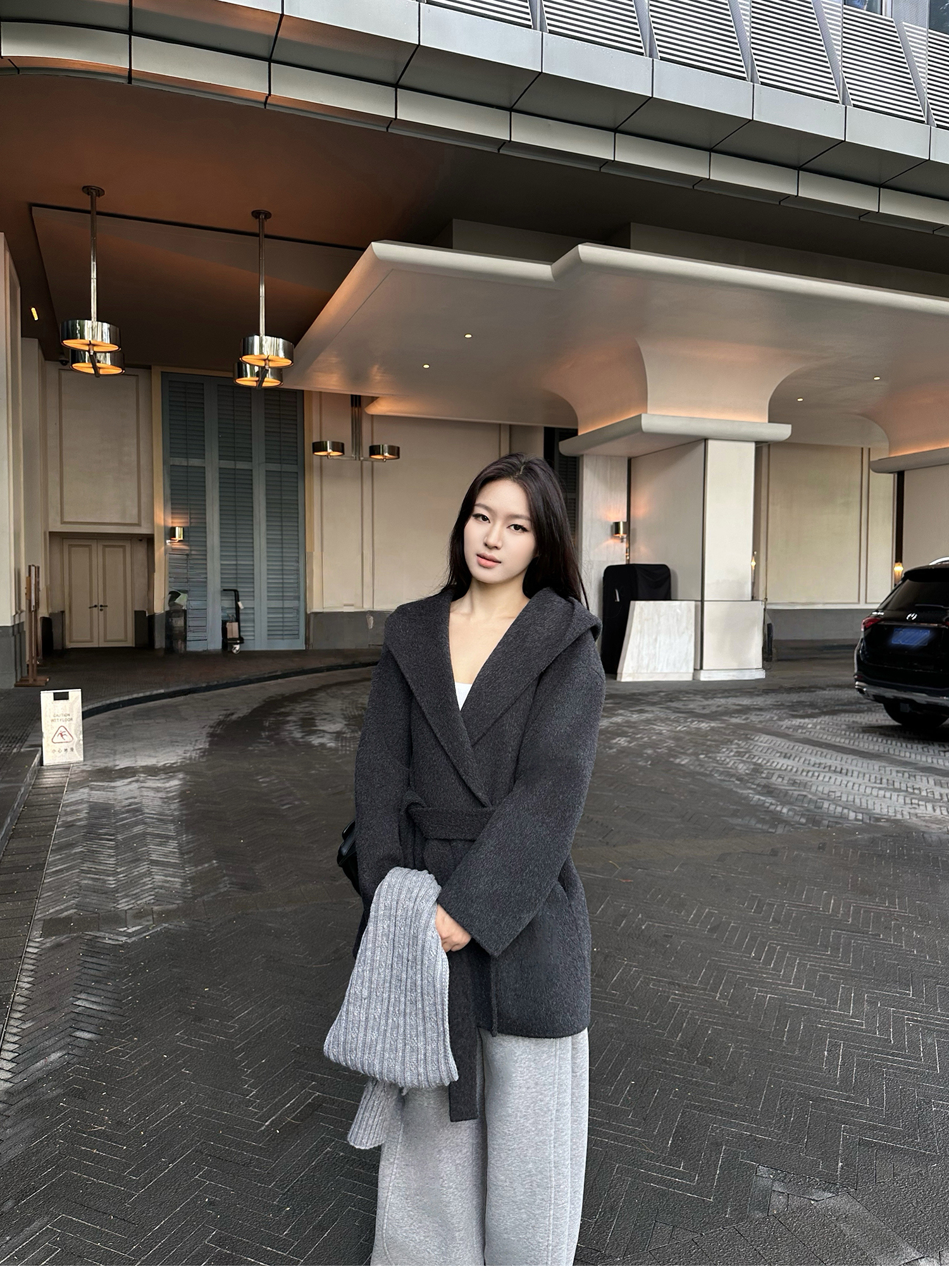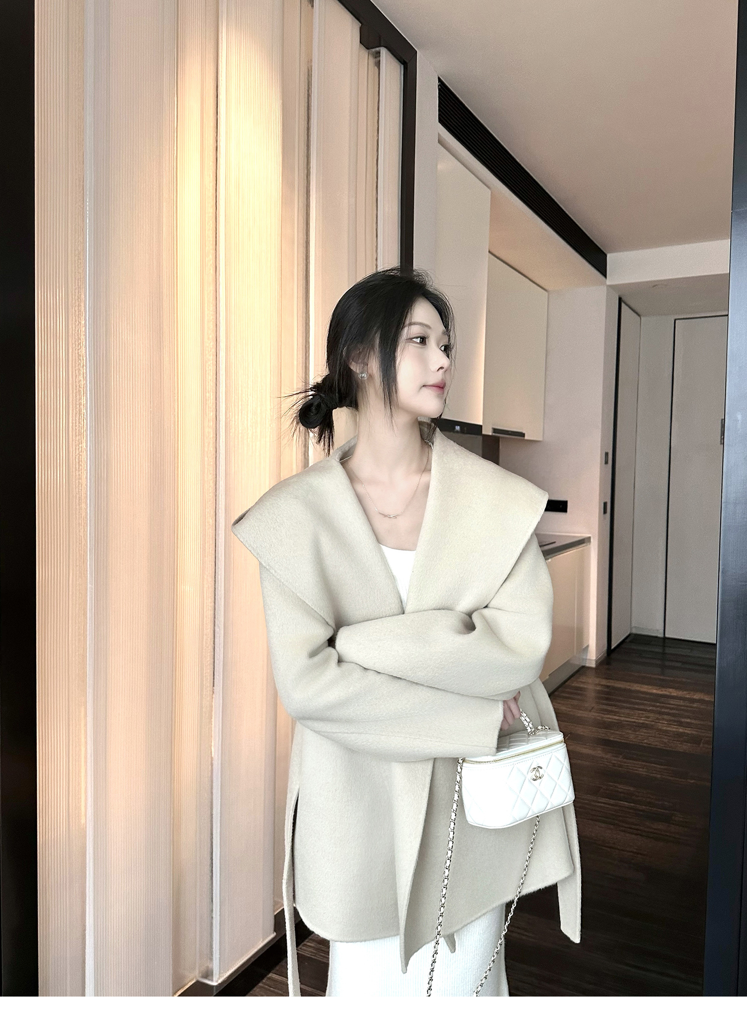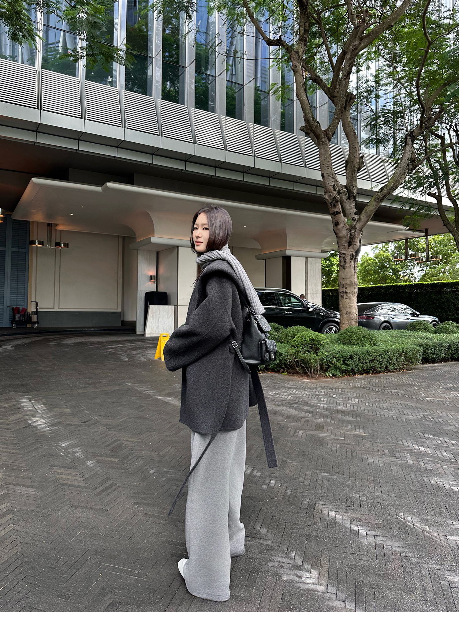 5Werkwen Minimalist the Row Hooded Wool Oversized Double-Sided Woolen Coat