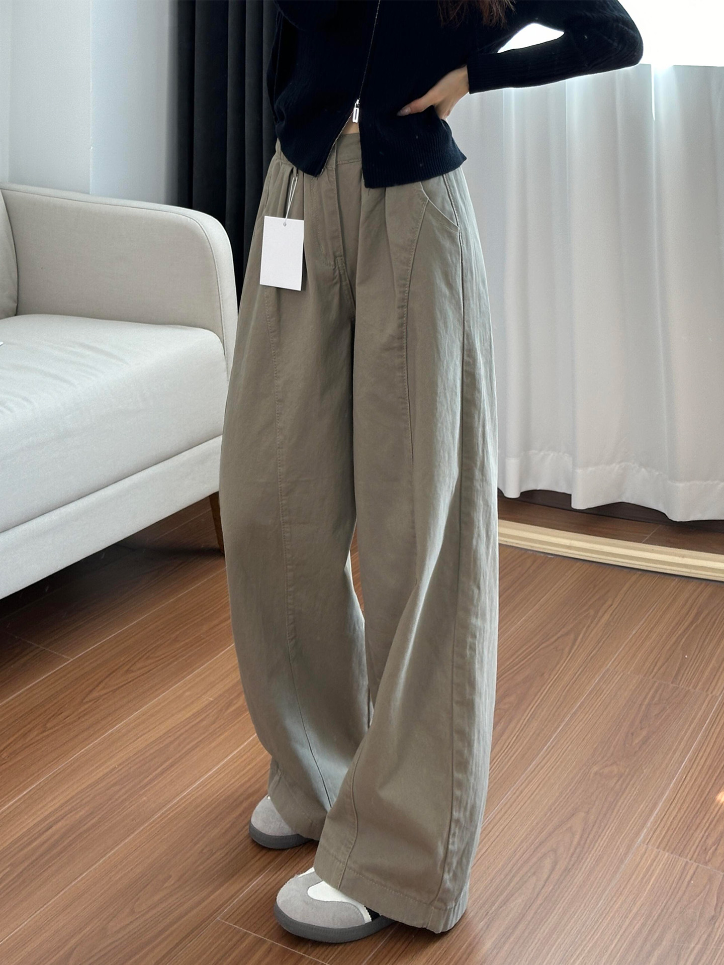 American-Style Khaki Workwear Casual Pants for Women, New Autumn Collection, Plus Size, High-Waisted, Loose, Slimming, Wide-Leg Scimitar Pants