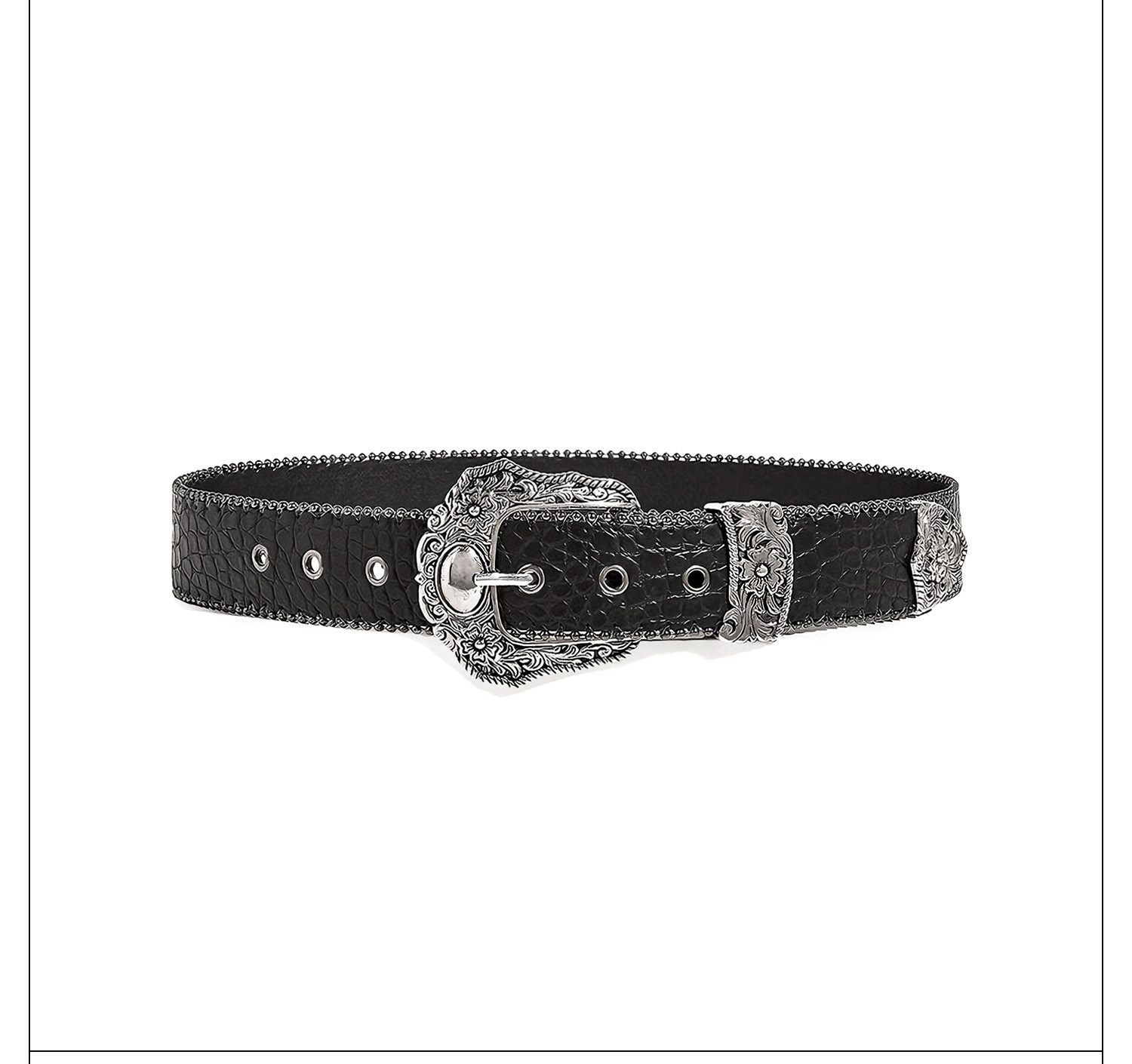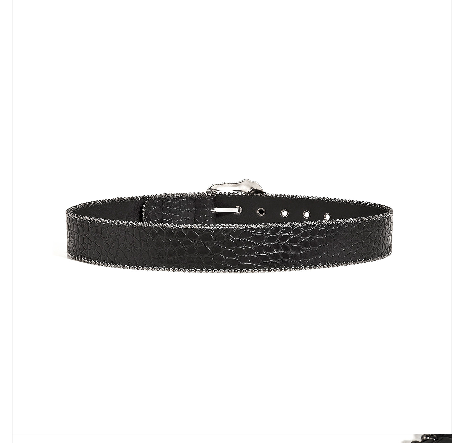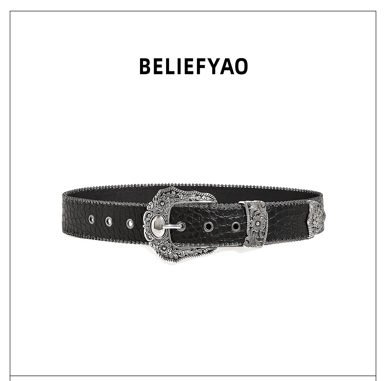 Beliefyao Original Crocodile Pattern Black Belt with a Unique Design, Niche American Retro Y2K Style Belt for Both Men and Women