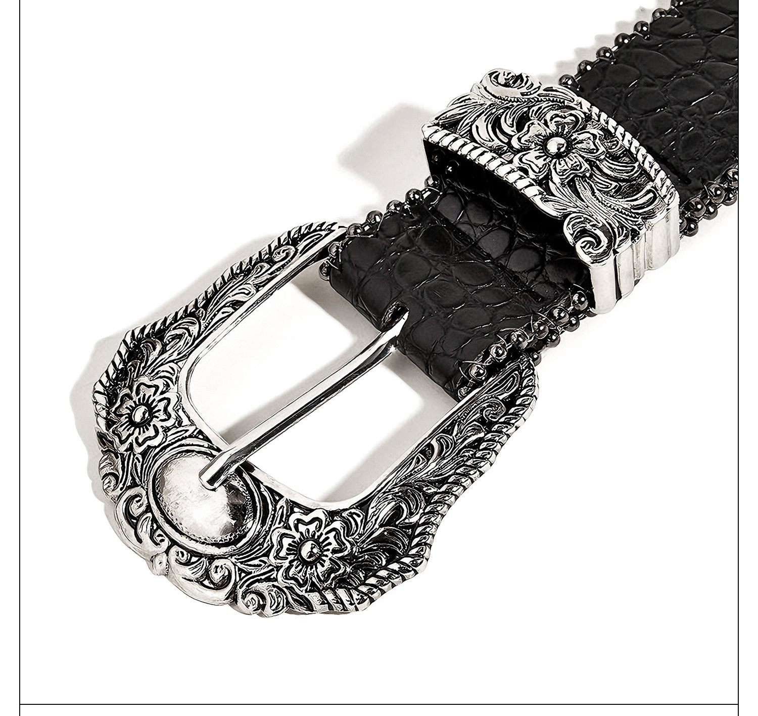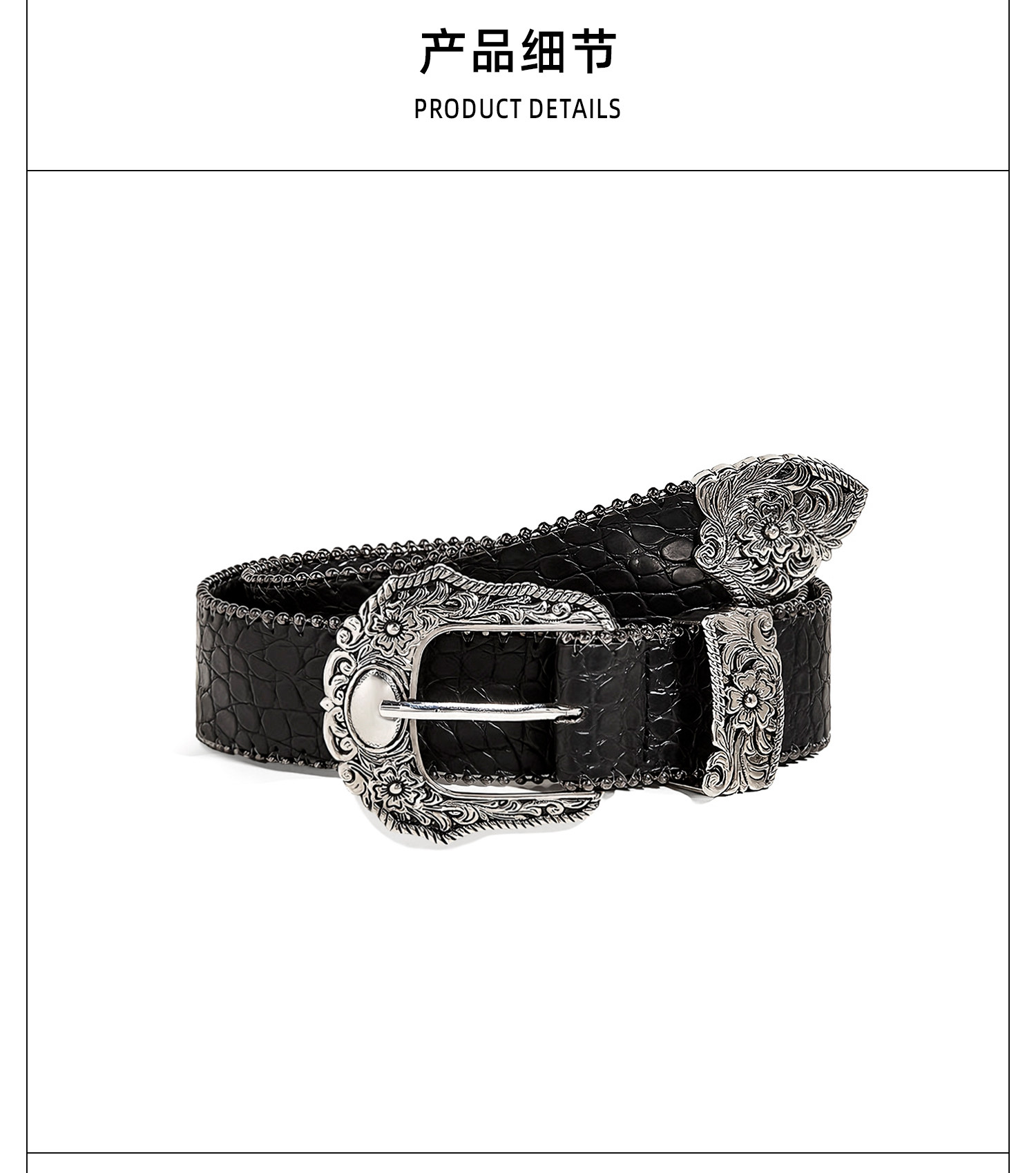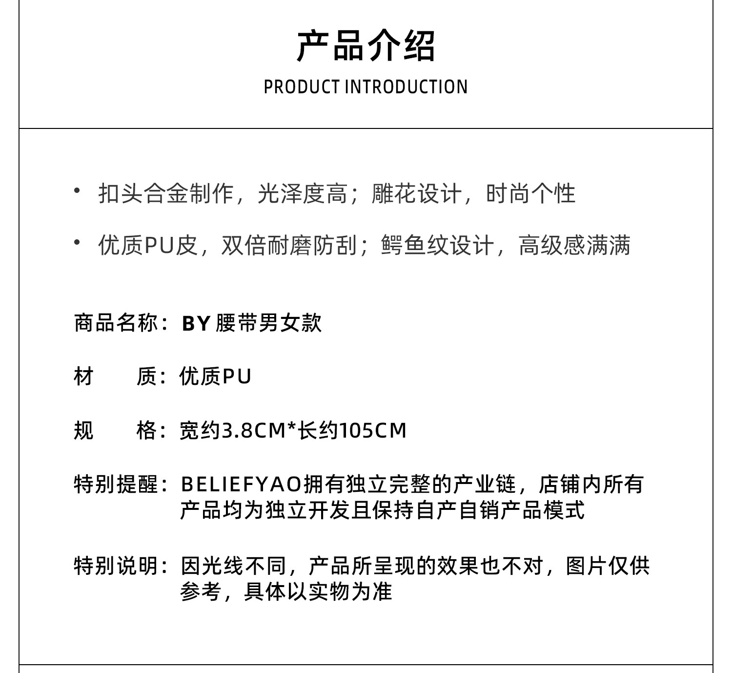 Beliefyao Original Crocodile Pattern Black Belt with a Unique Design, Niche American Retro Y2K Style Belt for Both Men and Women