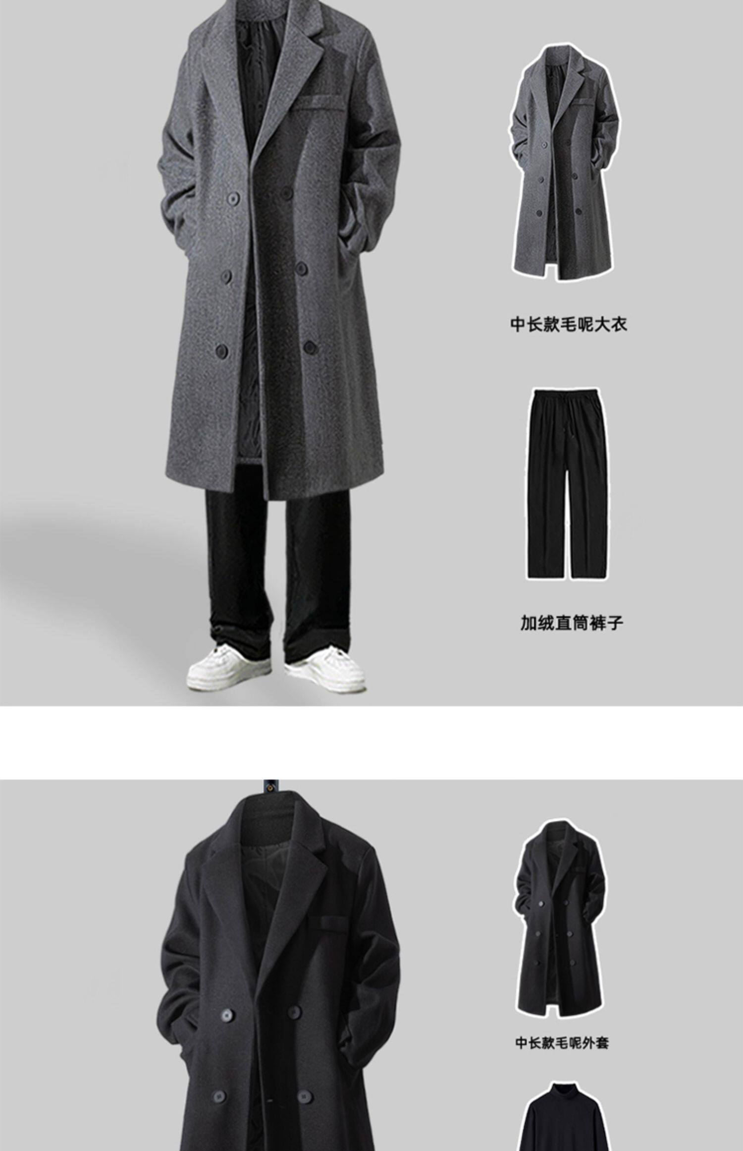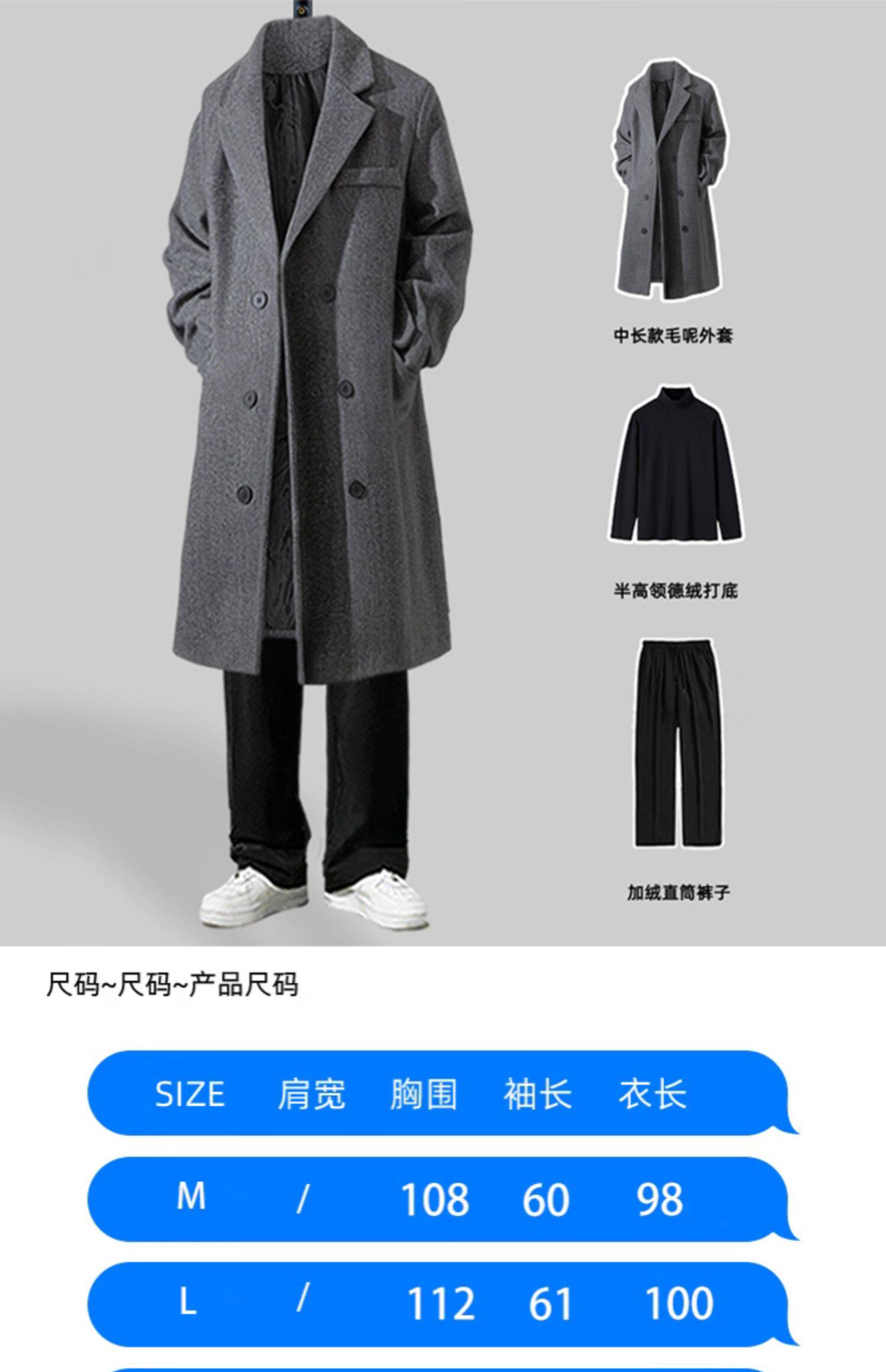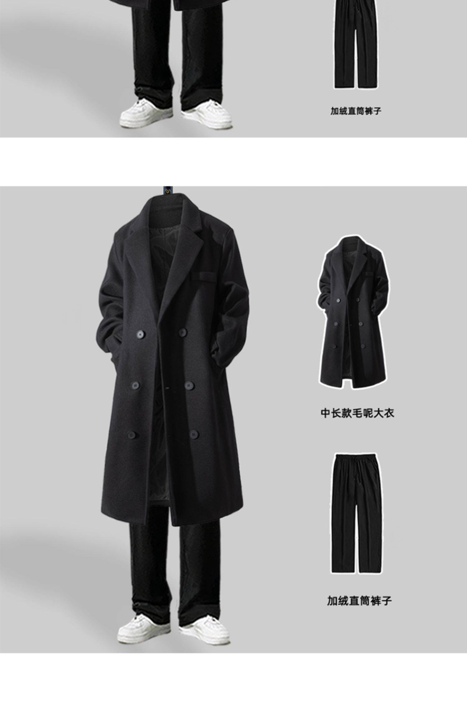 Playboy Woolen Coat for Men, Autumn and Winter Thickened, Cool and Stylish Outfit, Complete Set, British Style, Mid-Length Coat