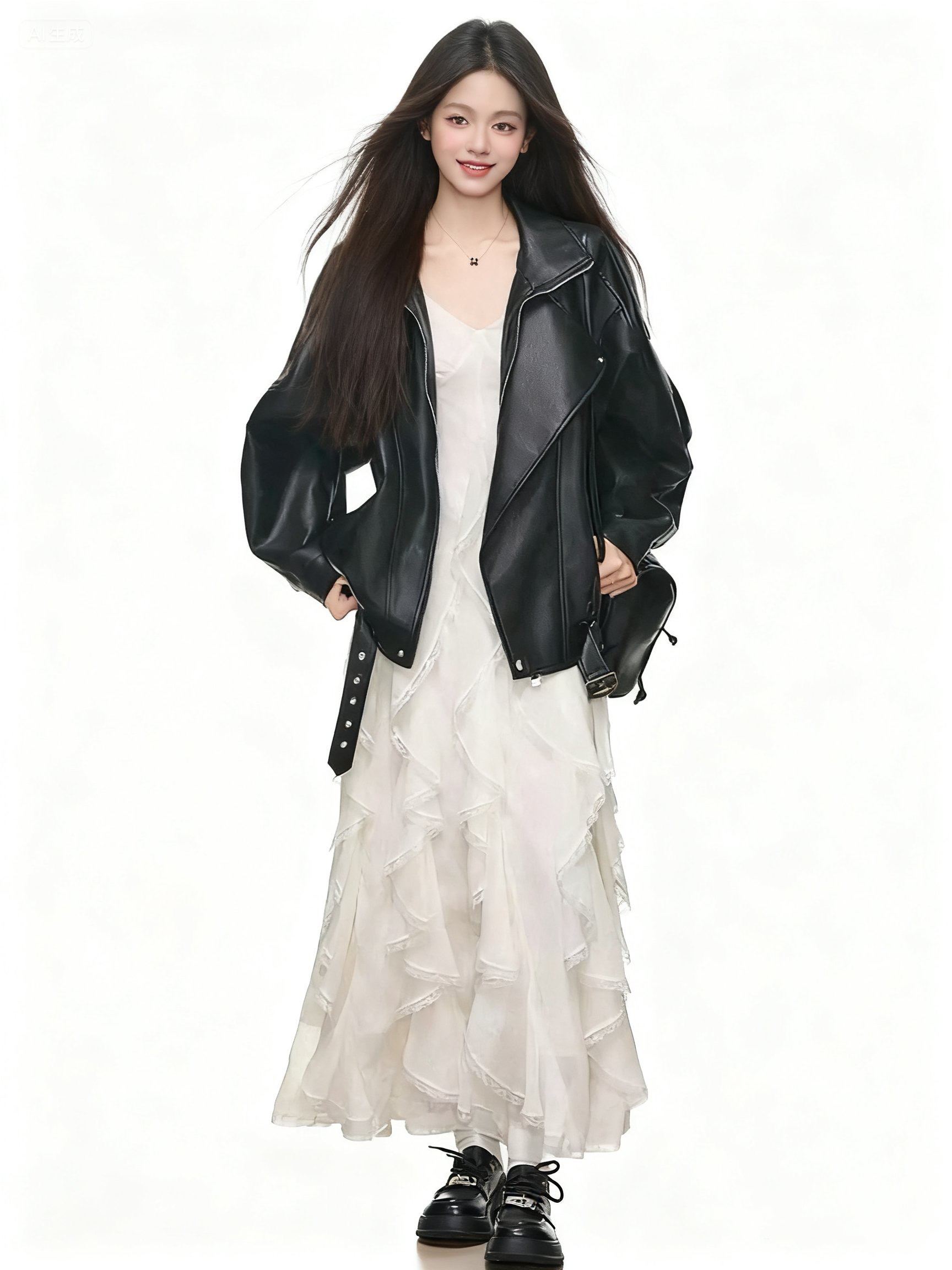 9.3 New Product Westayone Designed High-End Leather Jacket for Women in Black and Brown + Dress Two-Piece Set