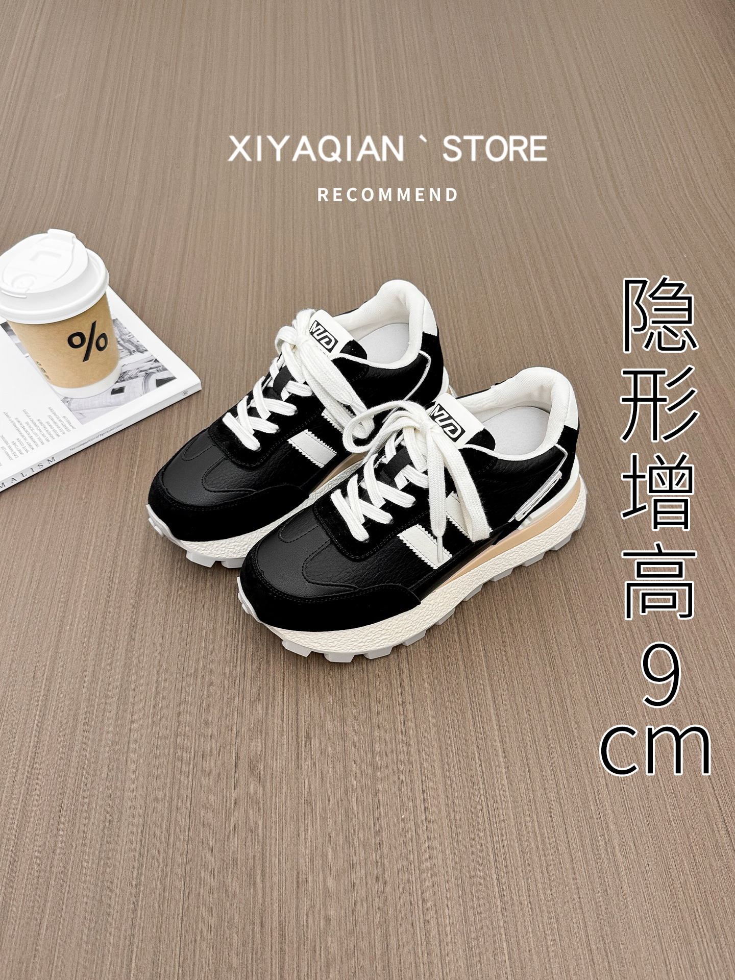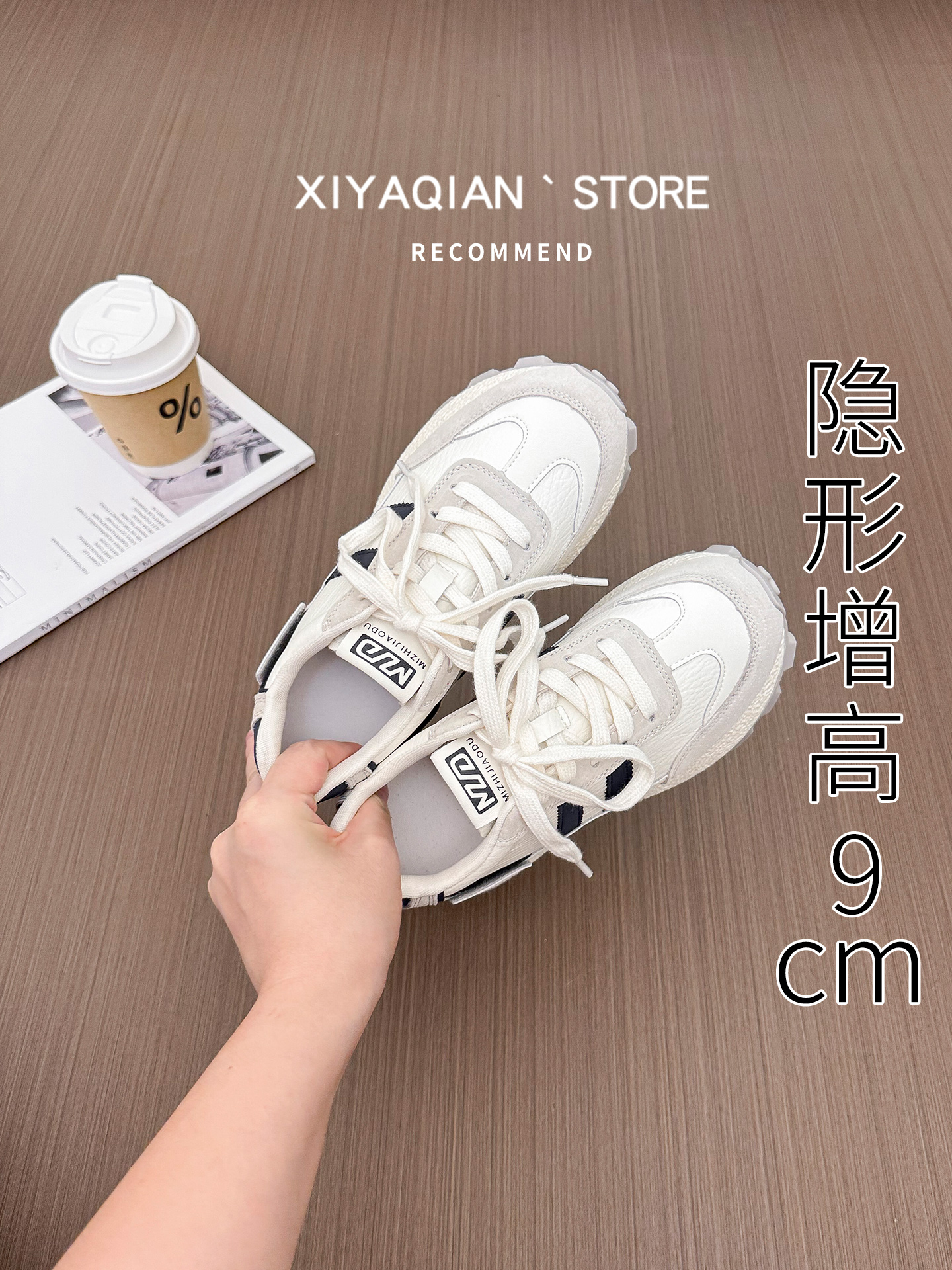 Cowhide Version ~ 9cm Height-Increasing Moral Training Shoes 2025 New White Sneakers Thick-Soled Sports Trendy Casual Shoes Forrest Gump Shoes