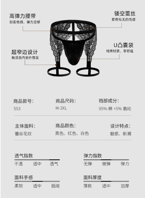 Muscle Store Co-Branded Heijue One-Piece Lace Men's Thong Sexy See-Through Thong That Accentuates the Buttocks