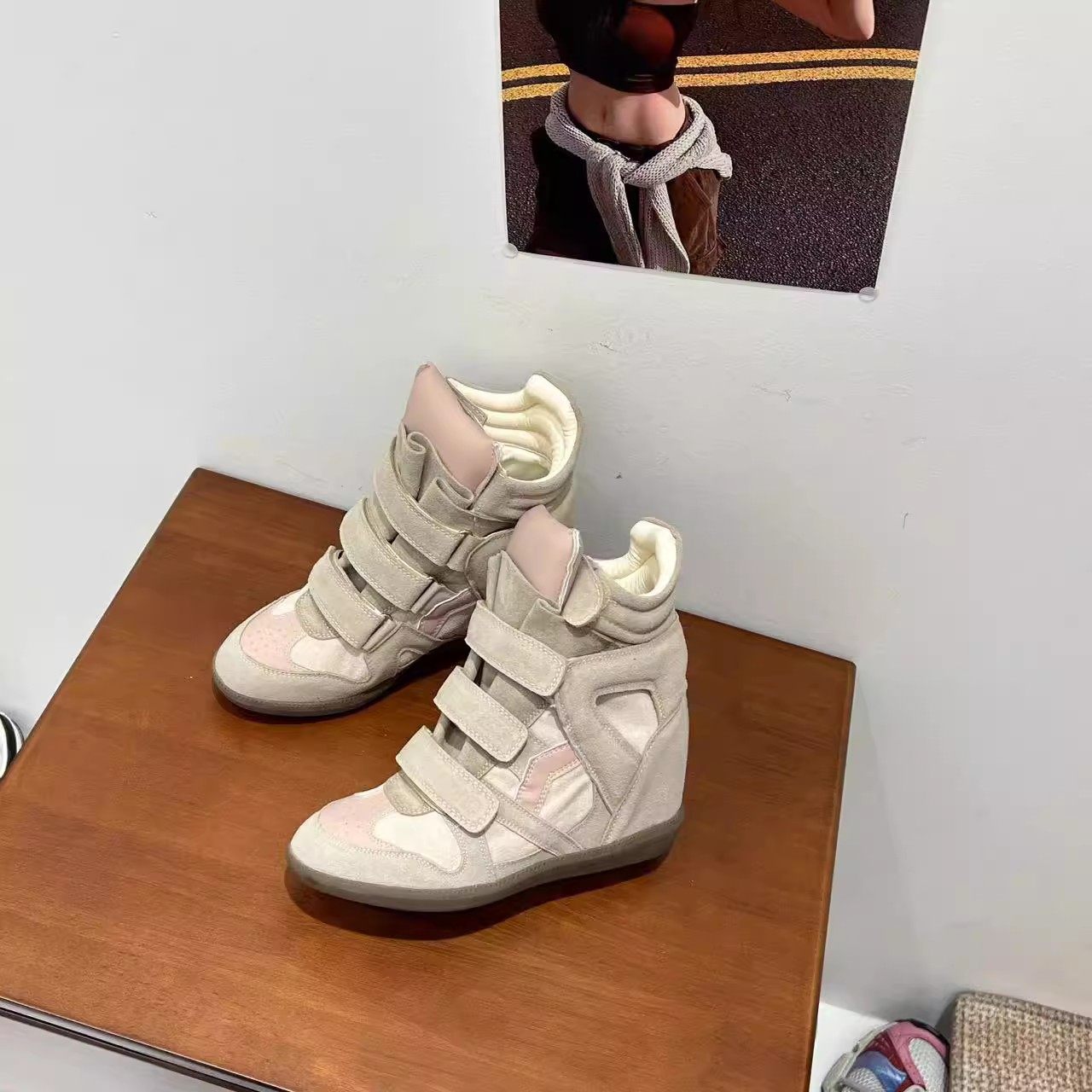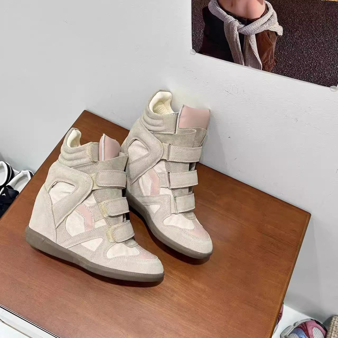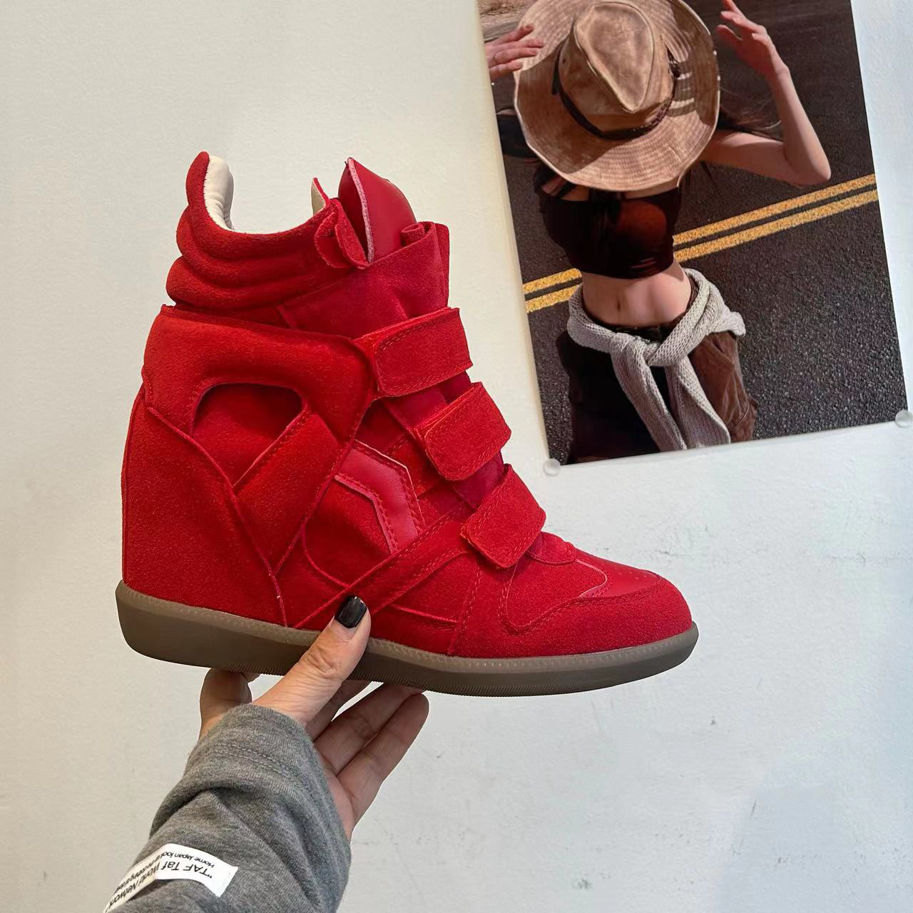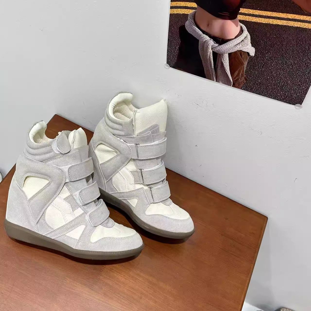 Genuine Leather Wedge High-Top Shoes for Women 2025 New Style for Petite Individuals with Hidden Internal Height Increase, Thick Sole, Velcro Sports Casual Shoes