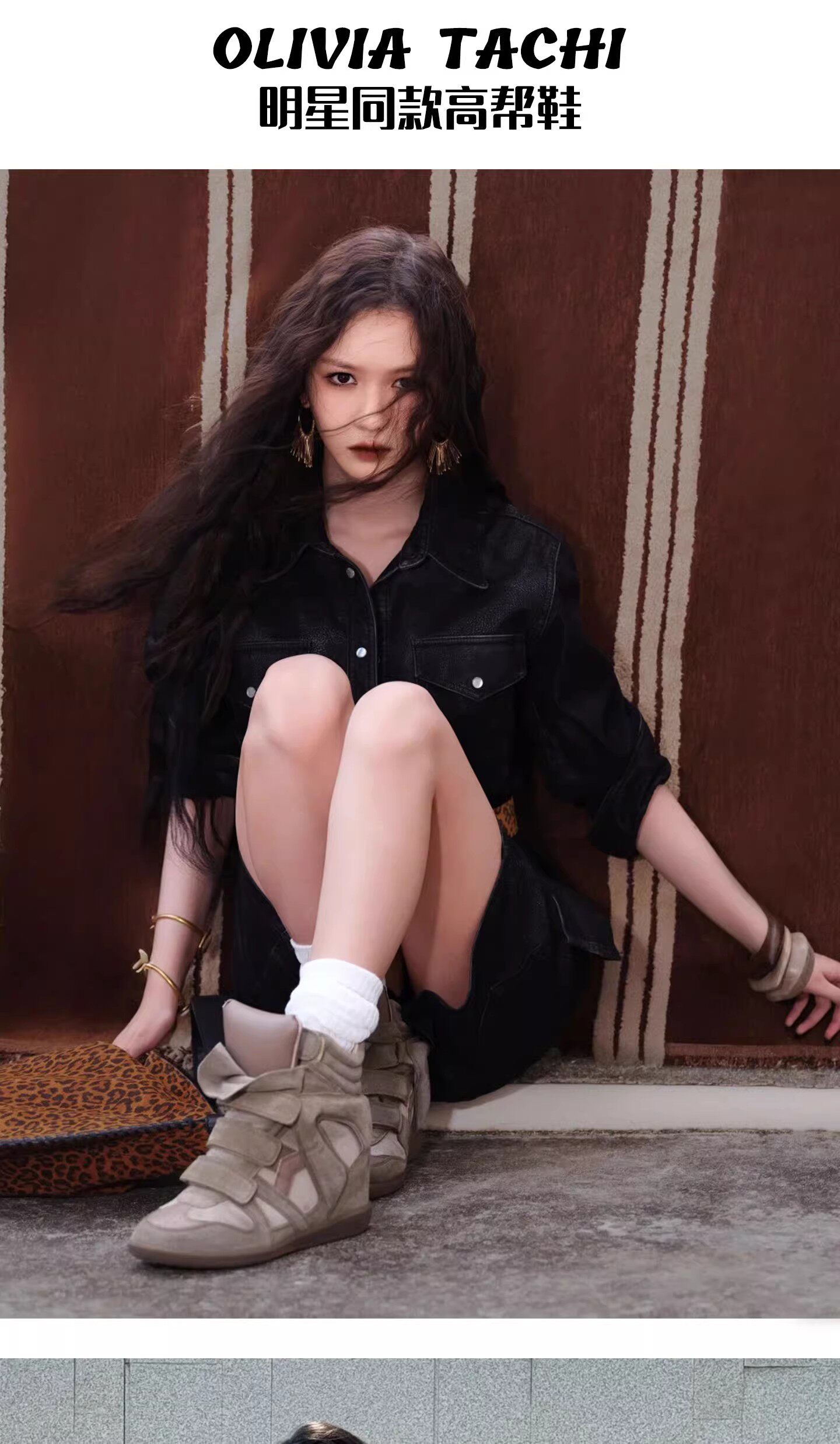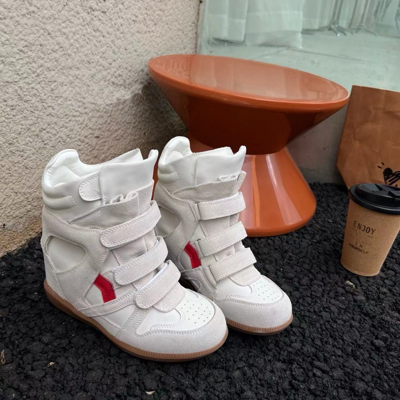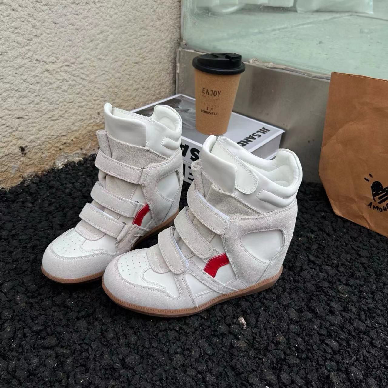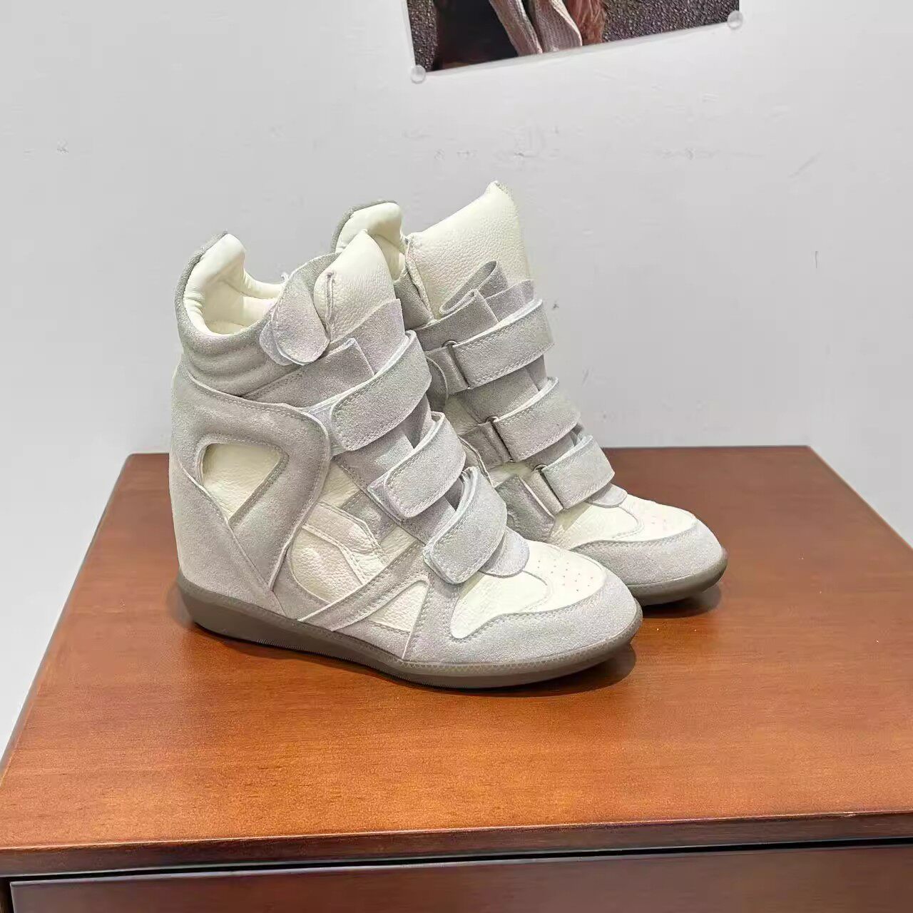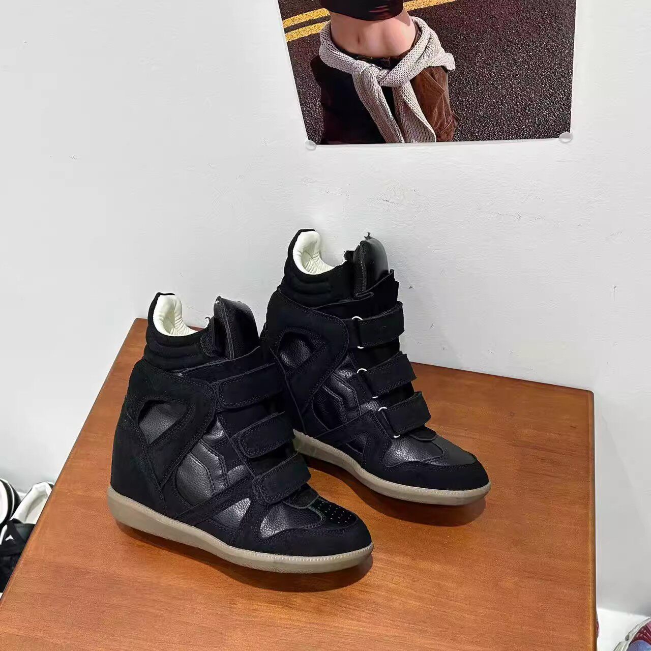 Genuine Leather Wedge High-Top Shoes for Women 2025 New Style for Petite Individuals with Hidden Internal Height Increase, Thick Sole, Velcro Sports Casual Shoes
