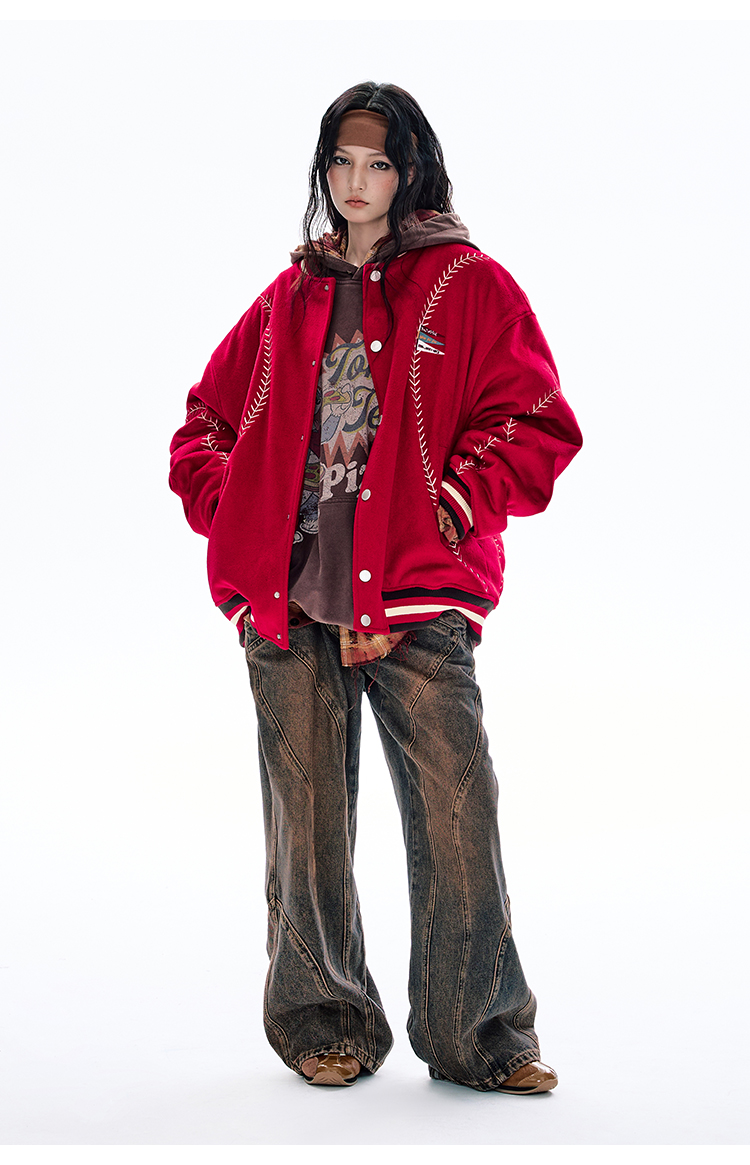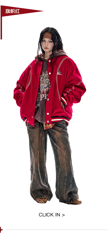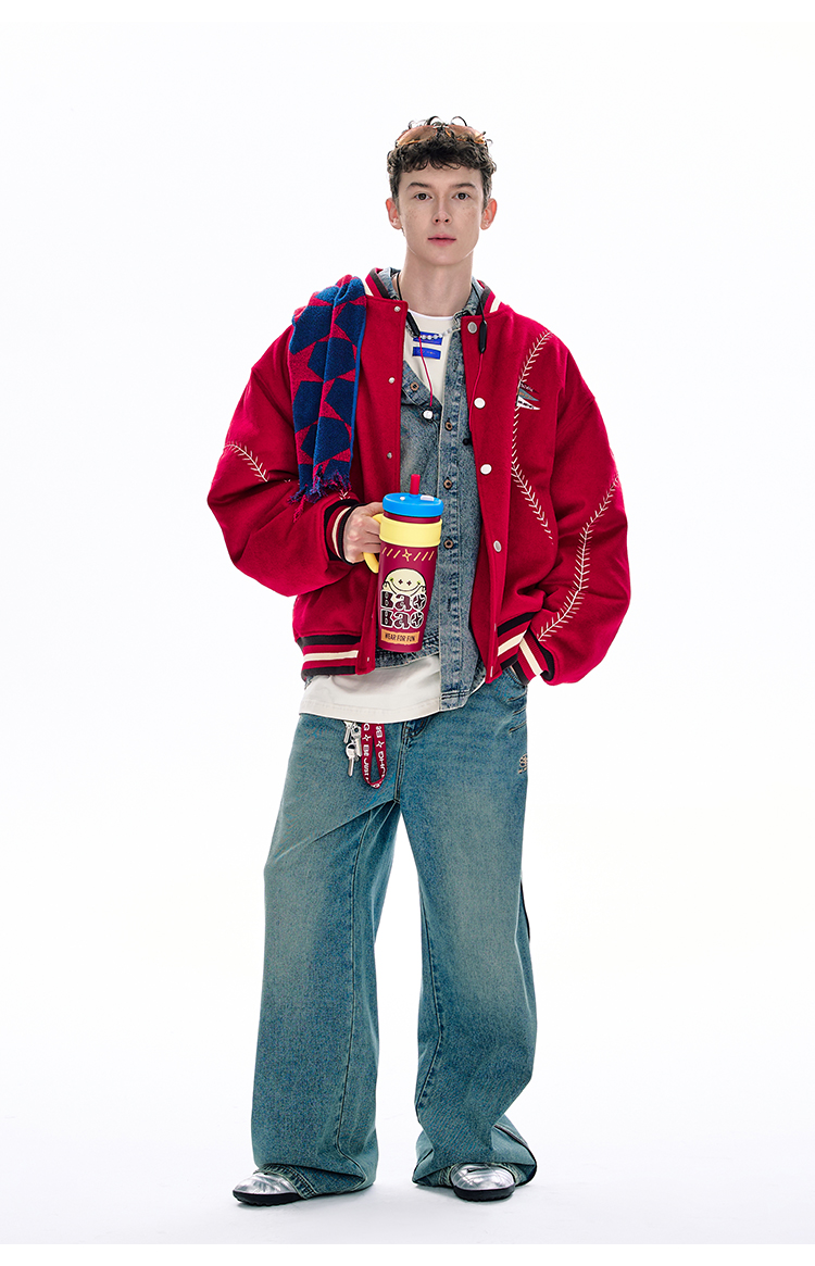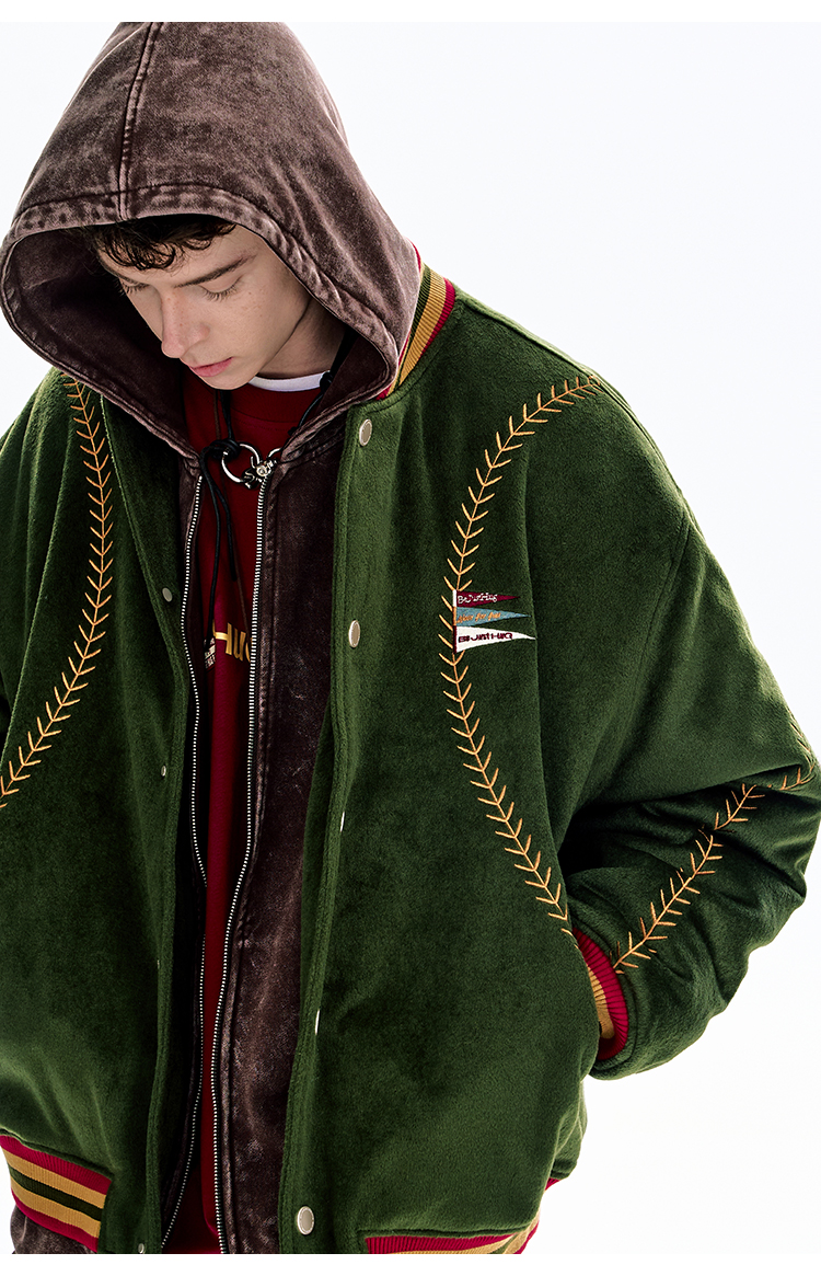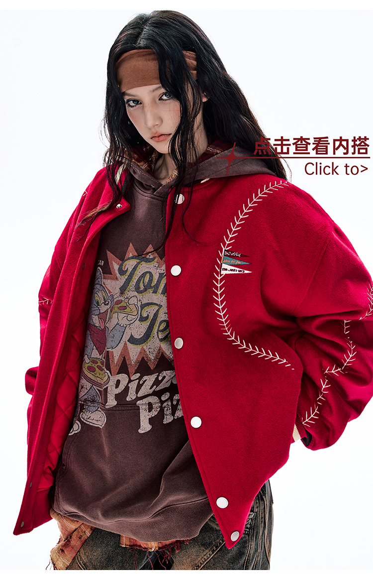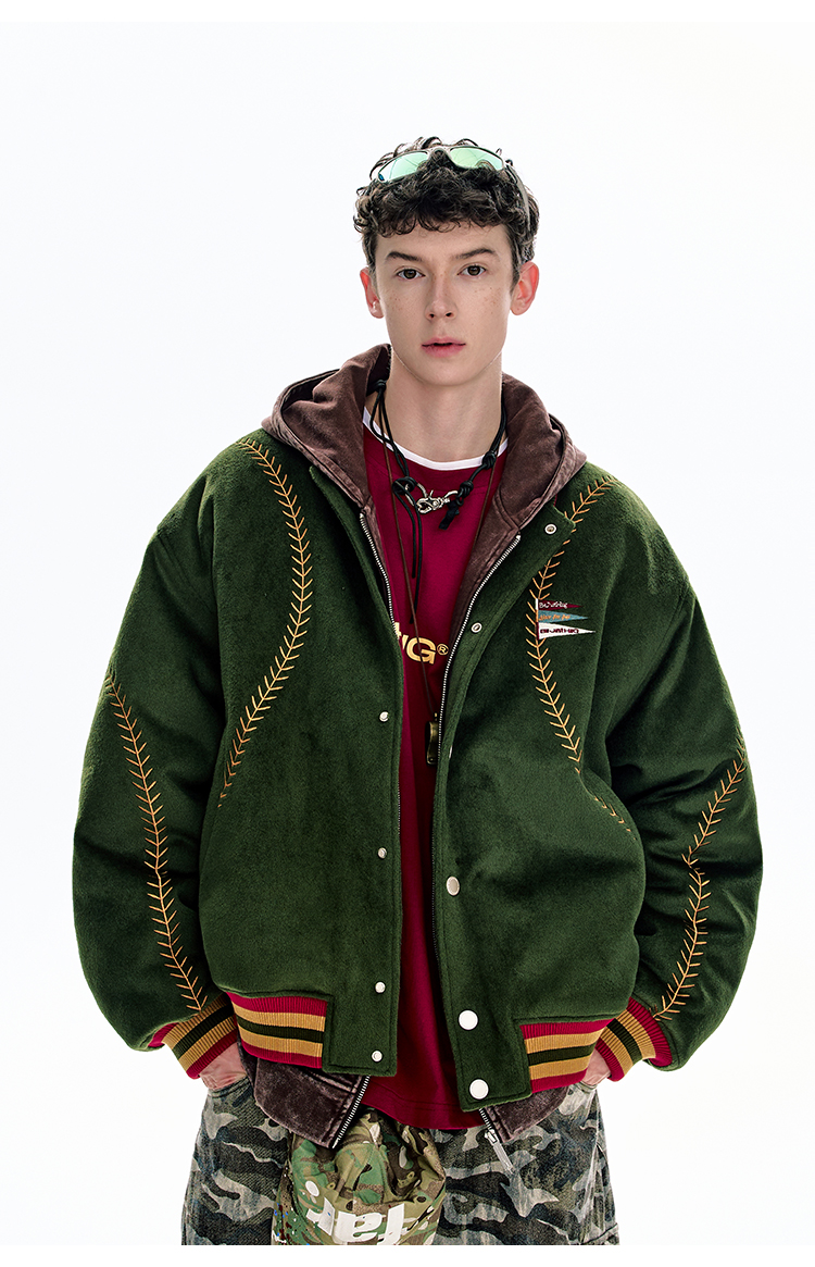 Bjhg Reckless Quilted Baseball Jacket Thick Coat Cotton Jacket Men's Winter American Style Sports Cotton Coat Wool Top Women's