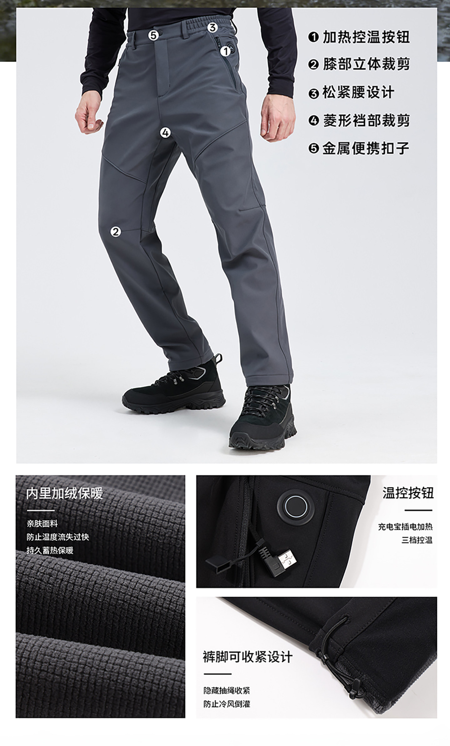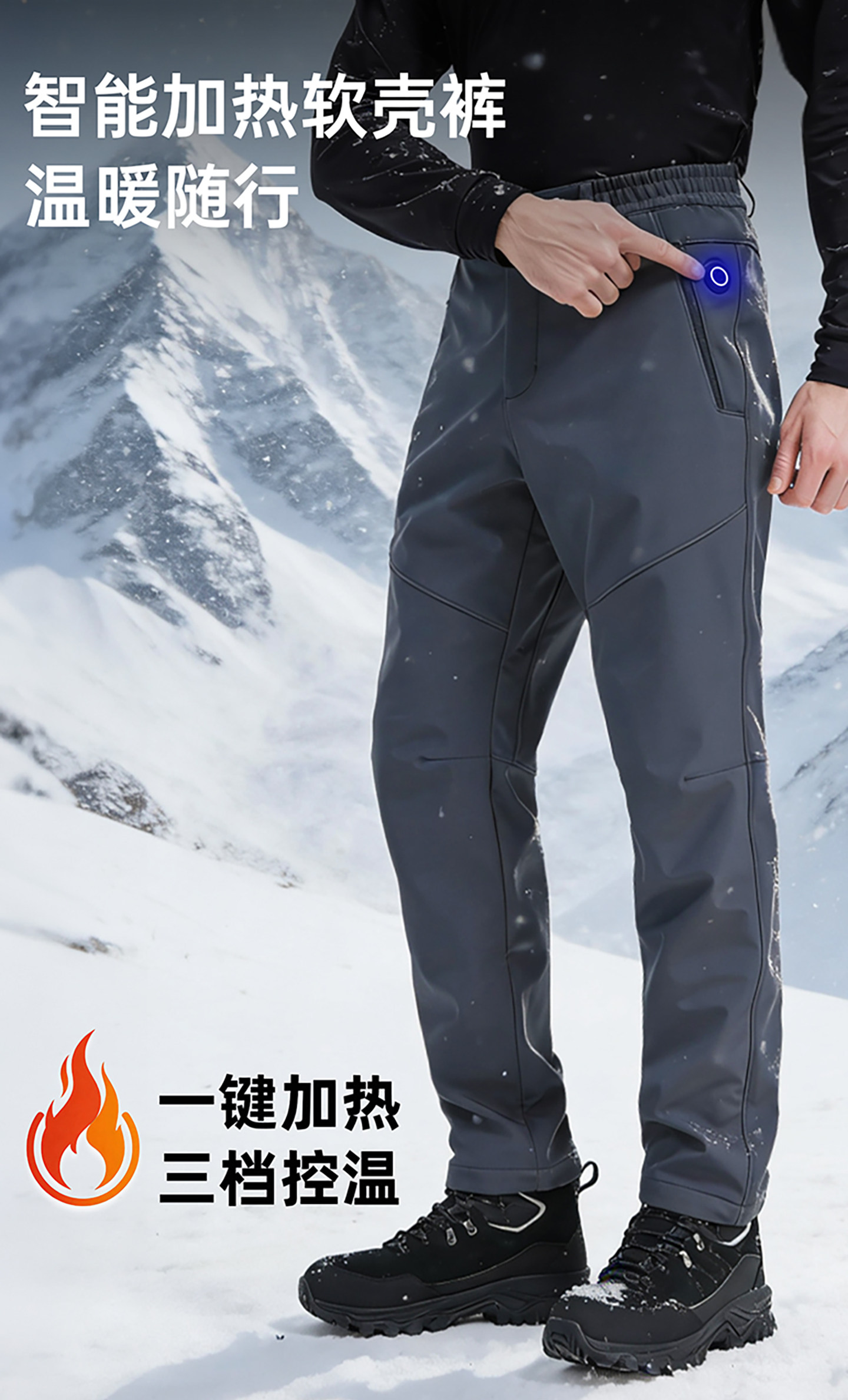 Amadeus Heated Softshell Pants for Men, Outdoor Fleece-Lined, Thickened, Waterproof, Warm, Autumn and Winter Hiking Pants