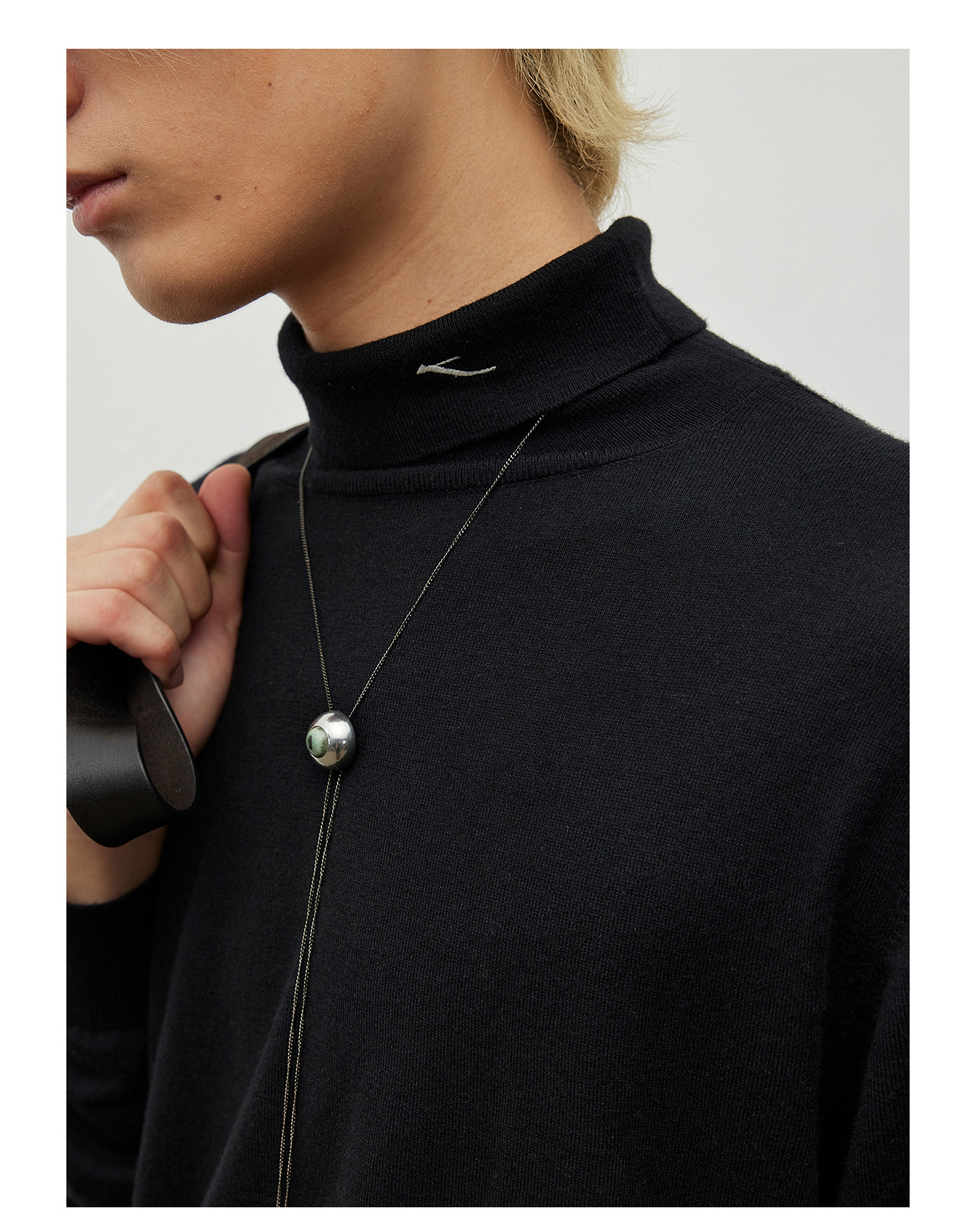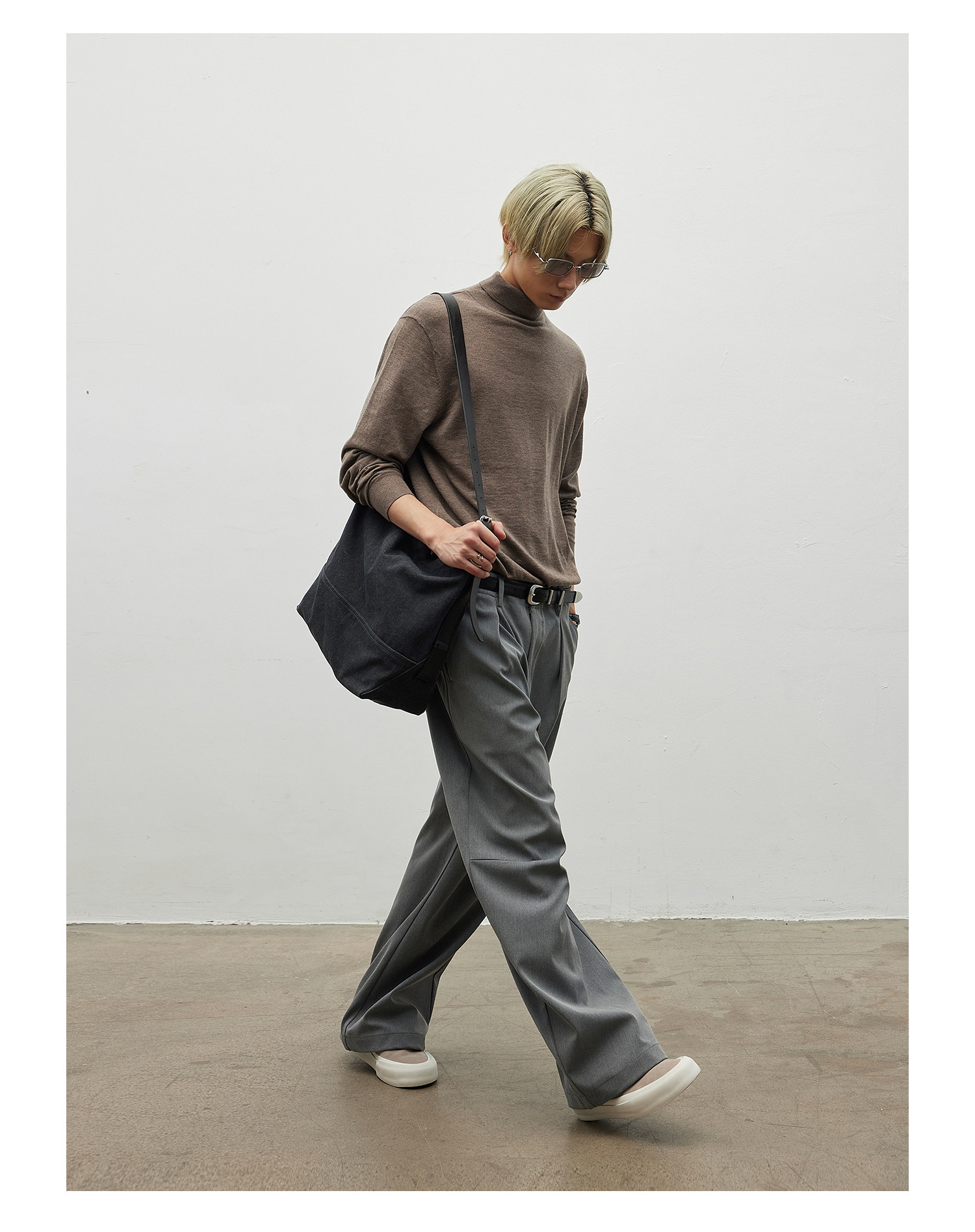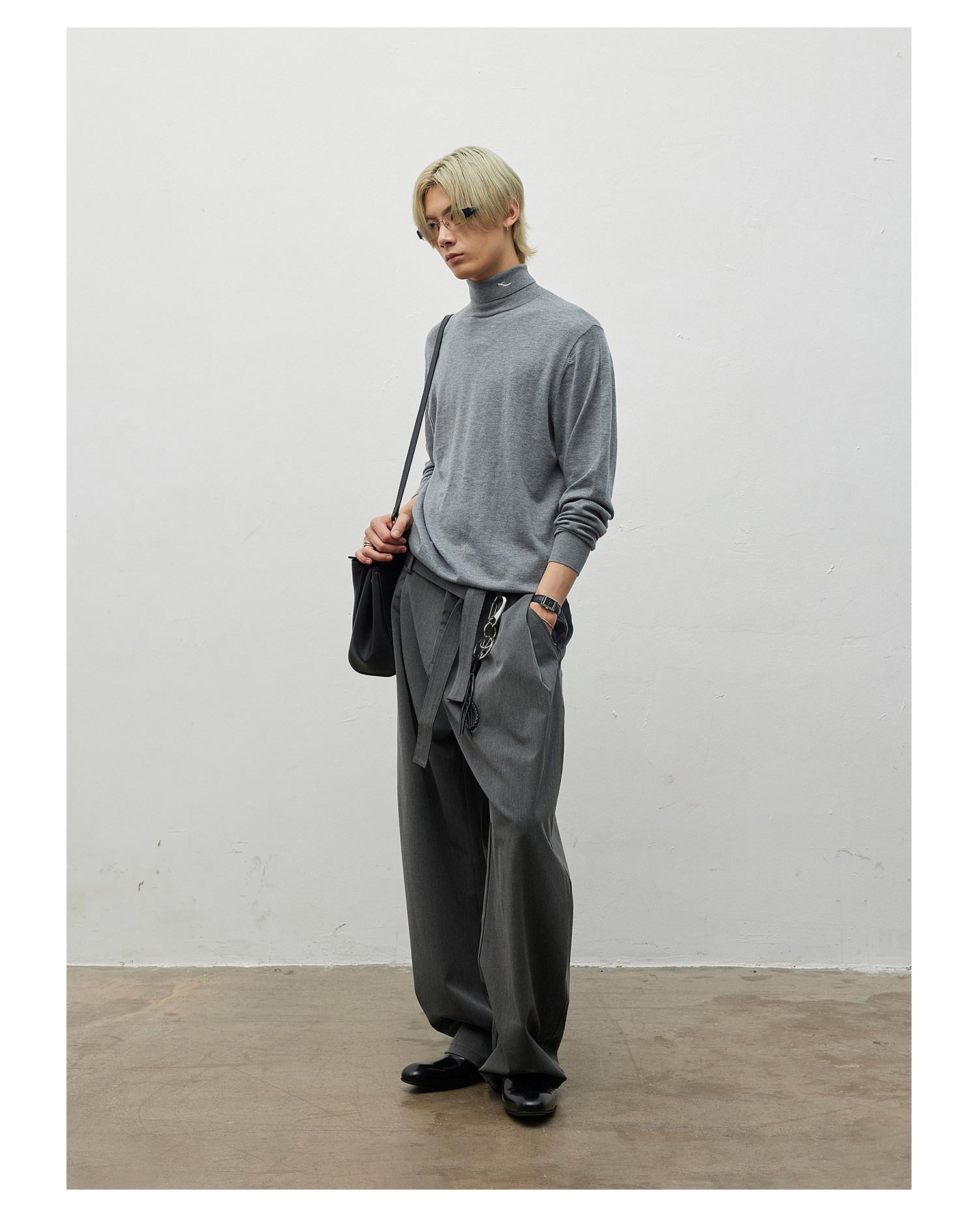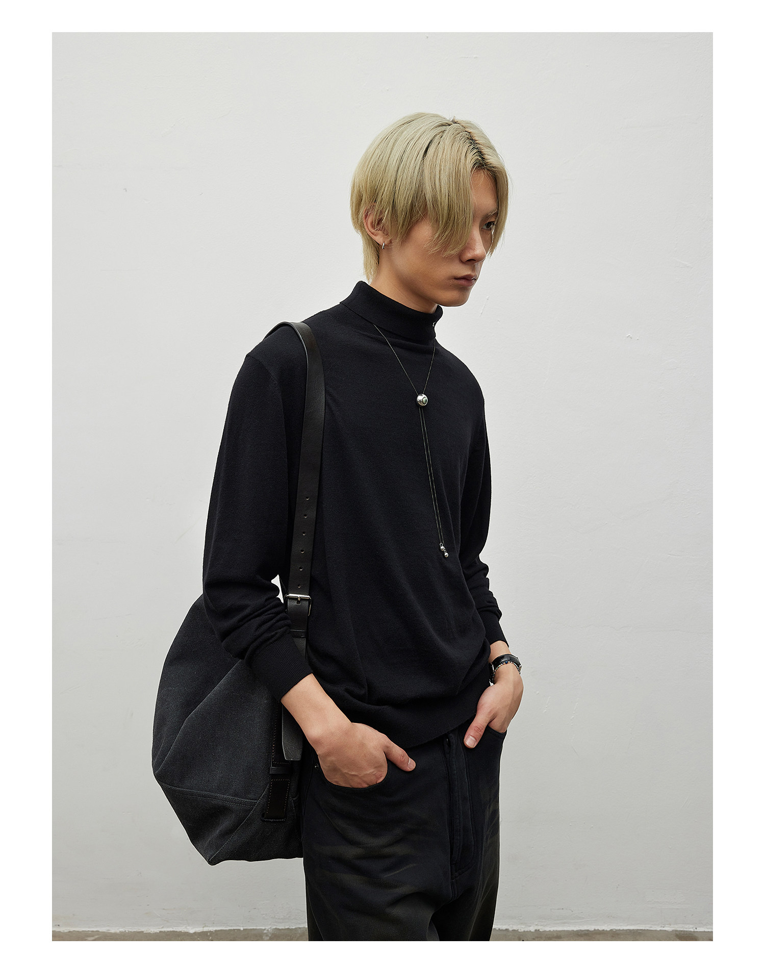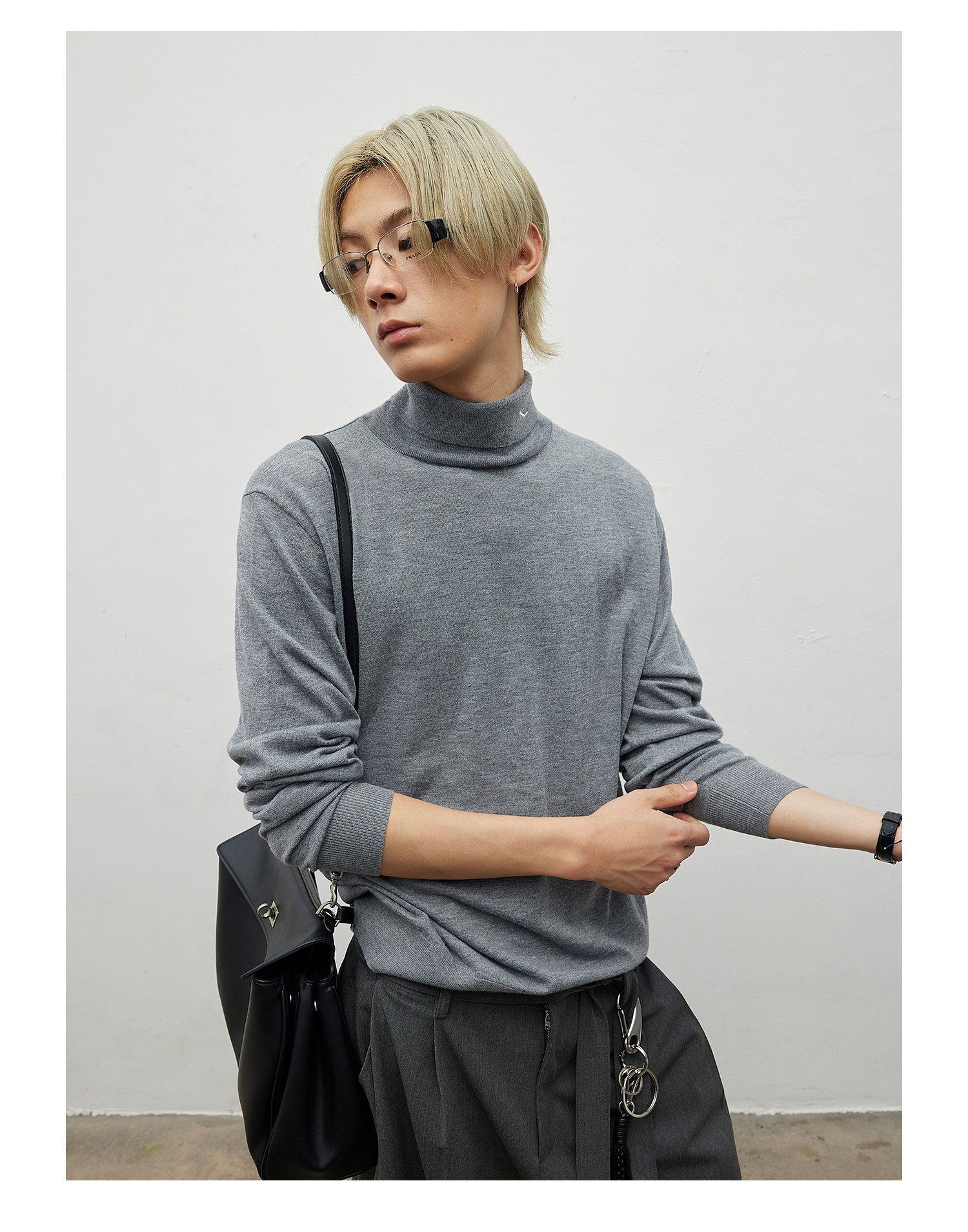 Wool Blend T-Label Embroidered Turtleneck Long-Sleeve Base Shirt for Daily Commuting, Spring Thin Style Terraincognita
