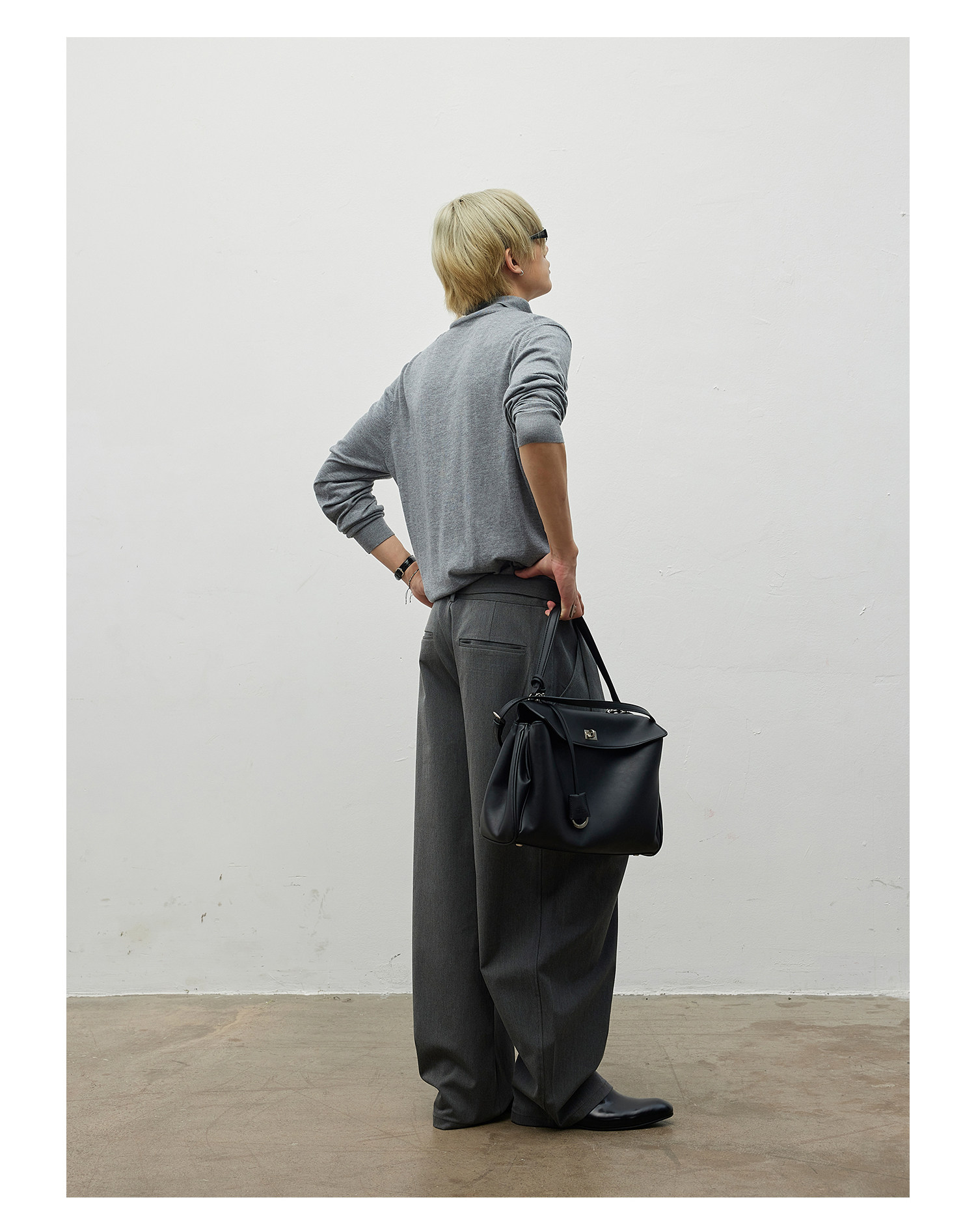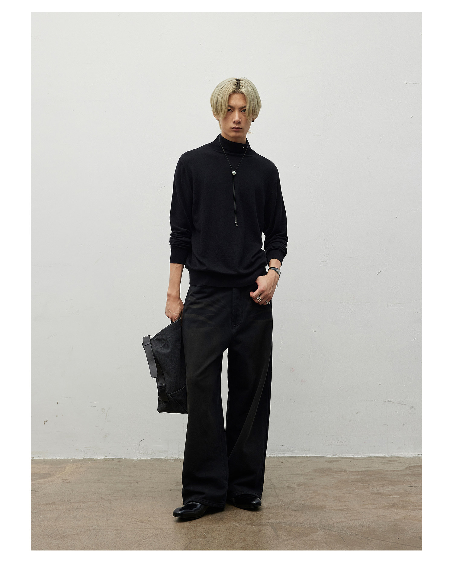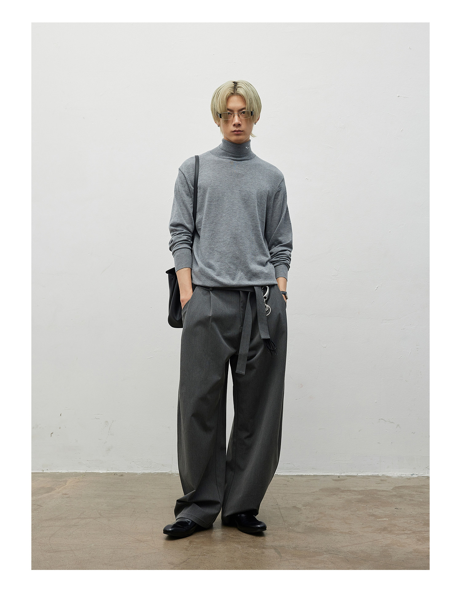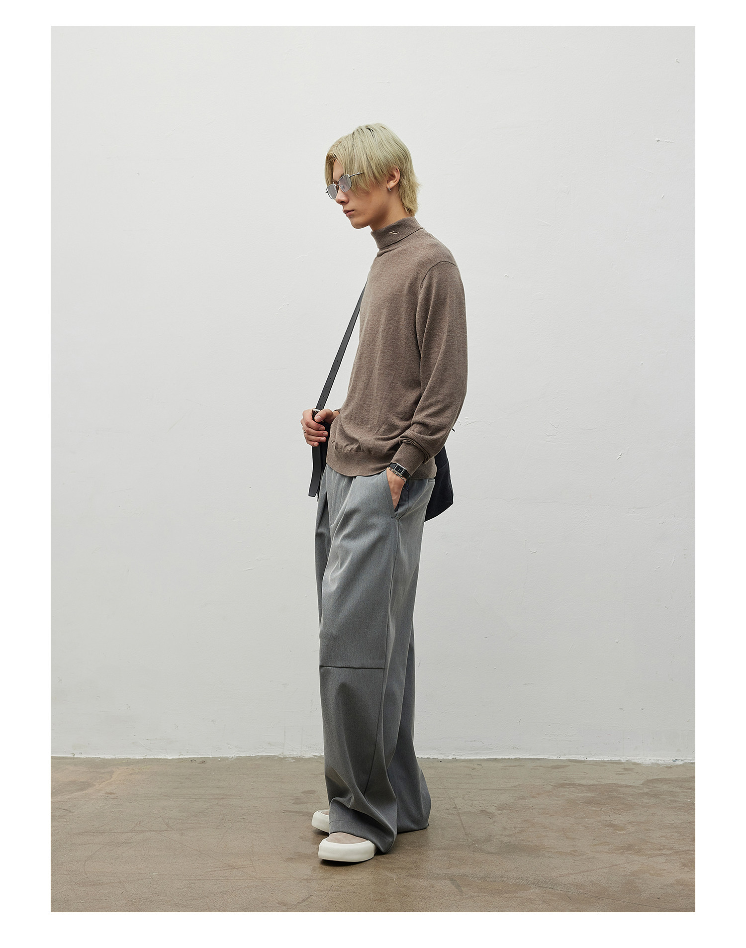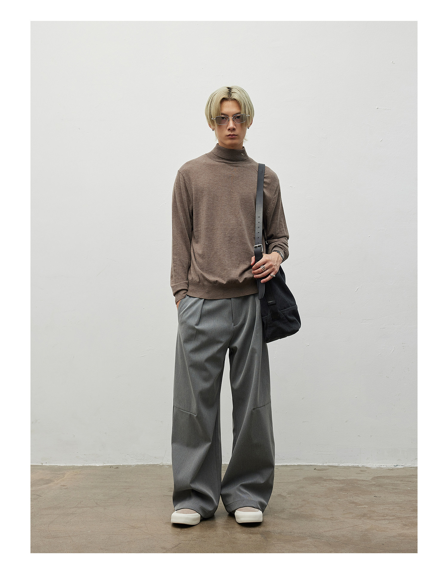Wool Blend T-Label Embroidered Turtleneck Long-Sleeve Base Shirt for Daily Commuting, Spring Thin Style Terraincognita