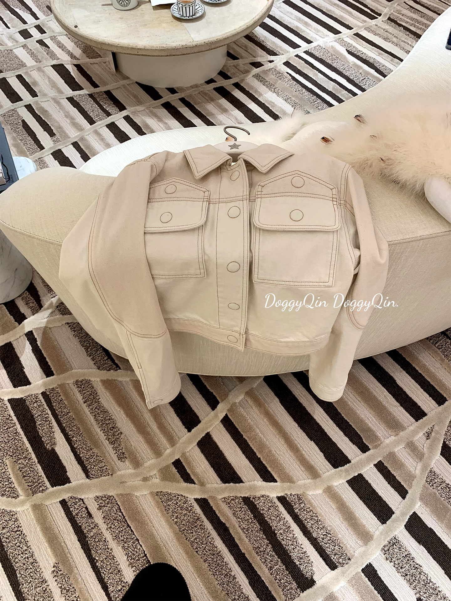 上衣原胚色大气耐看 经典的翻领设计线条硬朗且利落 能够自然地修饰颈部线条