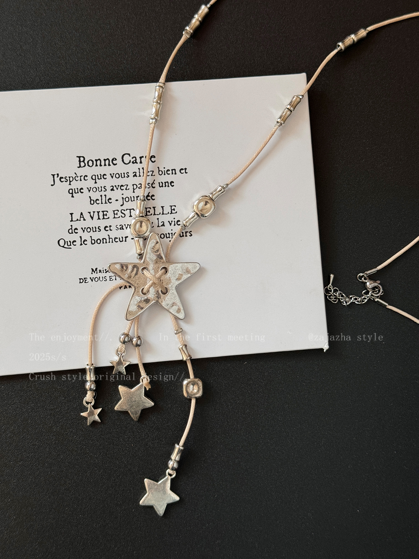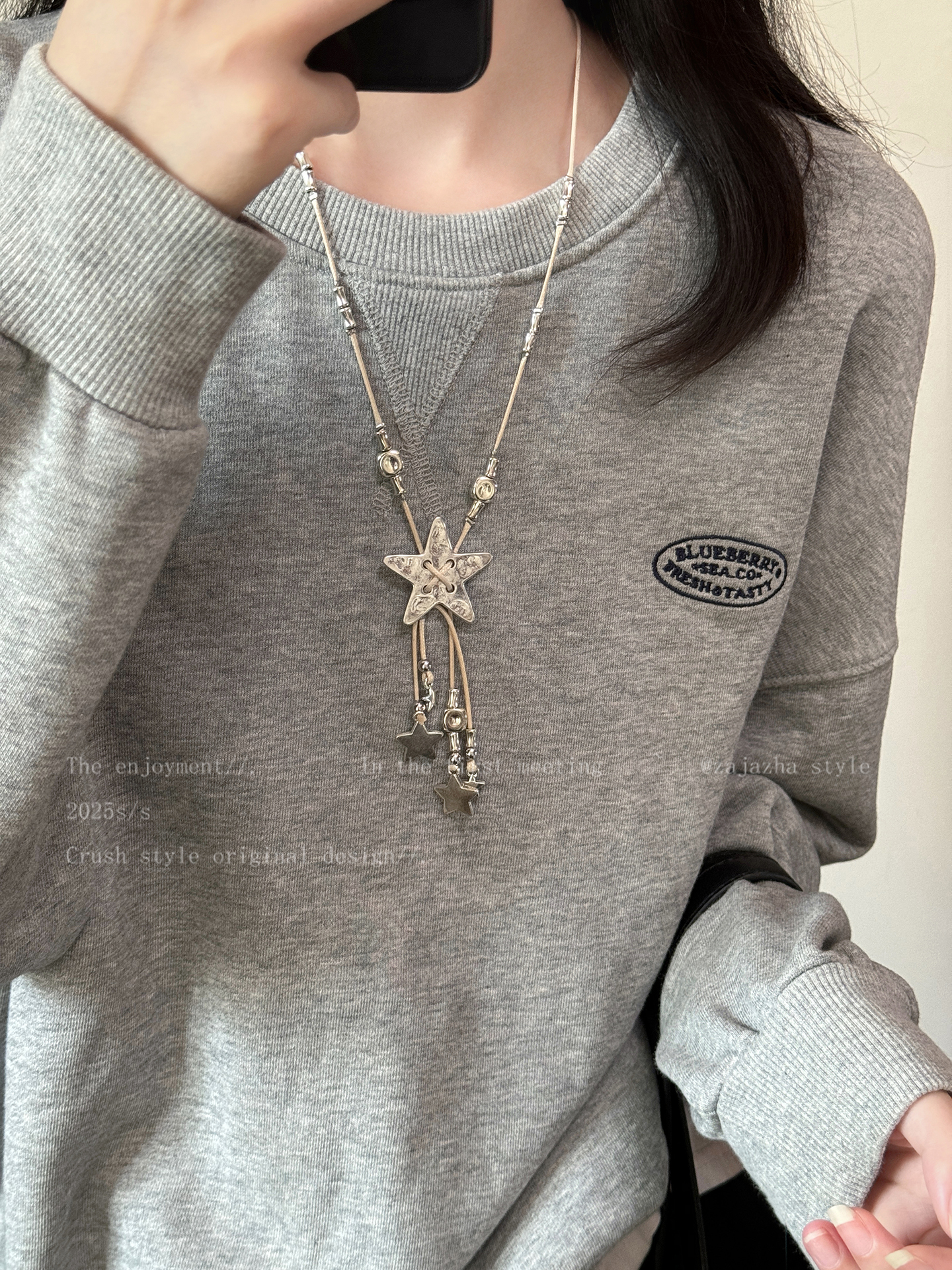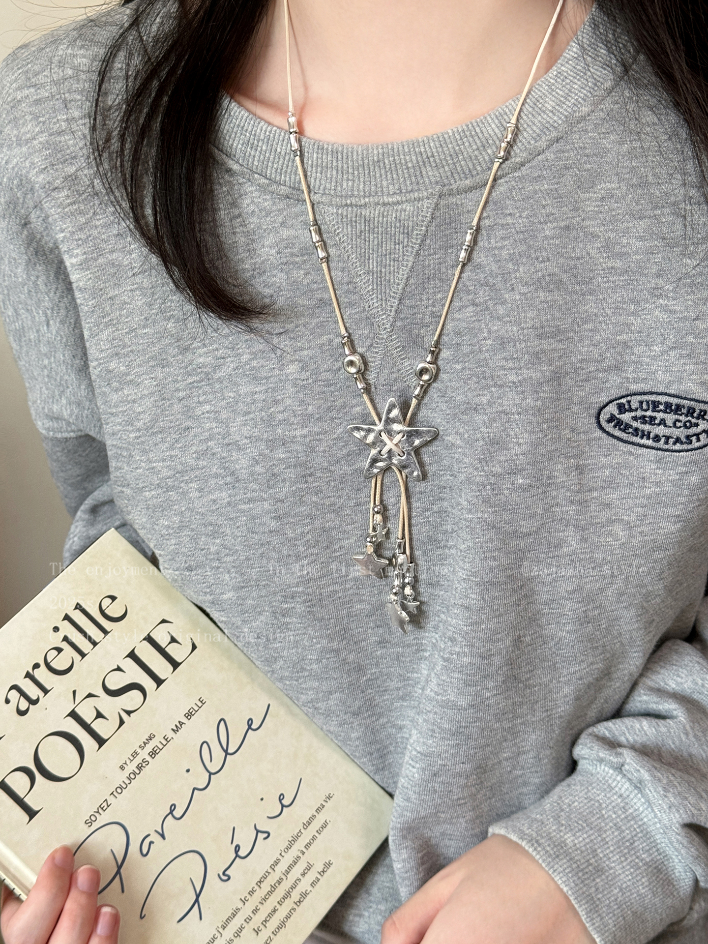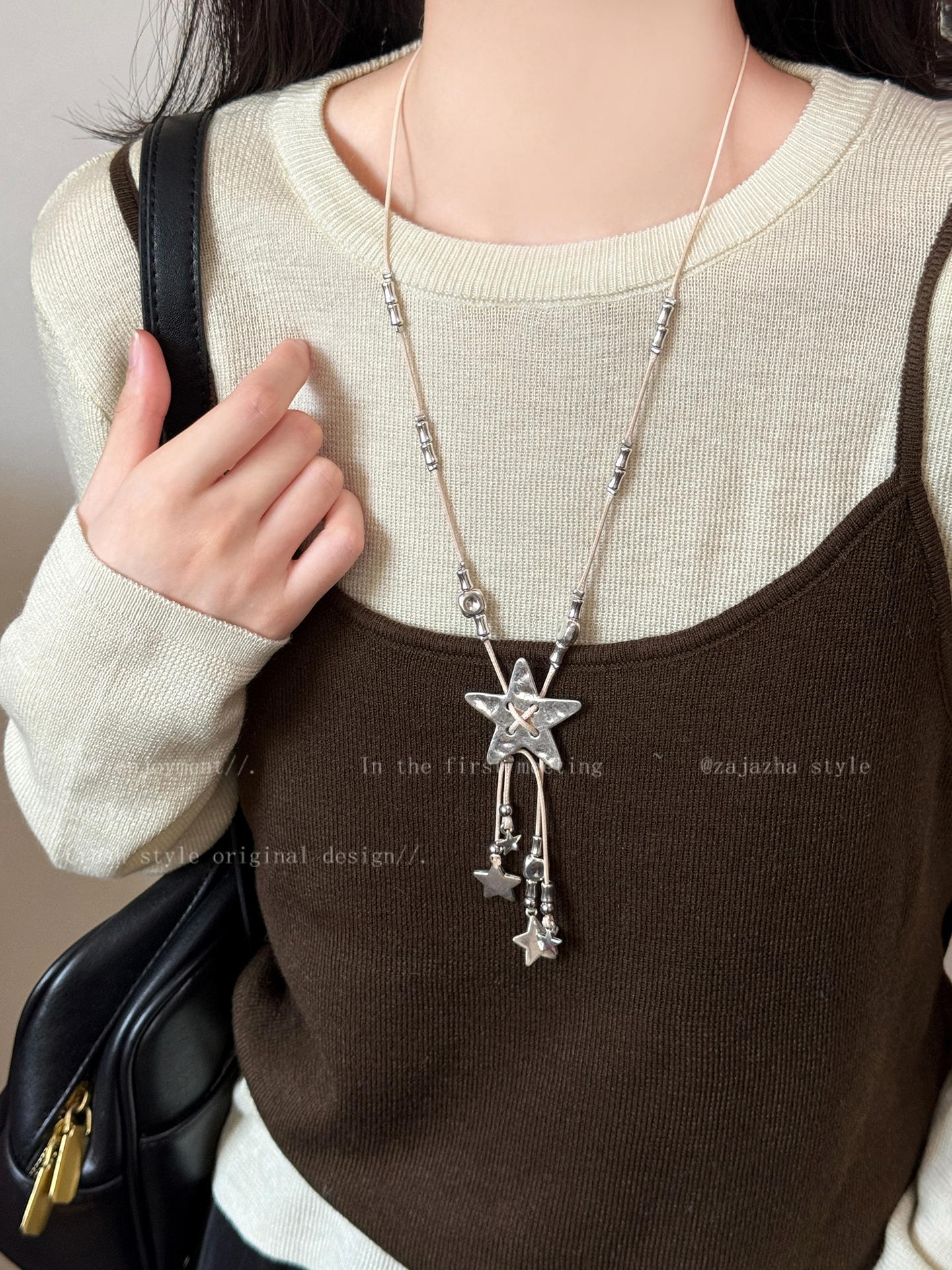 Retro Silver Star Pendant Necklace for Women, Autumn and Winter Niche Design, Accessible Luxury, High-End Sweater Chain, Versatile Long Accessories