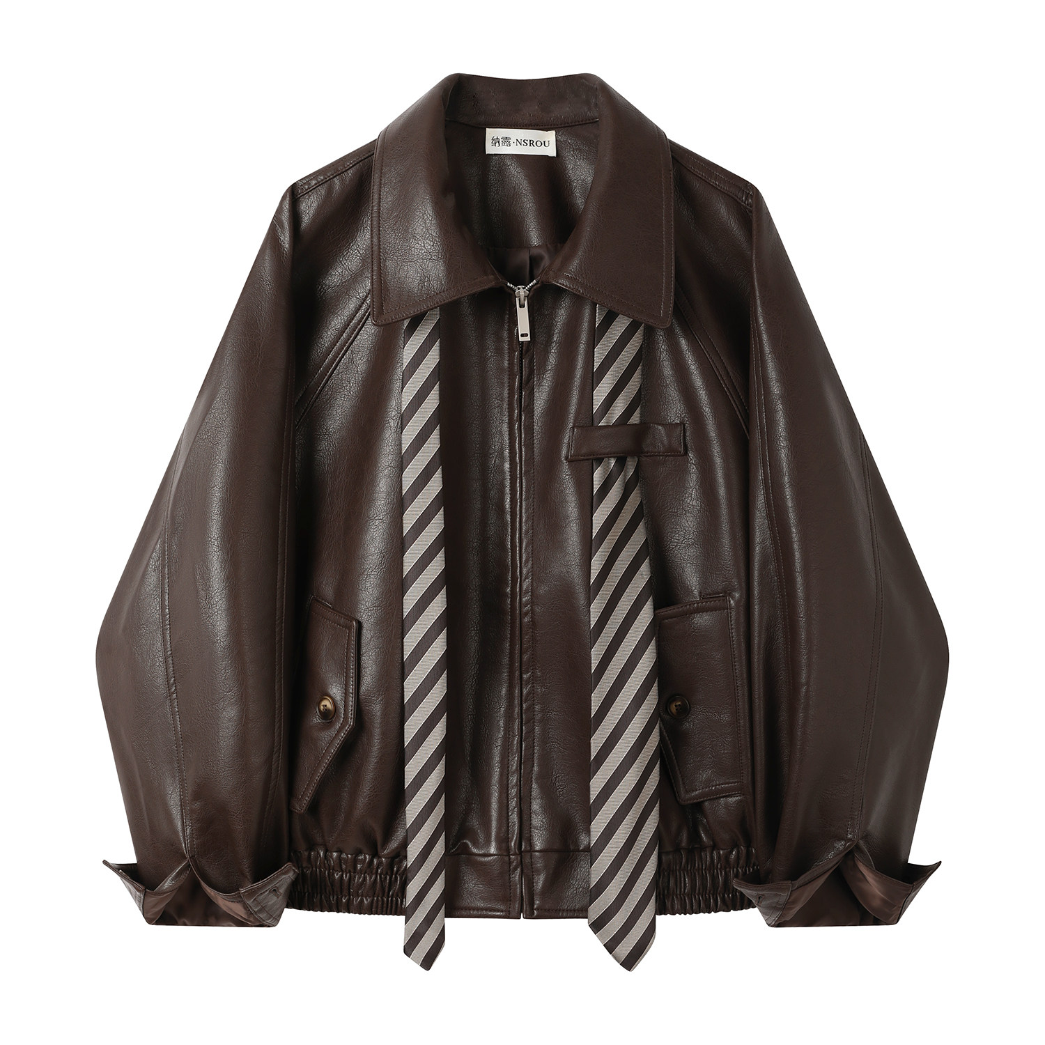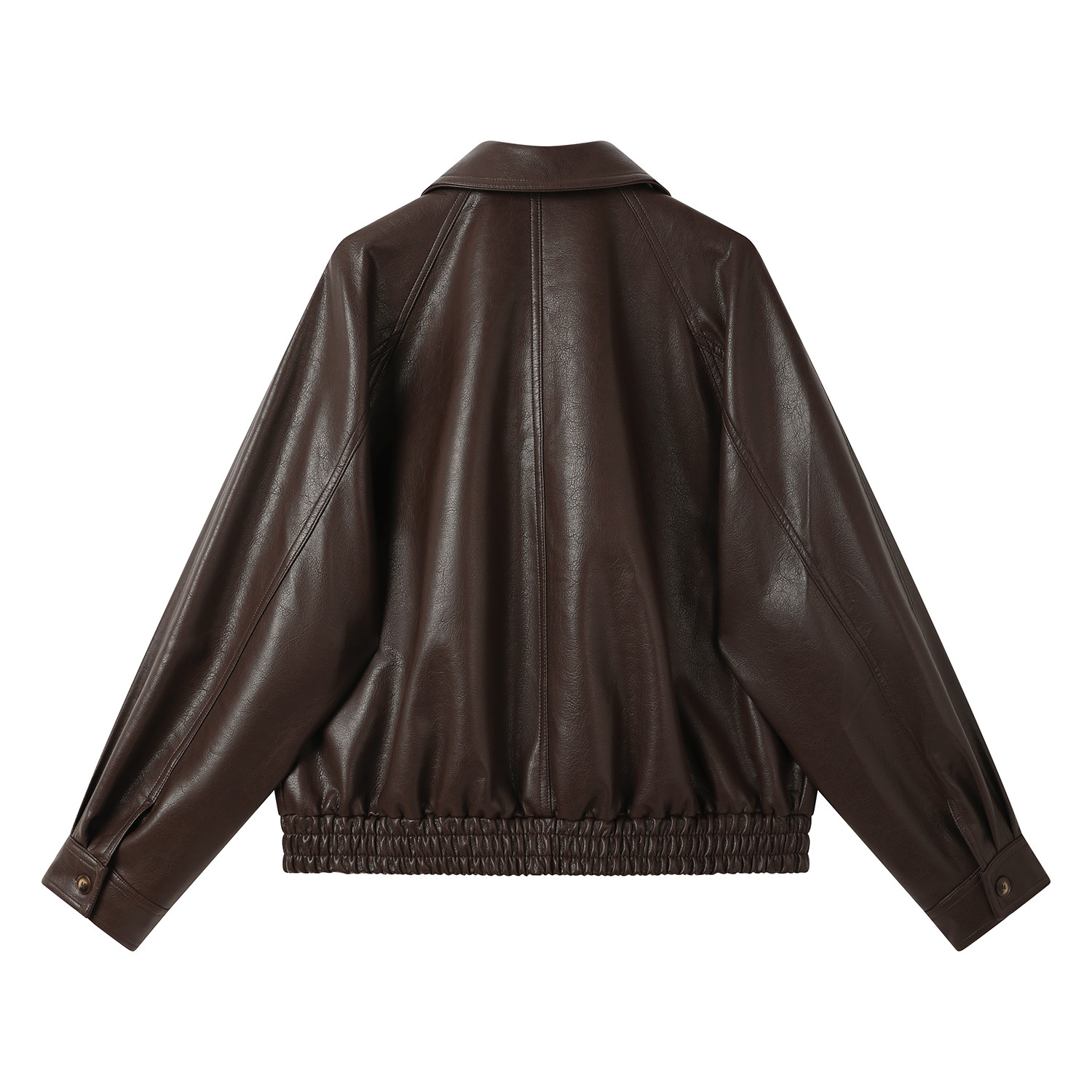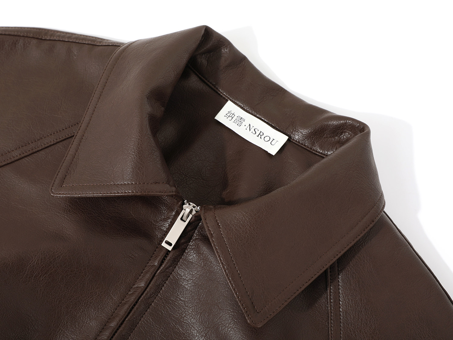 Vintage High-End Cool Style Short Brown Leather Jacket for Women, Autumn Thickened Biker Melard Jacket