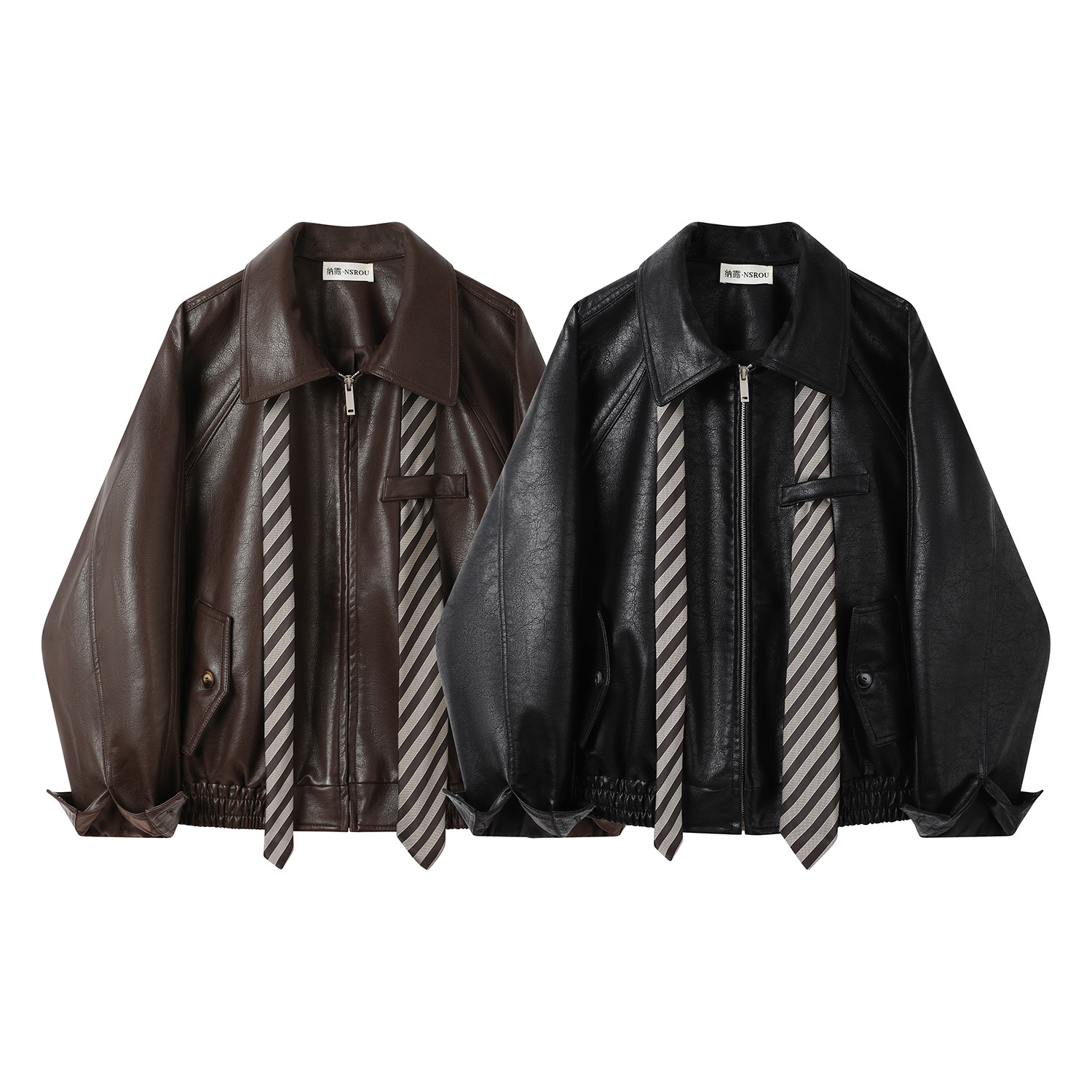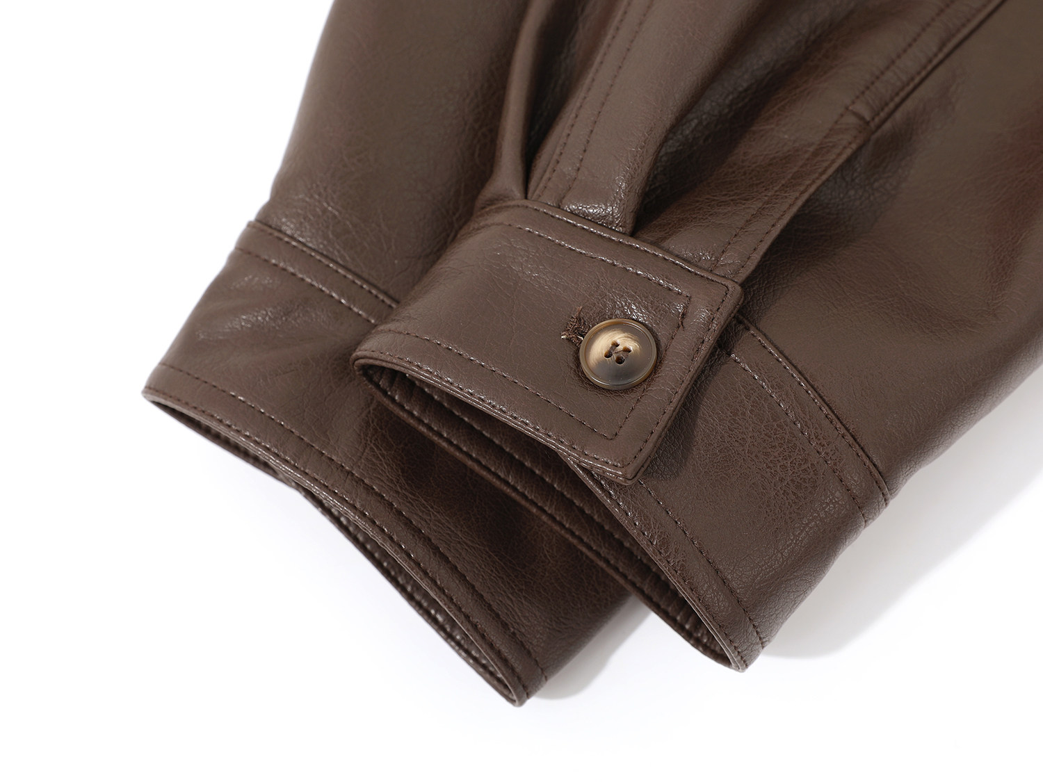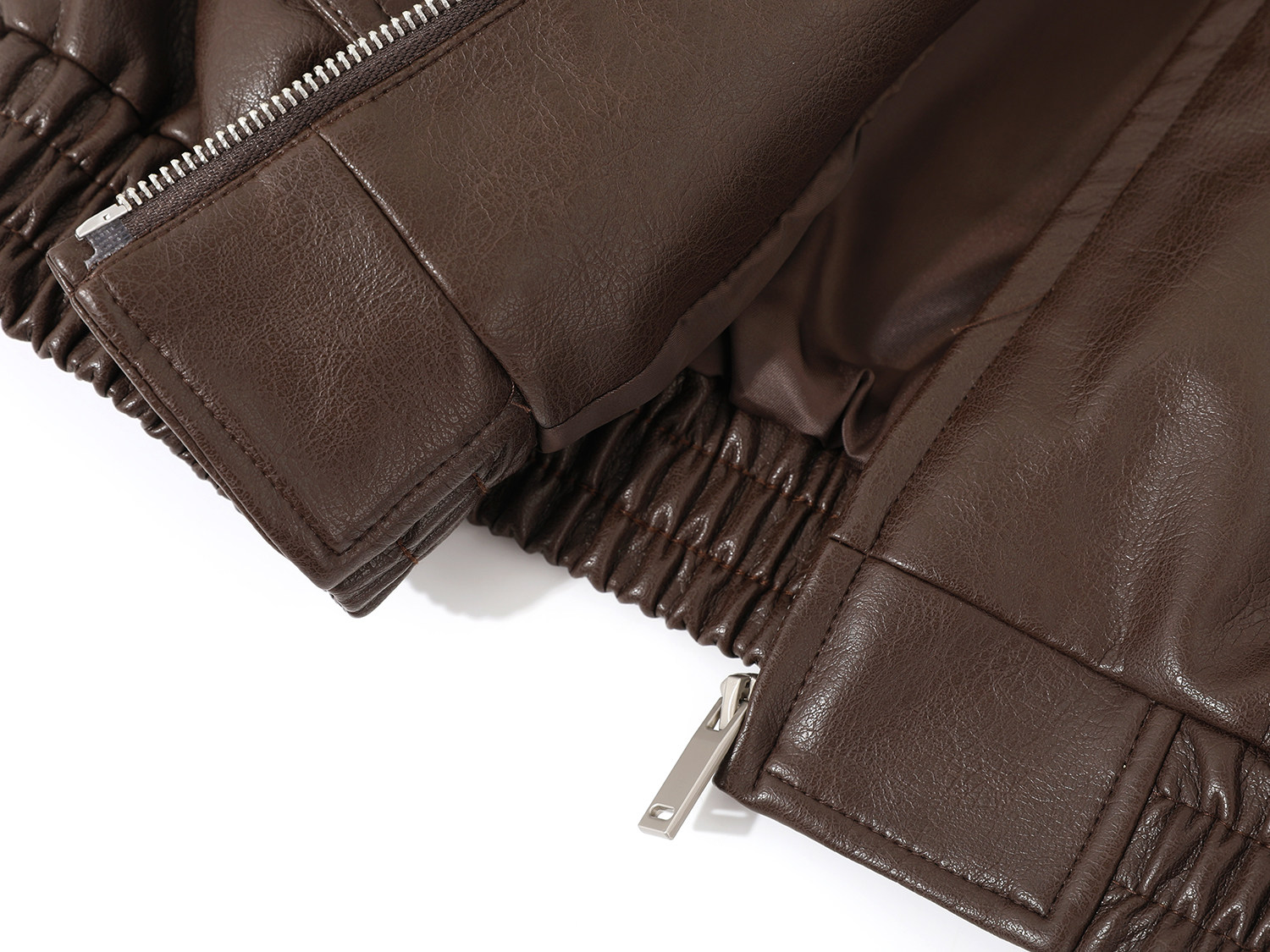 Vintage High-End Cool Style Short Brown Leather Jacket for Women, Autumn Thickened Biker Melard Jacket