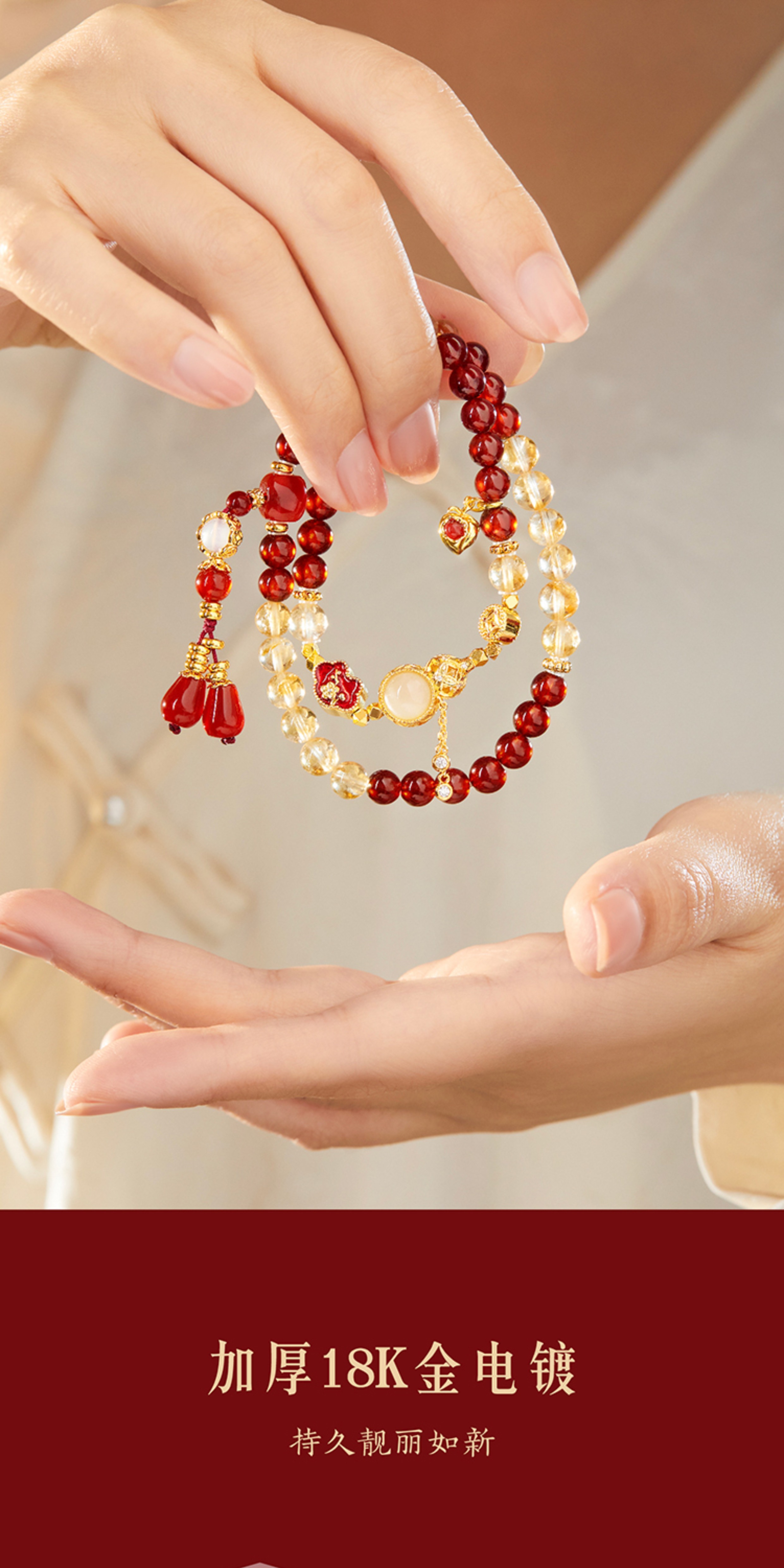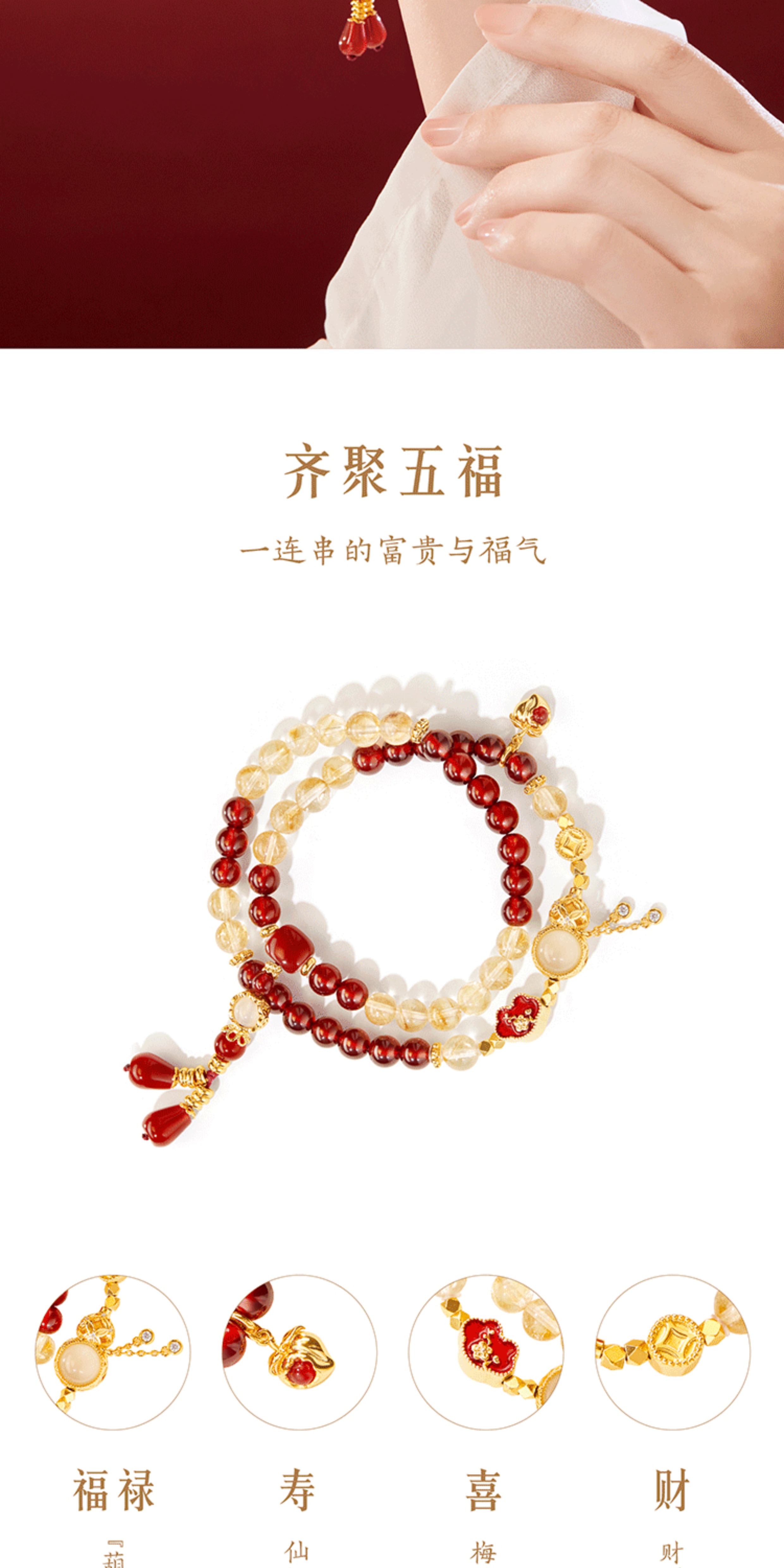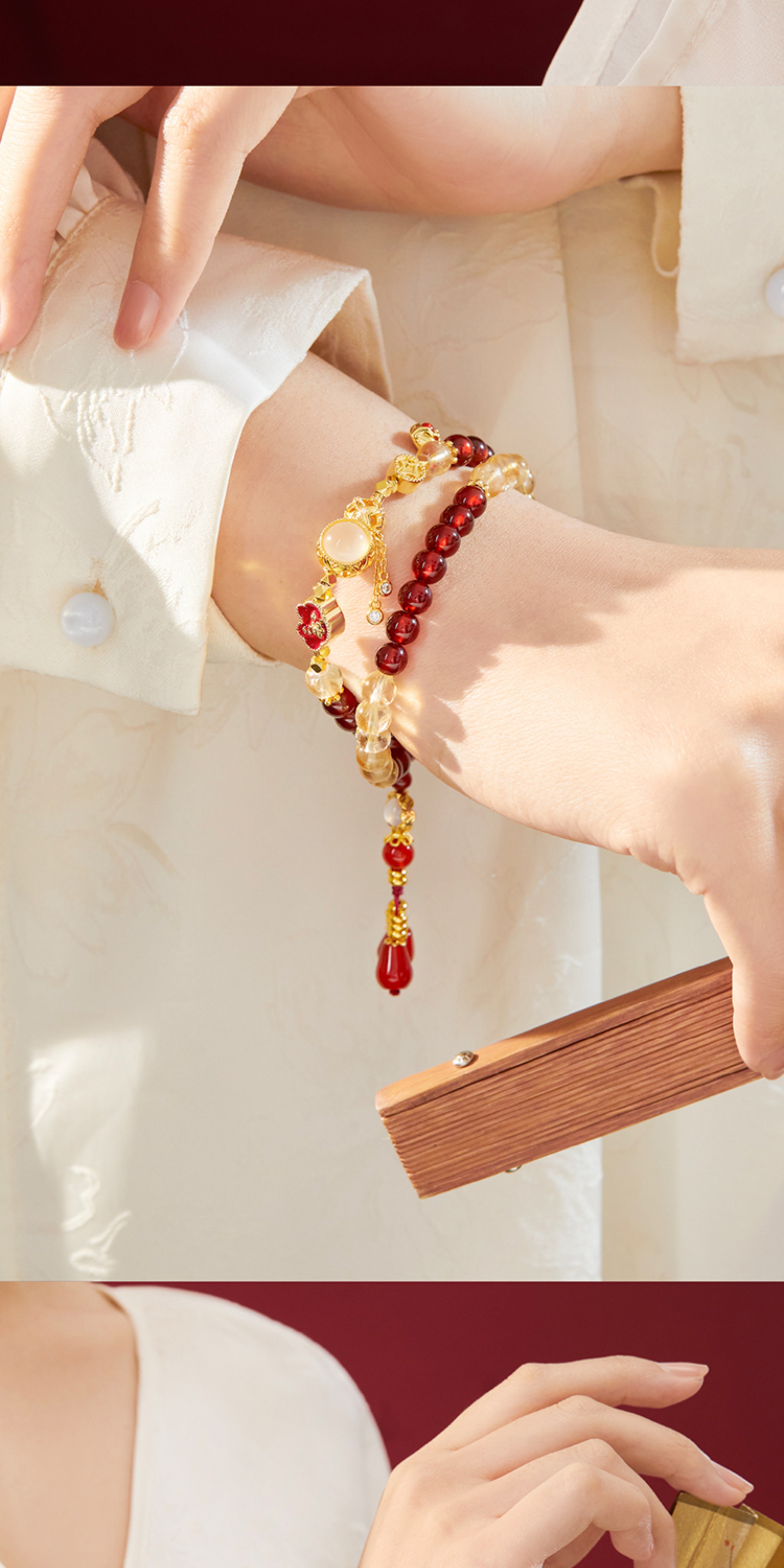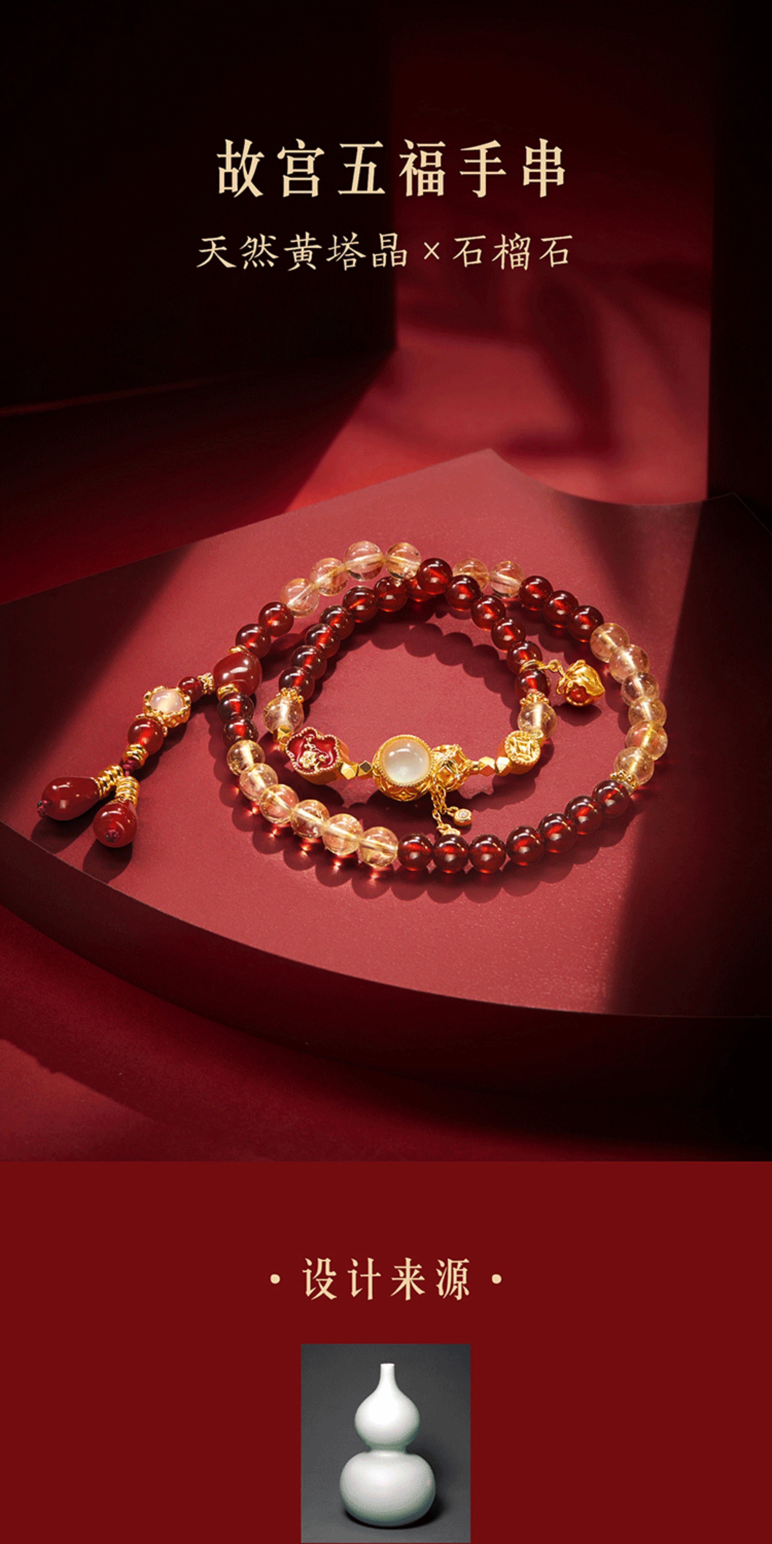Forbidden City Taobao|Five Blessings Bracelet Yellow Tower Crystal Garnet Bracelet Museum Cultural Innovation Wedding Birthday Gift for Women