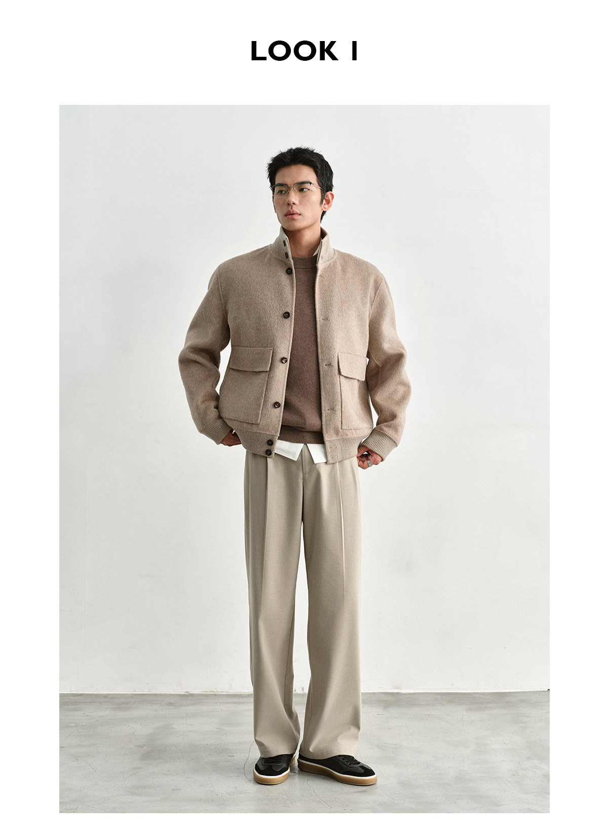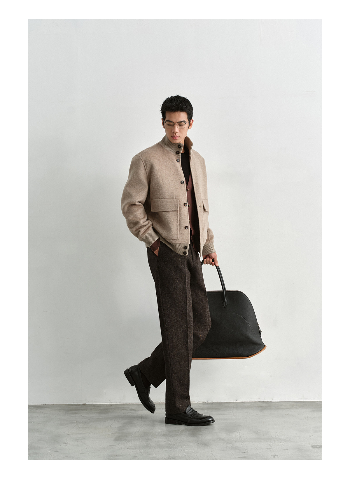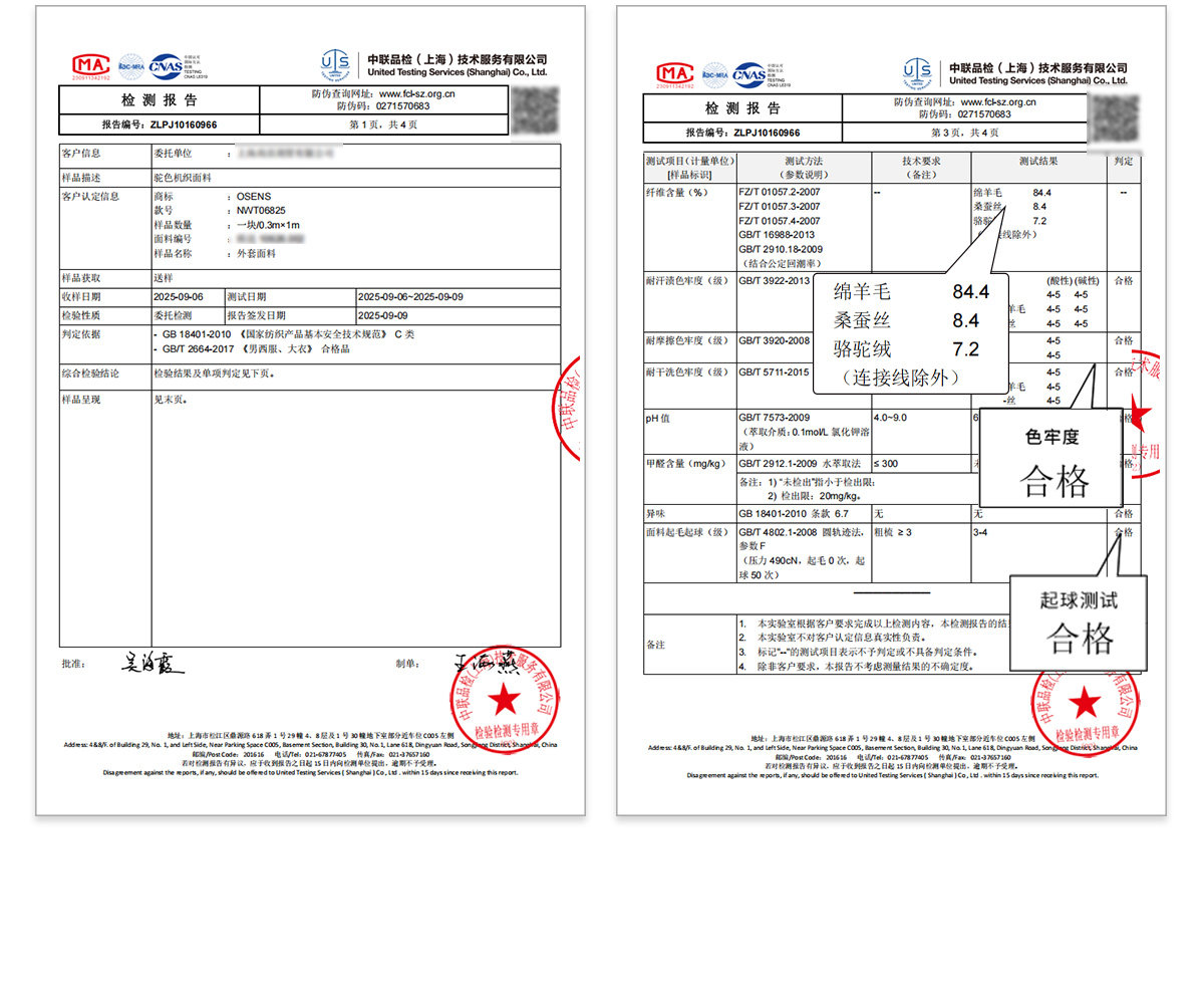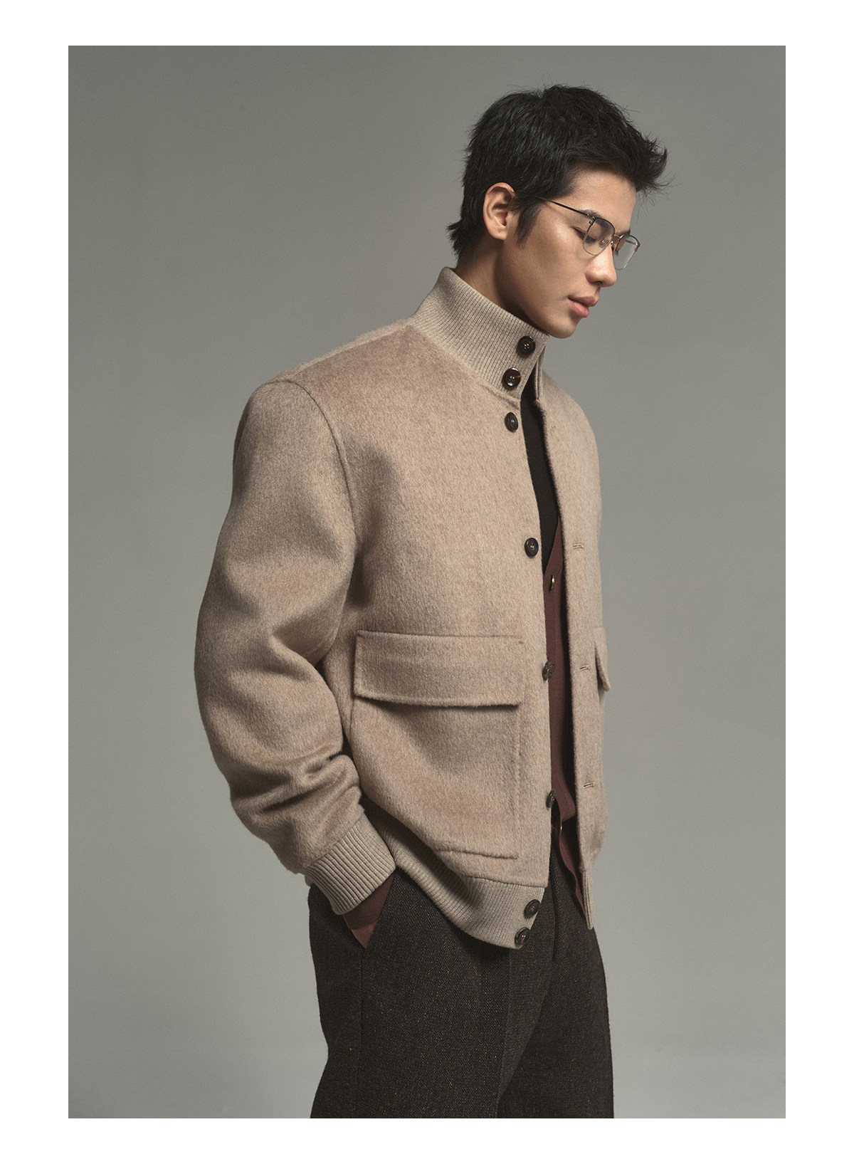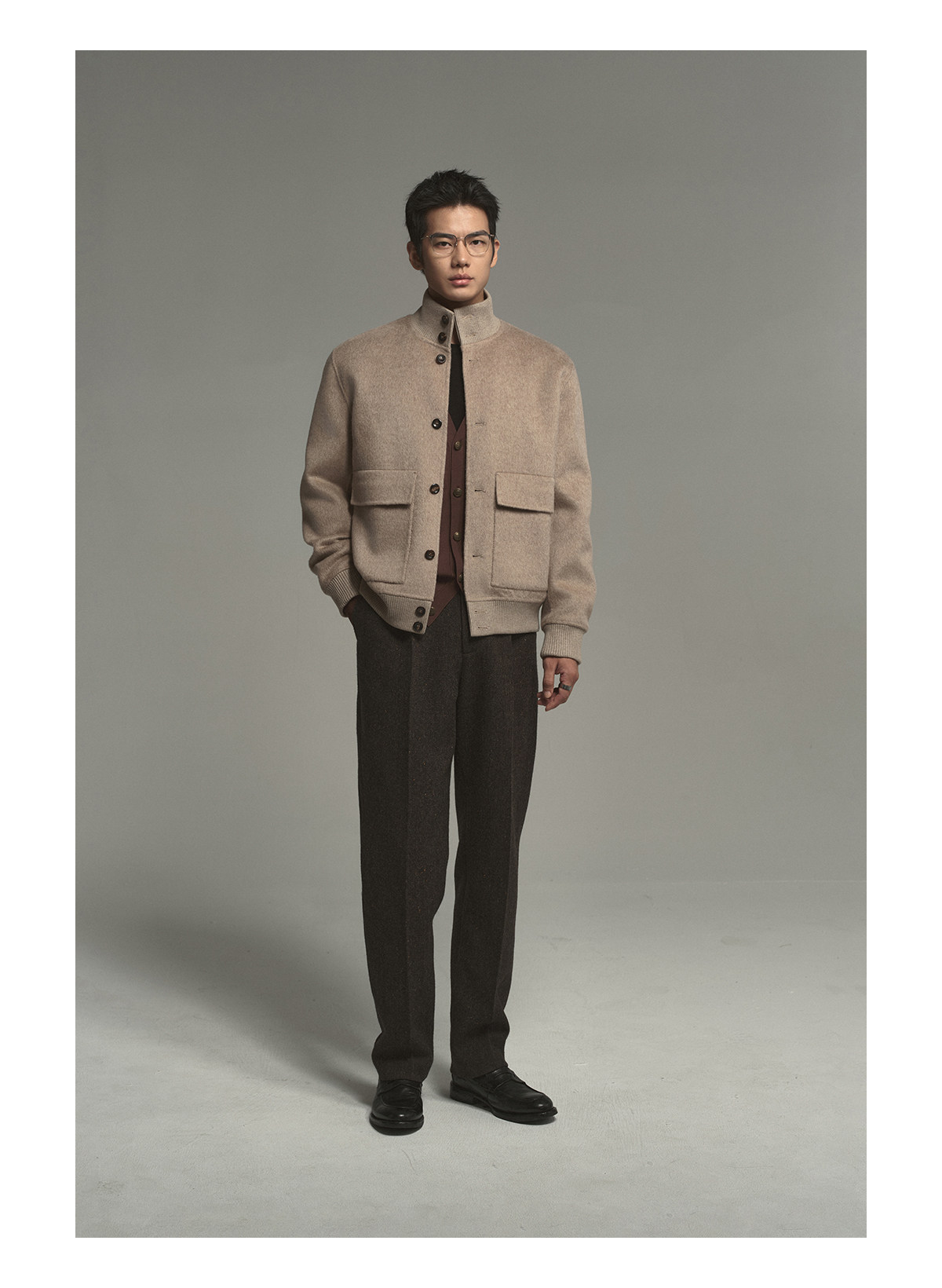 Osens Camel Wool, Mulberry Silk, and Wool Classic Half-High Collar Short Double-Sided Wool Coat Jacket for Men Winter