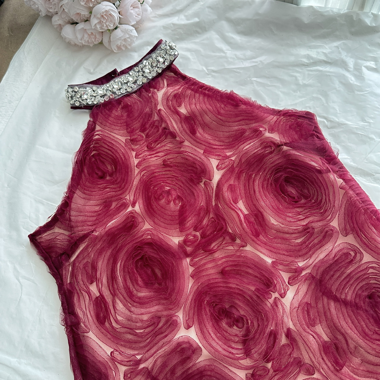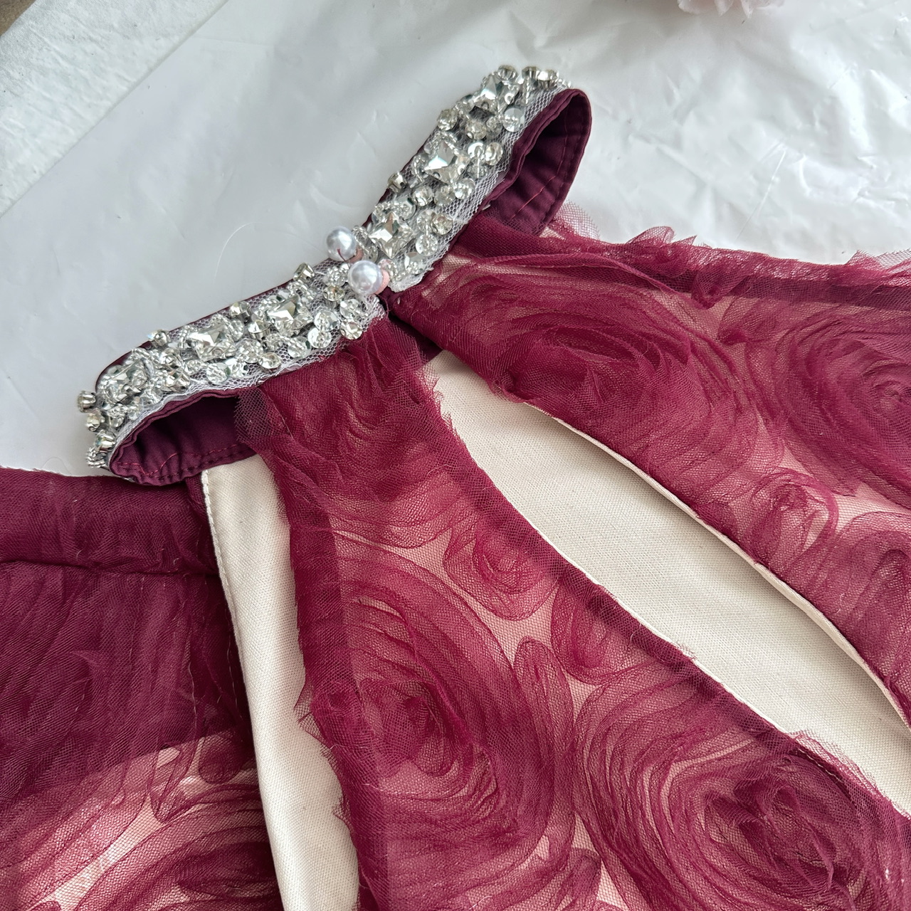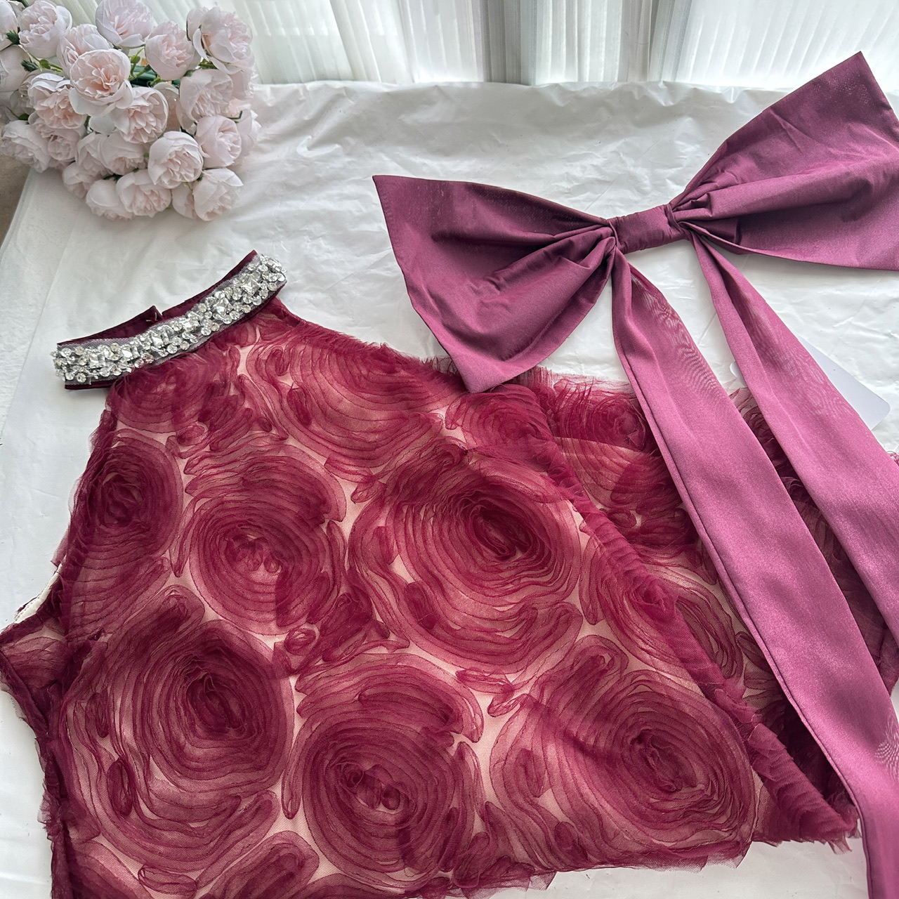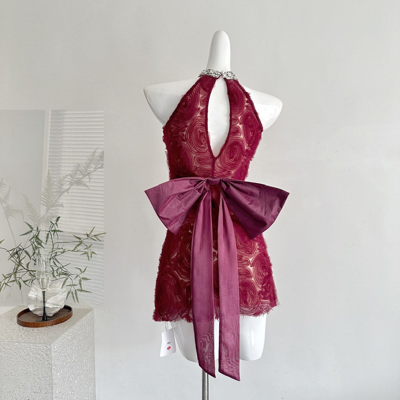 Peach LAOSHU Gatsby/Handmade Beaded Halter Neck Dress for Women, Summer Big Bow Backless Short Dress