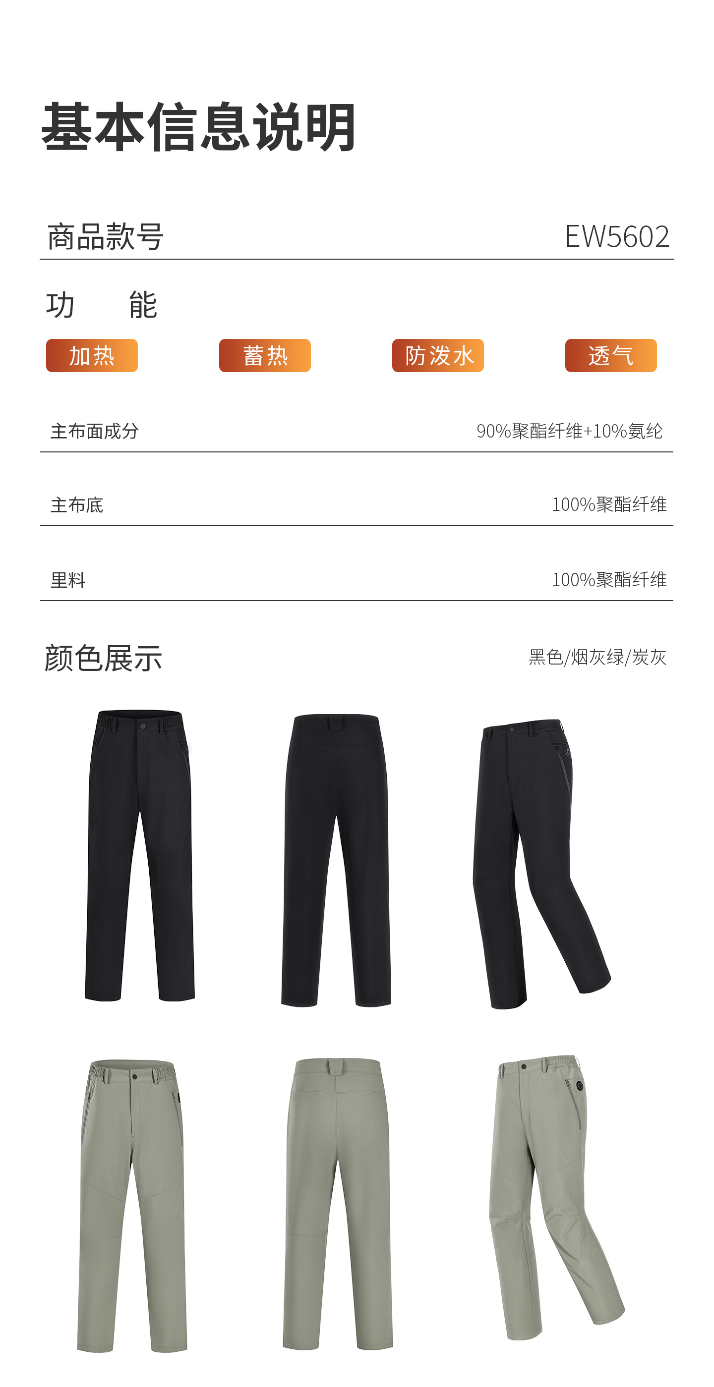 Amadeus Heated Softshell Pants for Men, Autumn and Winter, Thermal Fleece-Lined, Warm, Fluorine-Free, Waterproof, Stain-Resistant, Fishing Pants