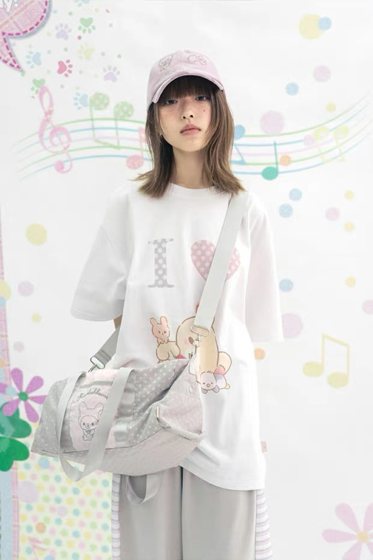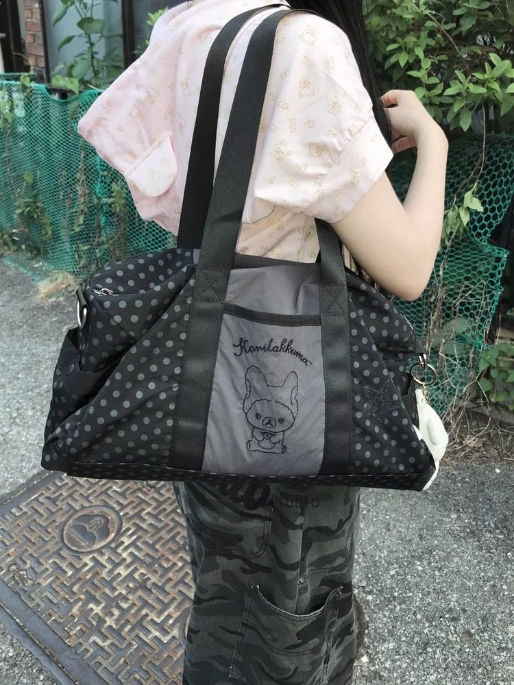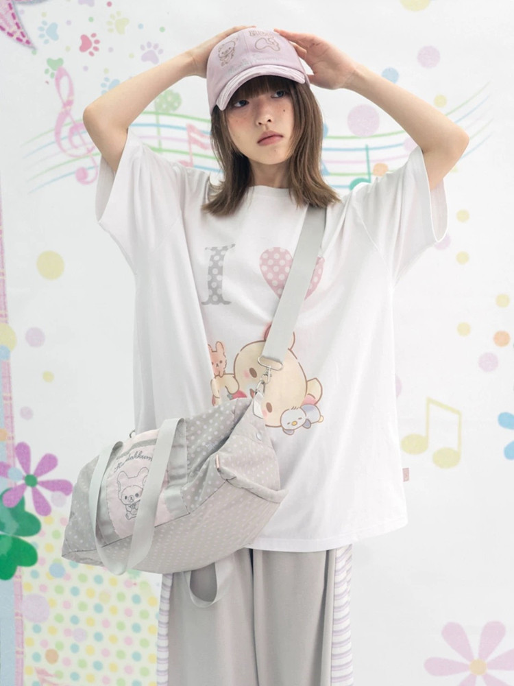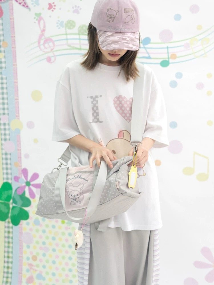 Korean Hugyourskin Rilakkuma Collaboration Casual Style Letter Embroidered Shoulder Bag Crossbody Bag Handbag