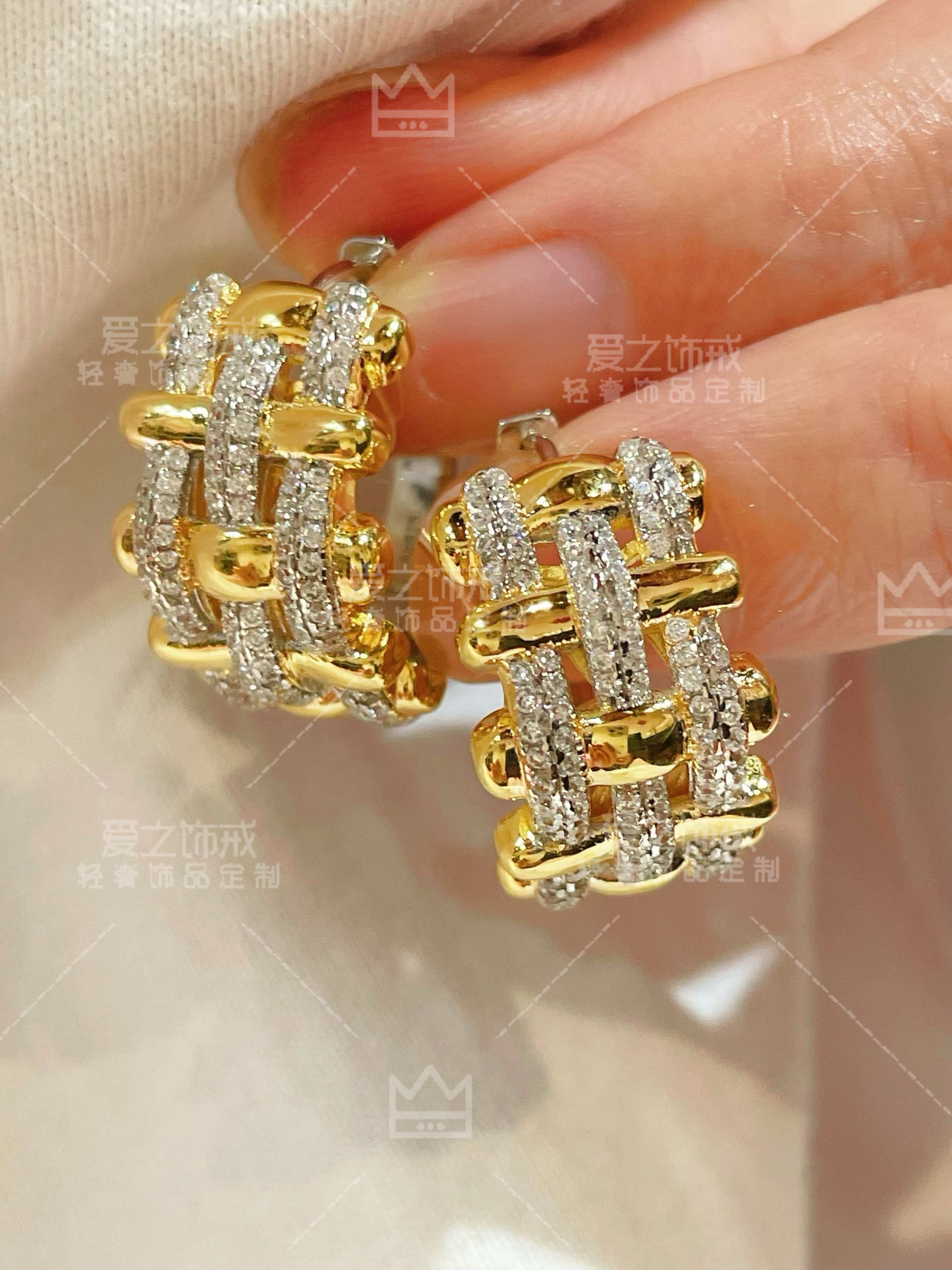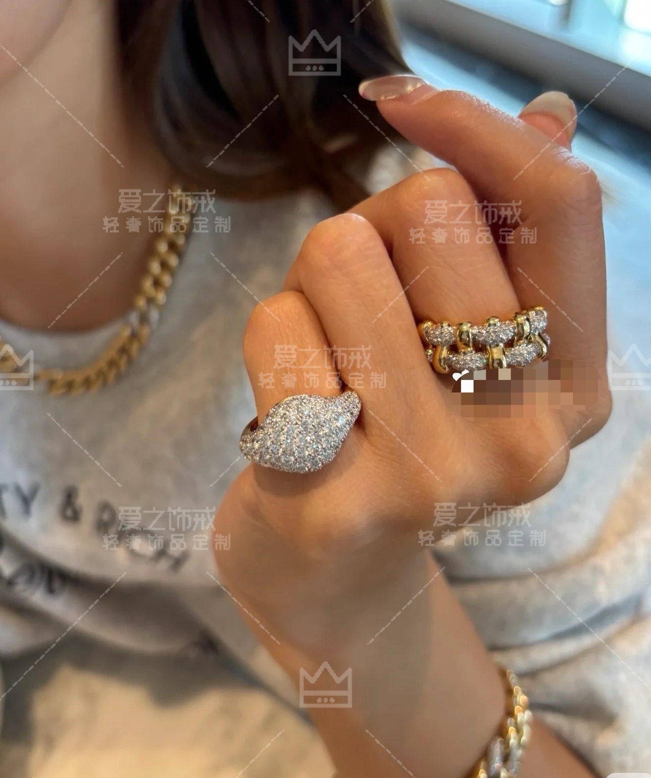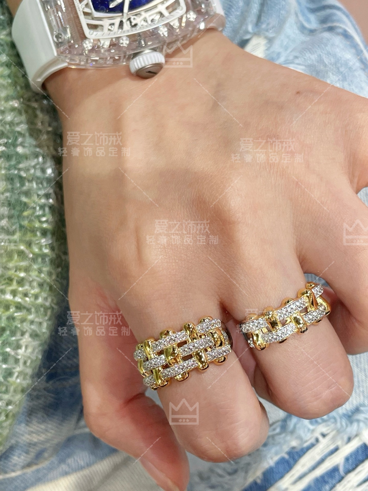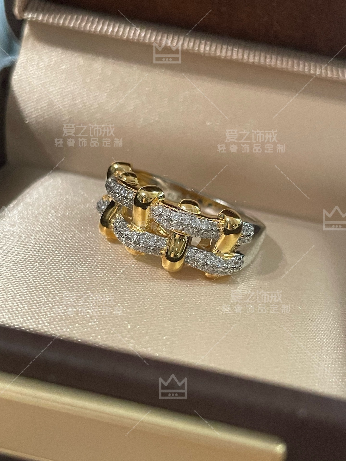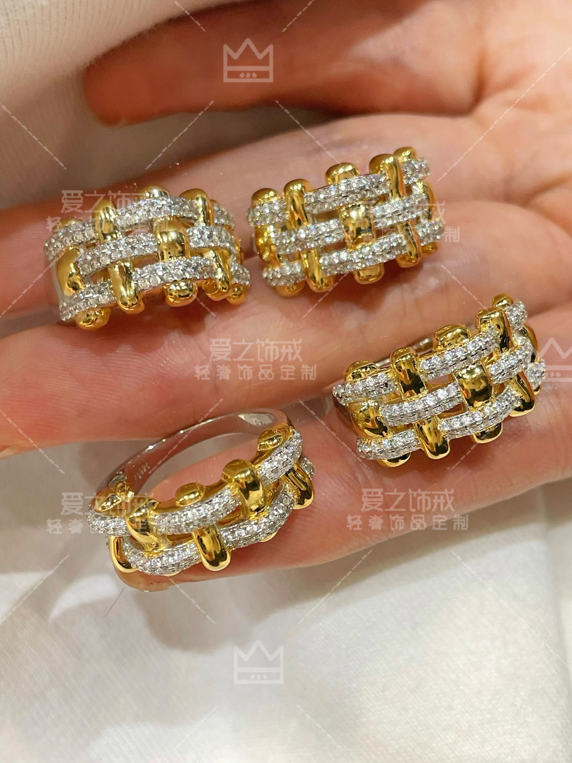 High-End Jewelry S925 Sterling Silver Old Money Style Diamond-Patterned Woven Design Silver Ring Electroplated 18K Gold and Silver Ring