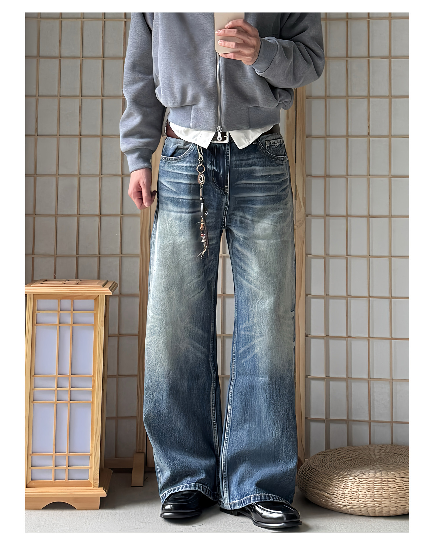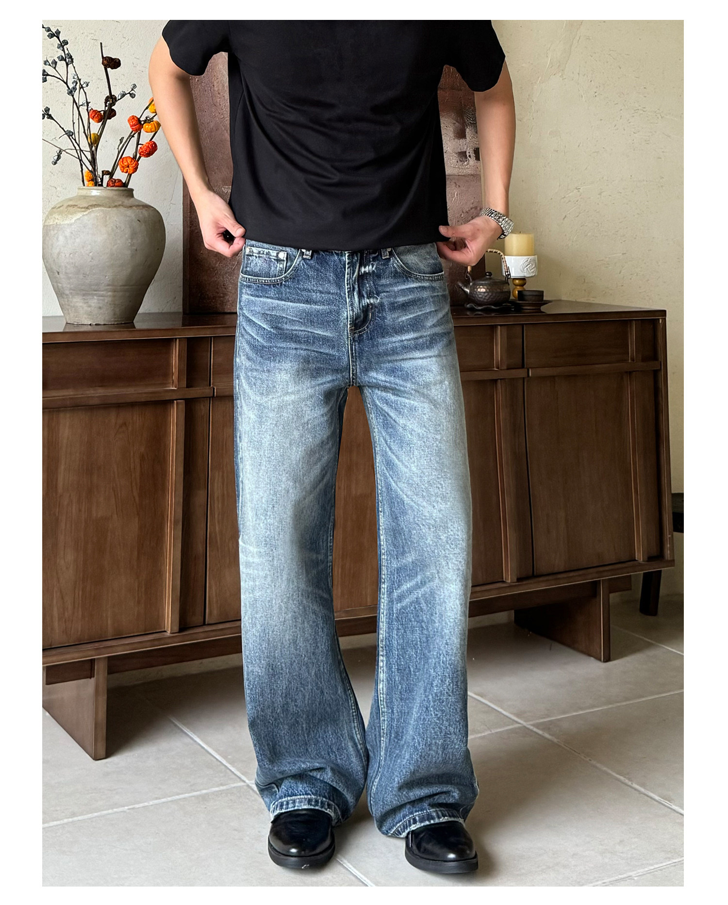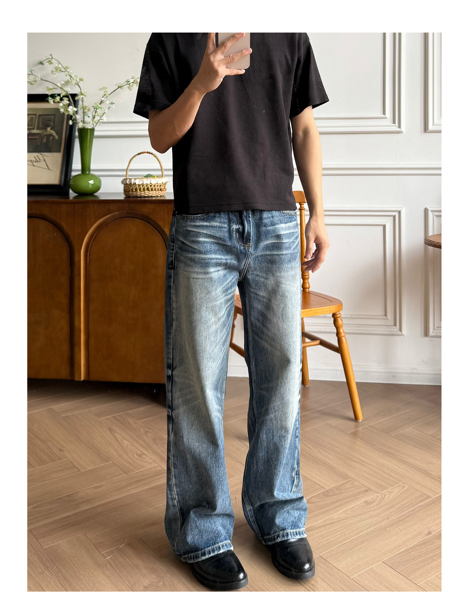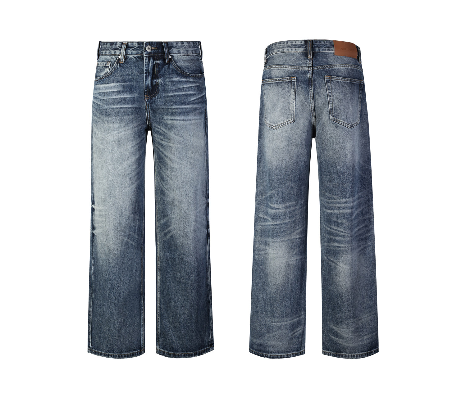 Allfit Deep Sea Blue A-Line Loose Straight-Leg Jeans 14oz Three-Dimensional Whiskered Honeycomb Versatile Commuter Pants for Men