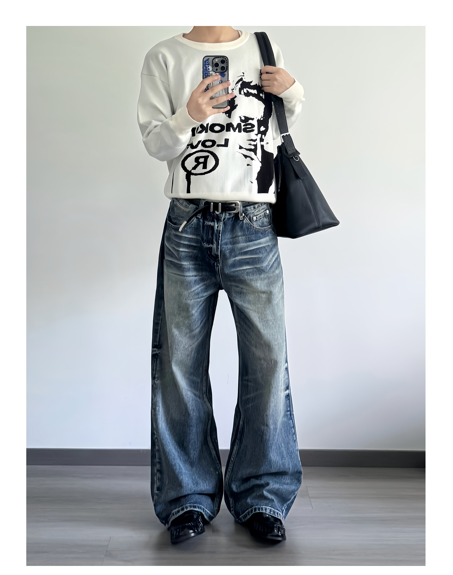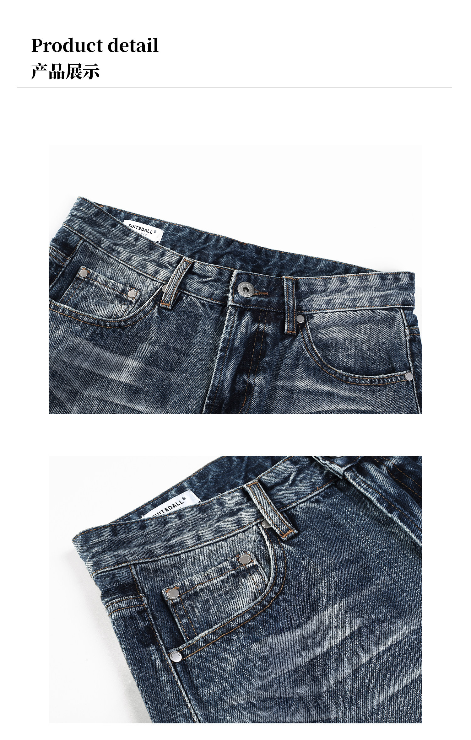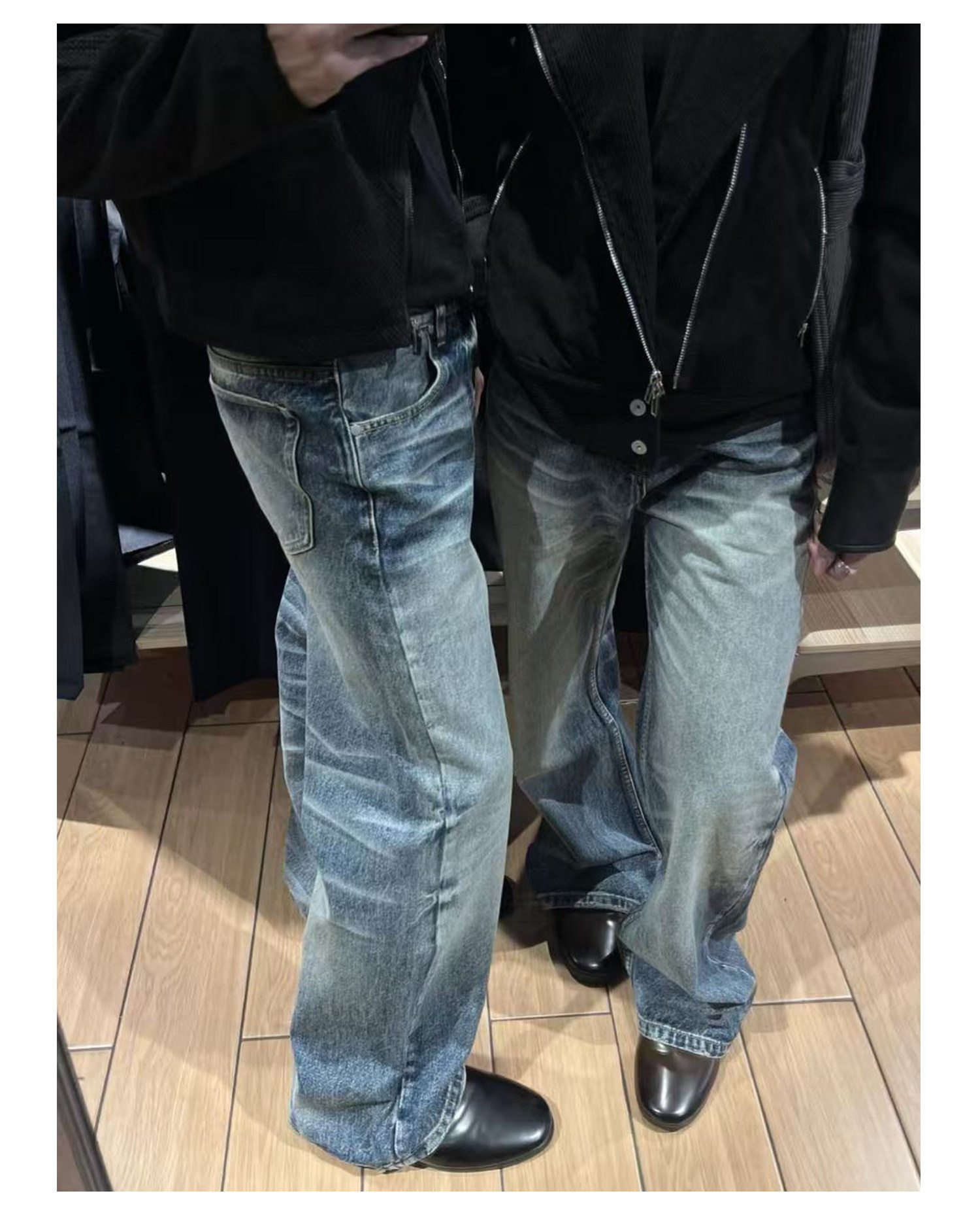 Allfit Deep Sea Blue A-Line Loose Straight-Leg Jeans 14oz Three-Dimensional Whiskered Honeycomb Versatile Commuter Pants for Men