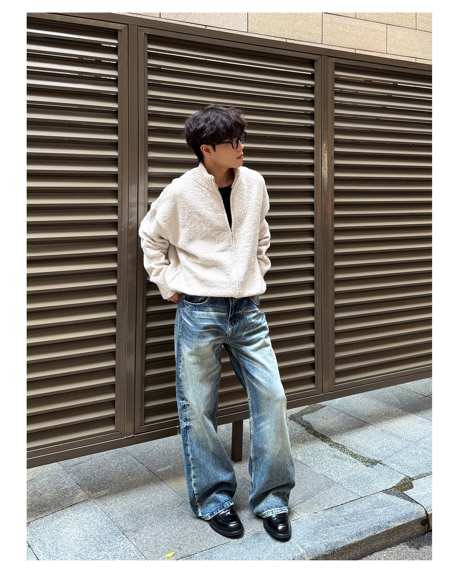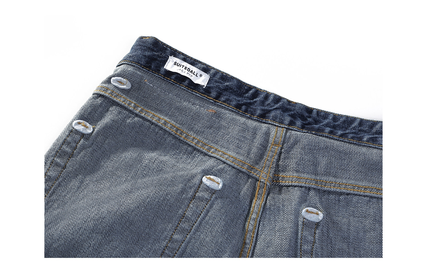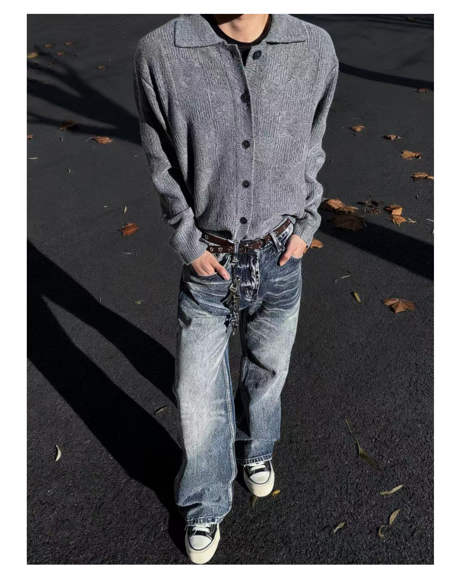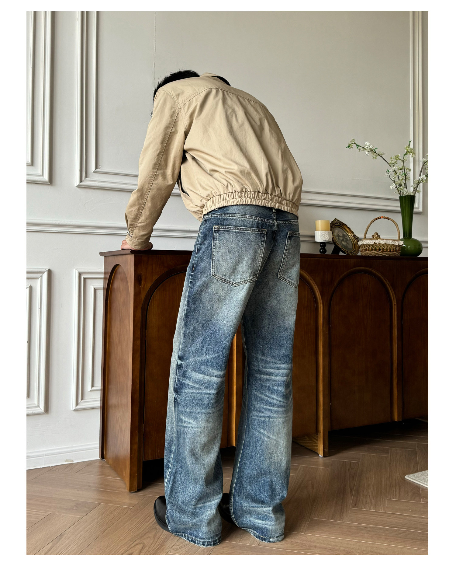 Allfit Deep Sea Blue A-Line Loose Straight-Leg Jeans 14oz Three-Dimensional Whiskered Honeycomb Versatile Commuter Pants for Men