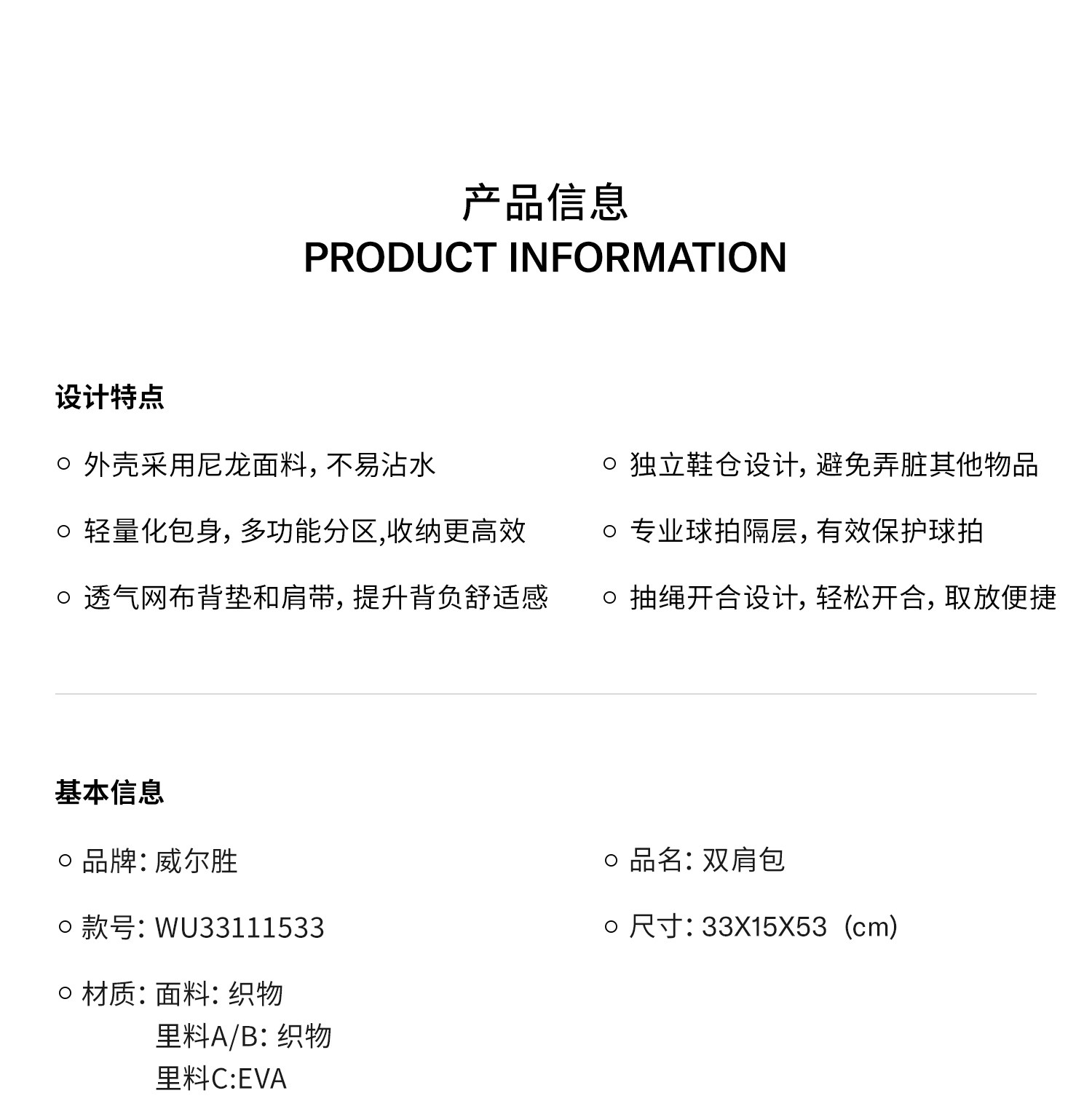 Wilson Official 25 New Model Drawstring Backpack V2 Tennis Sports Backpack