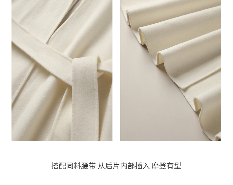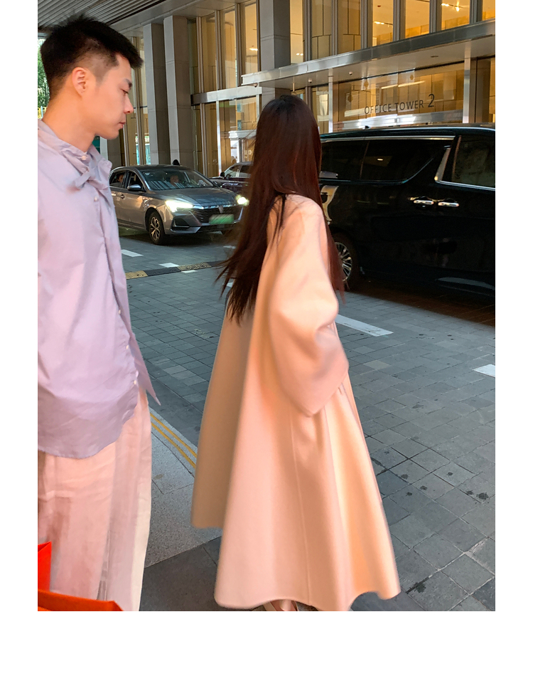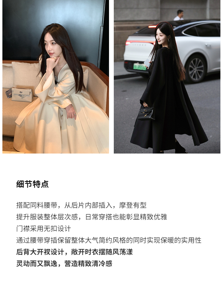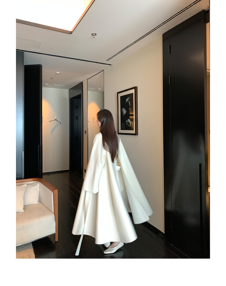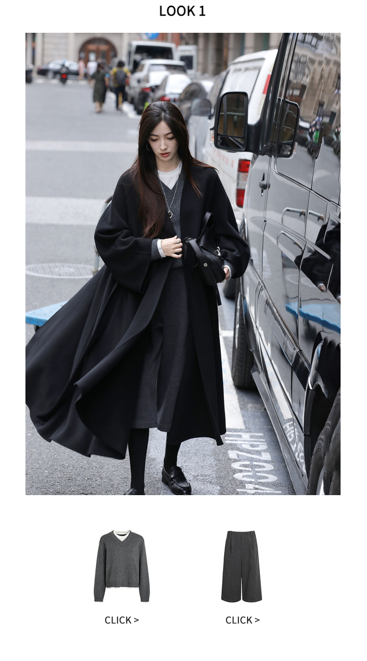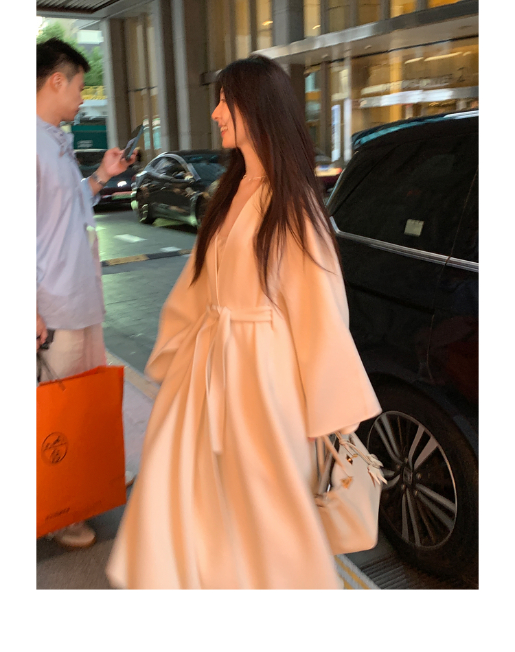 Xia Shiwen 100% Australian Wool High-Density Full Wool V-Neck Double-Sided Woolen Coat, Cool Korean Drama Heroine Style with Large Skirt Hem
