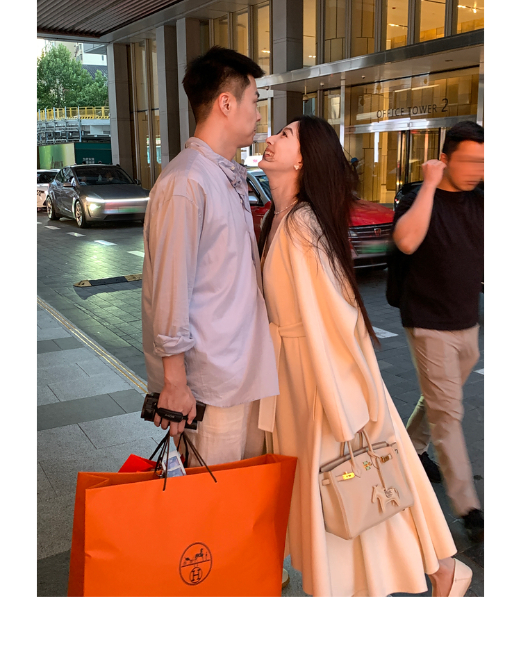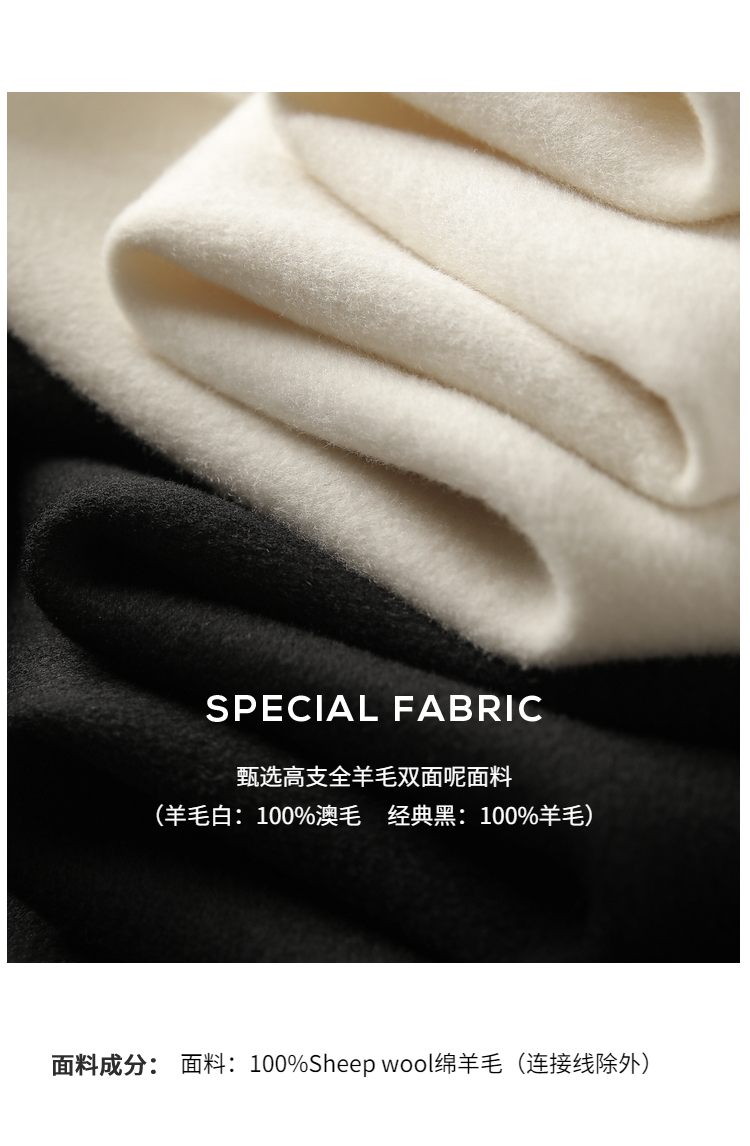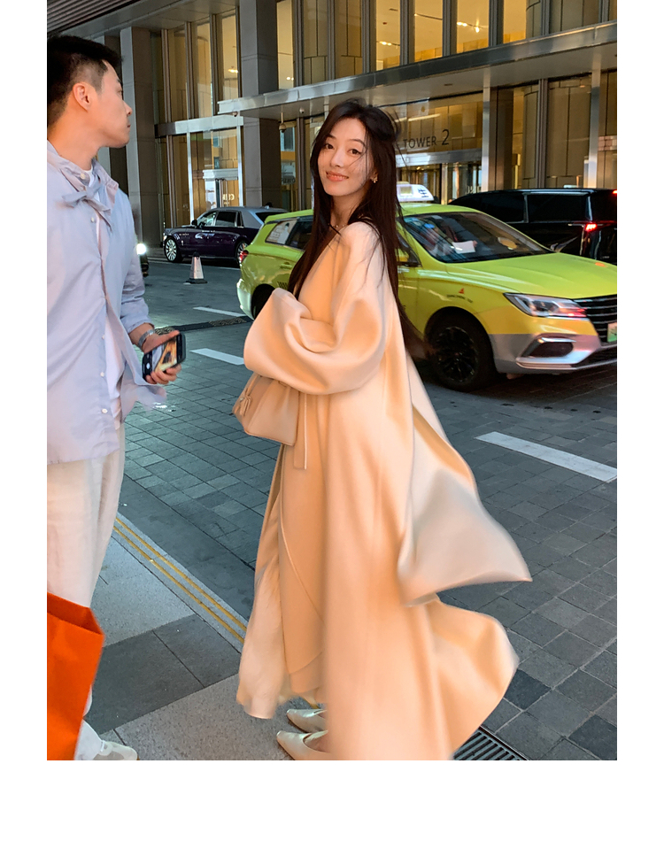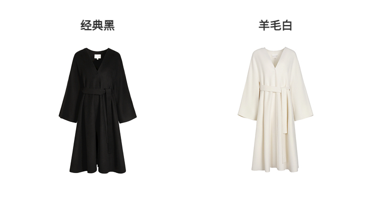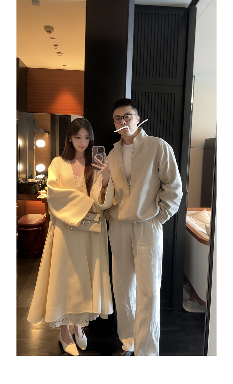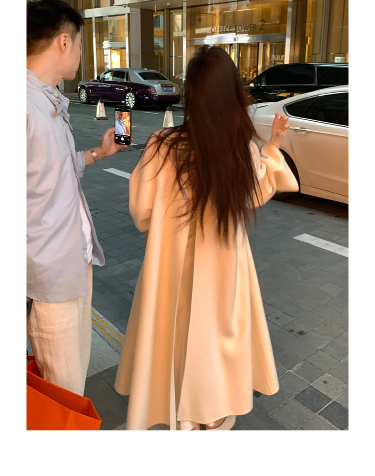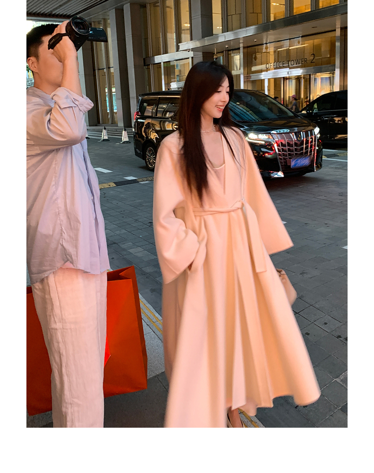 Xia Shiwen 100% Australian Wool High-Density Full Wool V-Neck Double-Sided Woolen Coat, Cool Korean Drama Heroine Style with Large Skirt Hem