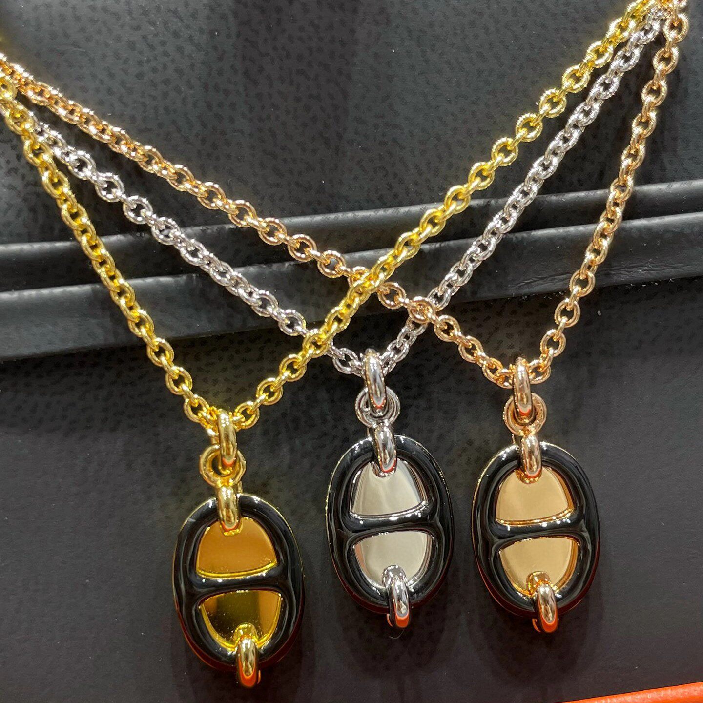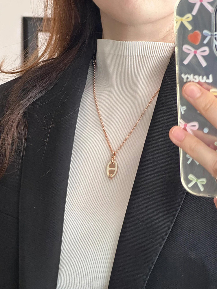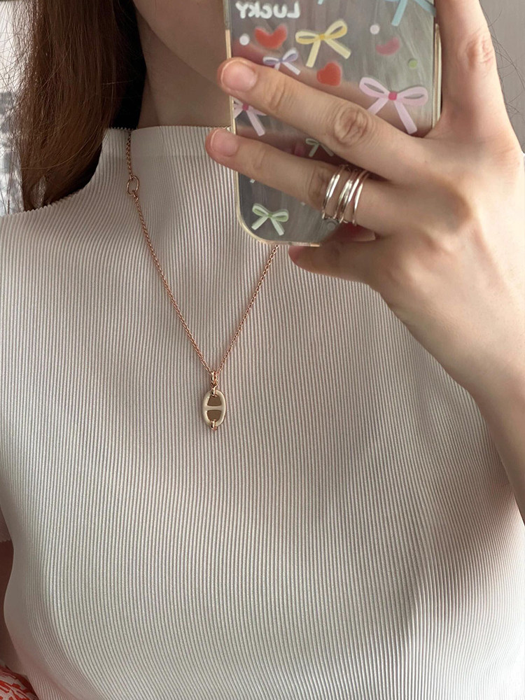 Mini Maillon Necklace 25 New Style Sterling Silver Pig Nose Enamel Mirror Rose Gold 18K Clavicle Chain Pendant
