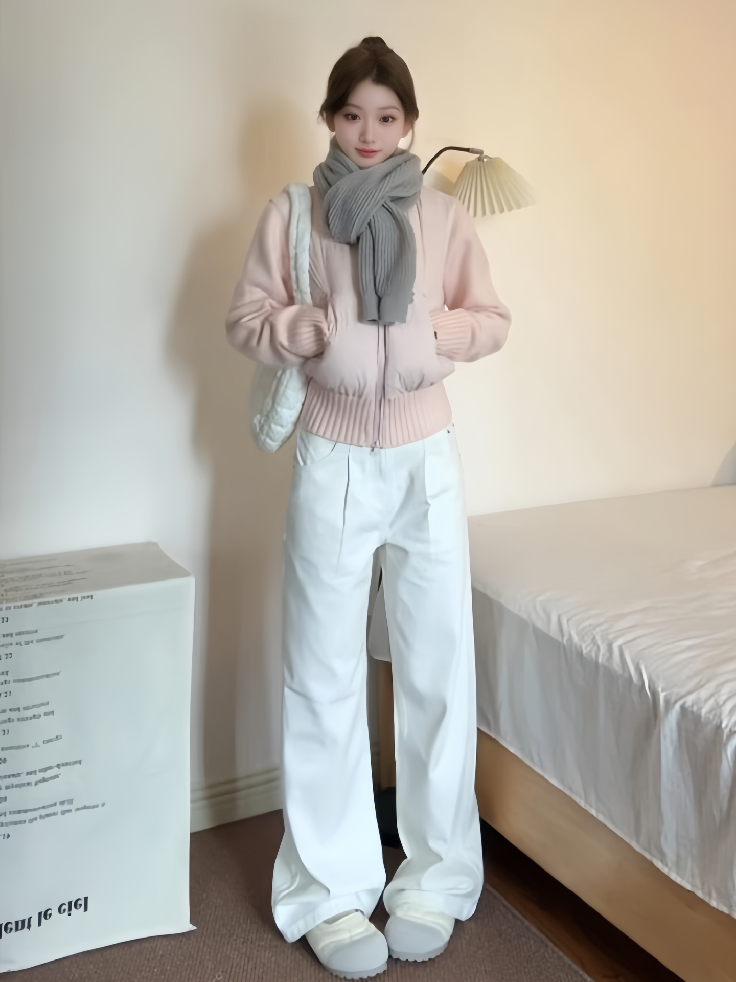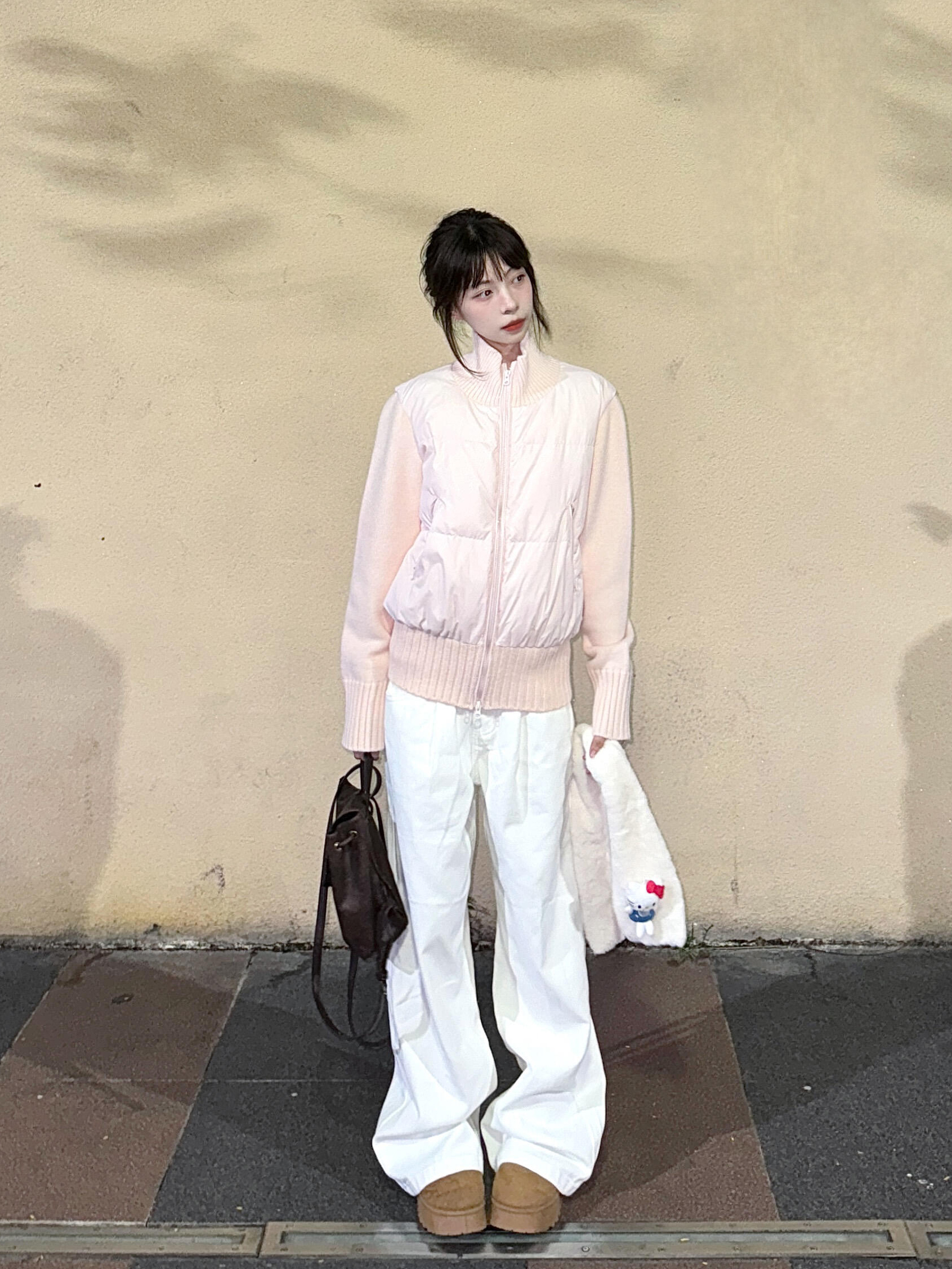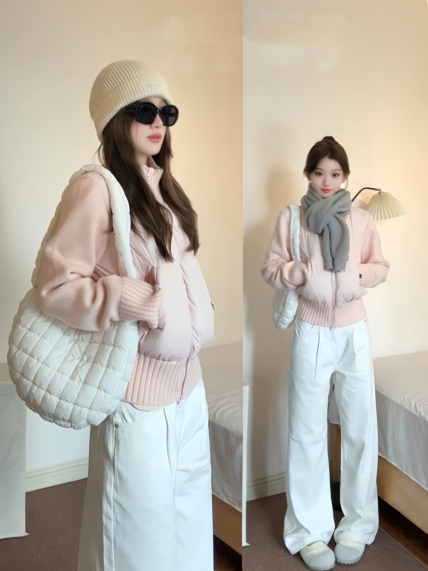 Women's Cotton-Padded Jacket, Winter 2025 New Style, Knitted Sleeves, Patchwork Cotton Coat, Korean Style, Super Pretty, Petite Cotton-Padded Jacket