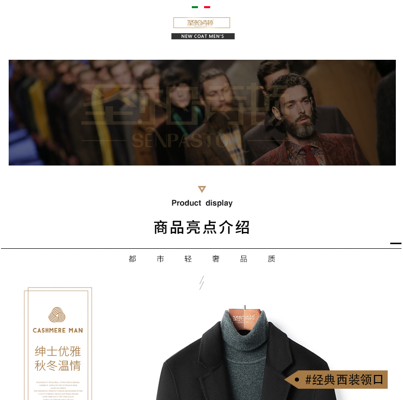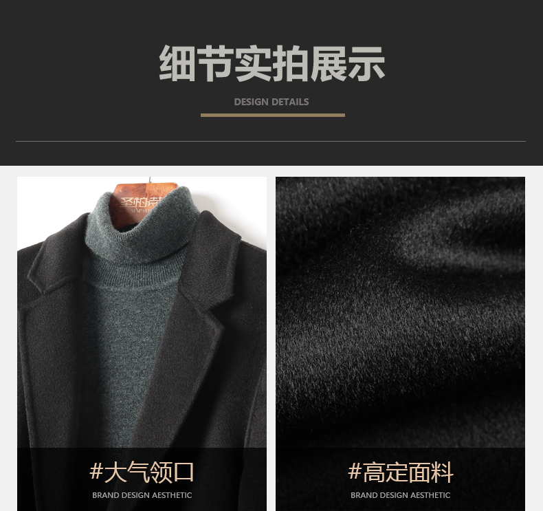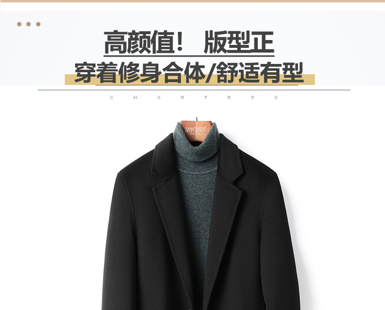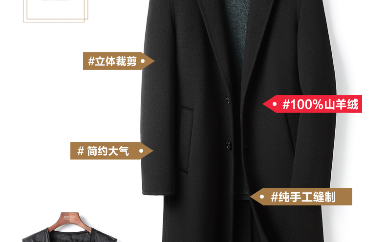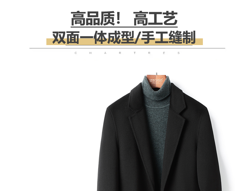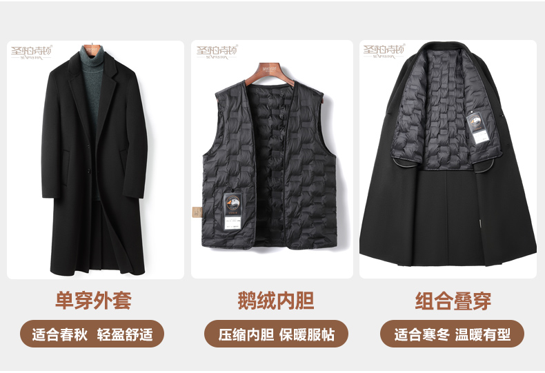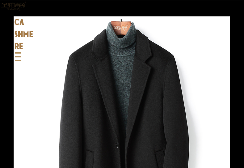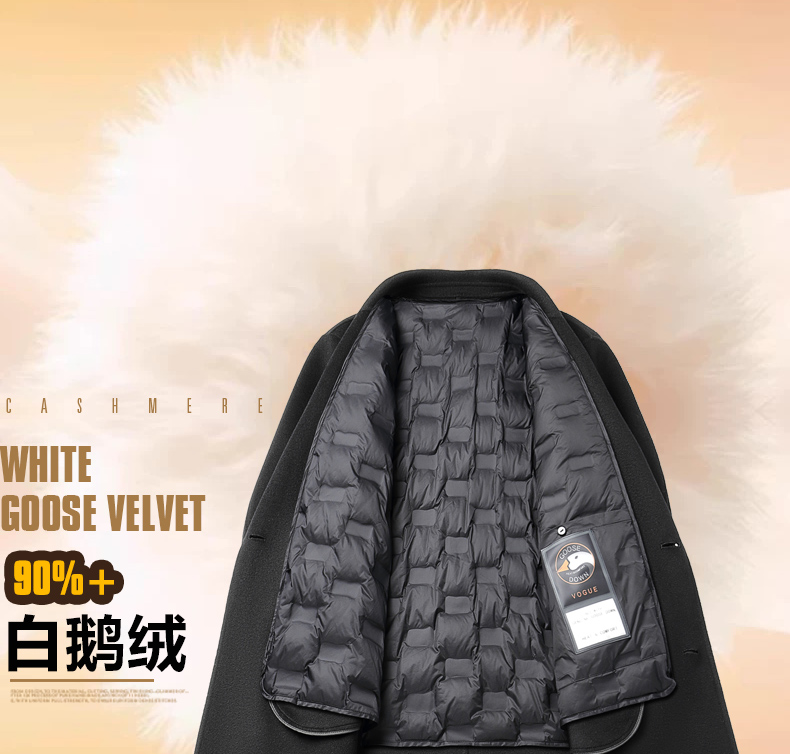 100% Cashmere Coat for Men, Over-The-Knee Long Trench Coat, Autumn and Winter down Lining, High-End Double-Sided Woolen Coat