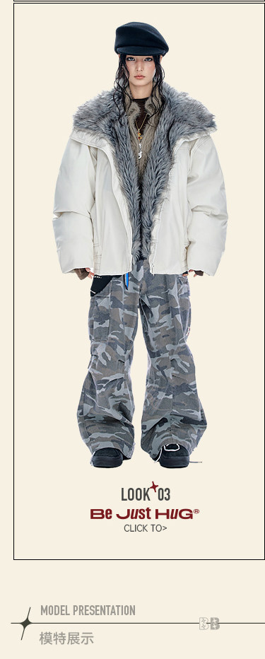 Same Style as Cheng, Bjhg Reckless Mountain Carving Jacket, Cotton Coat for Men, Winter Cool Design, Fur Collar Cotton Coat for Women