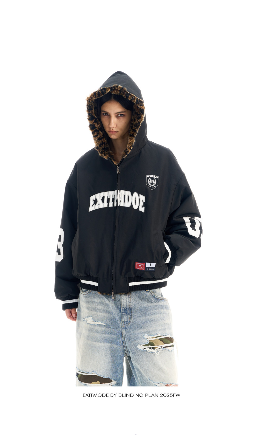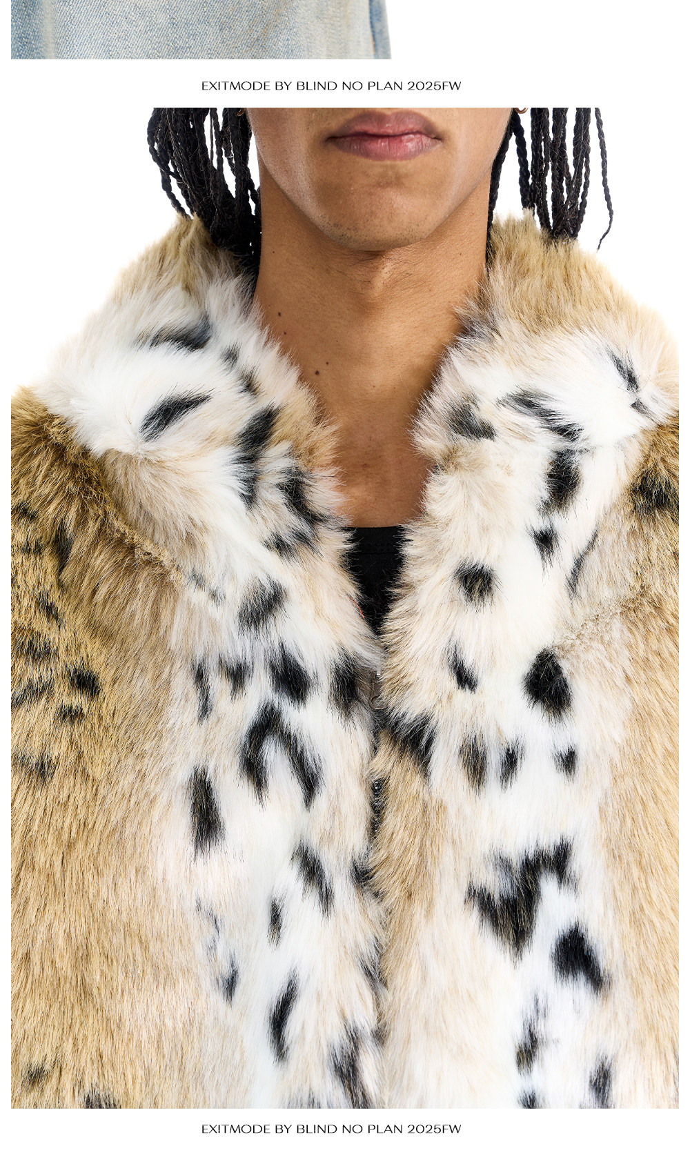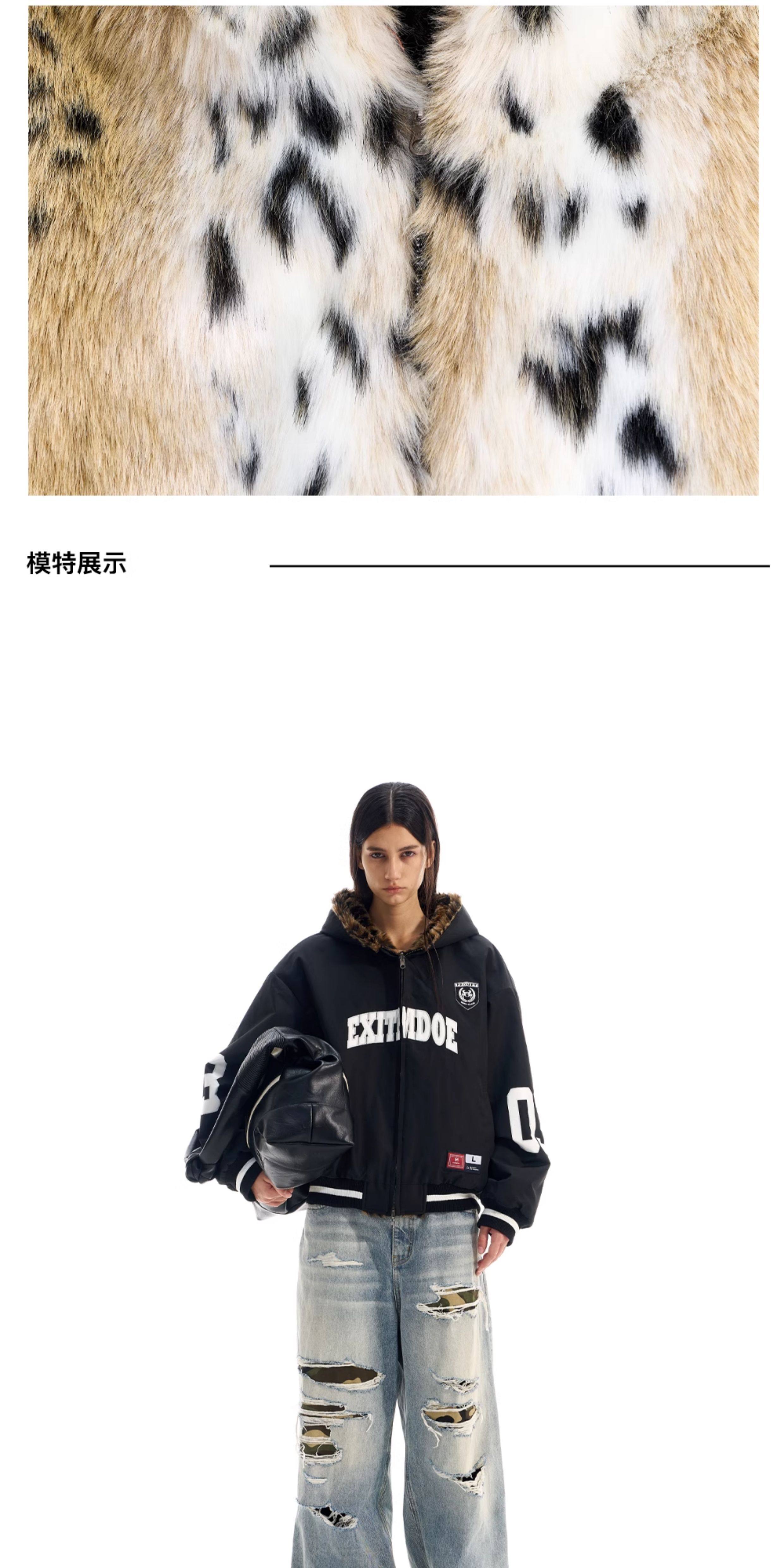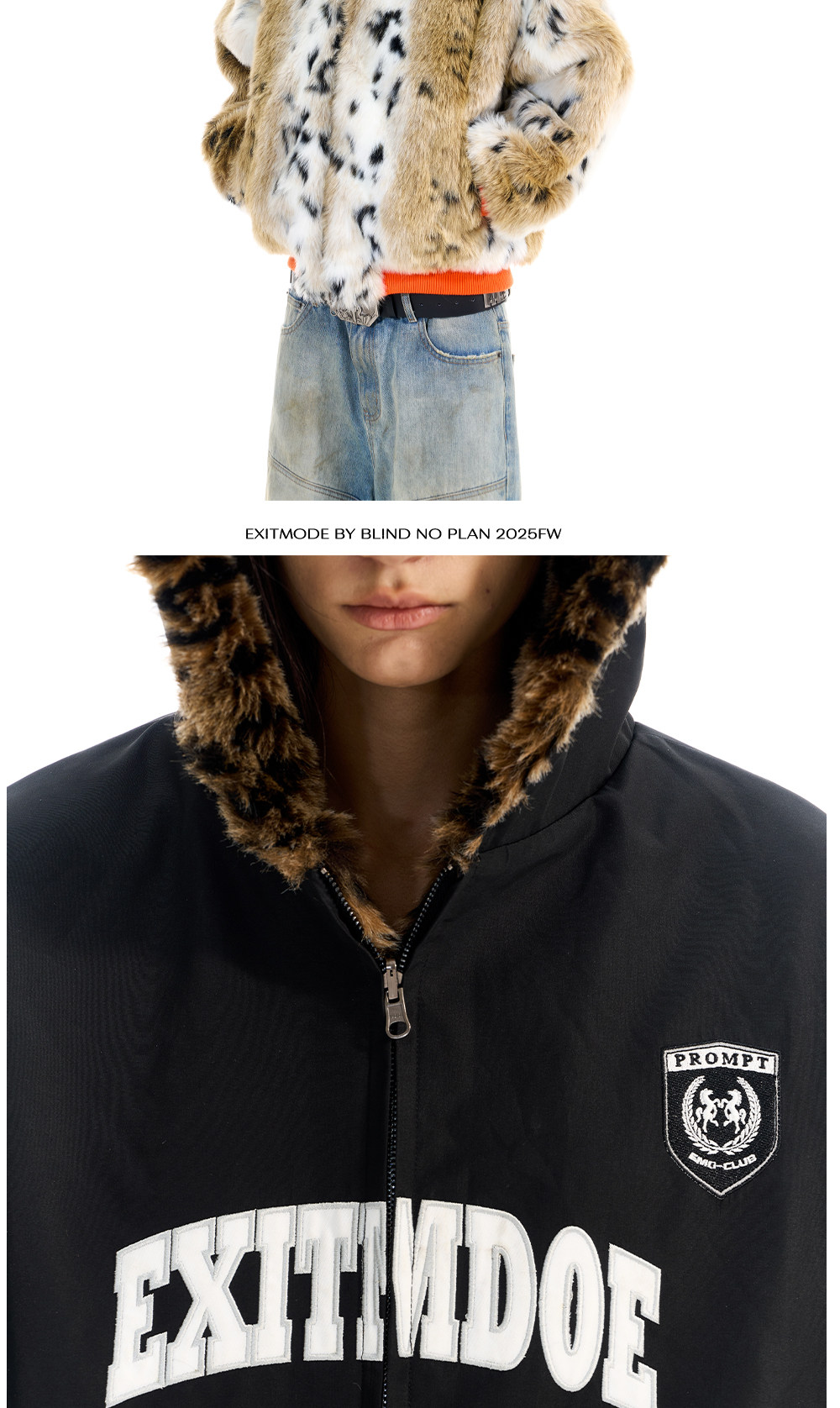 Exitmode by Blindnoplan 25Aw Reversible Plush Sports Jacket Winter Leopard Print Cotton Coat