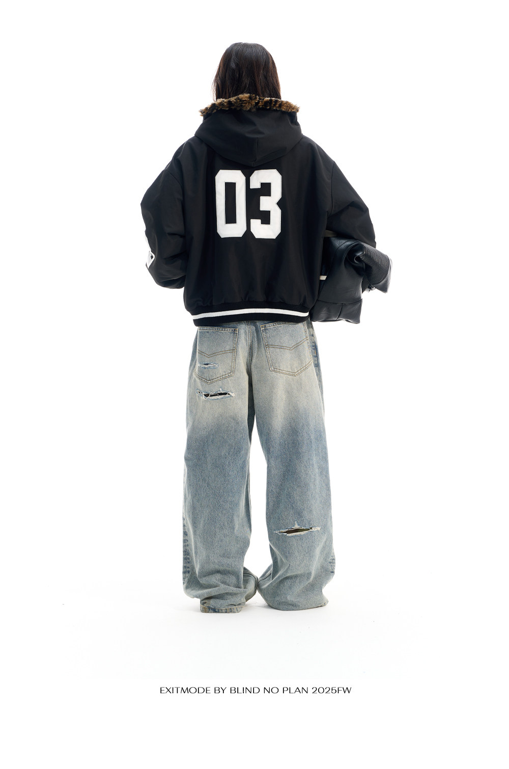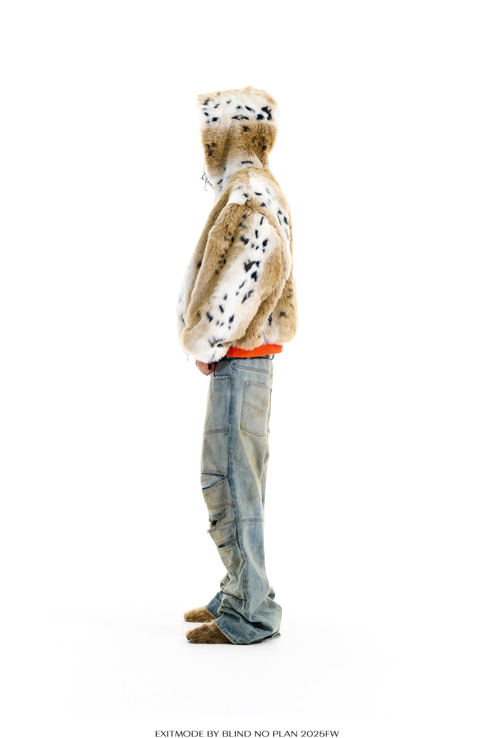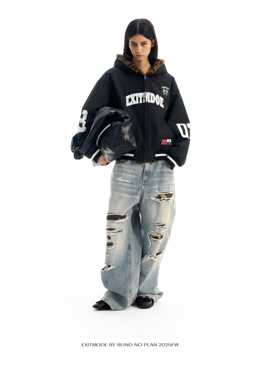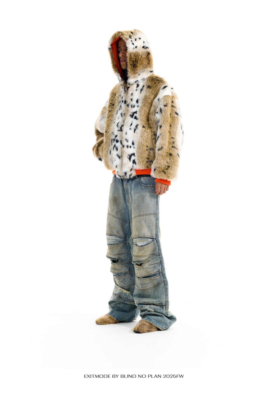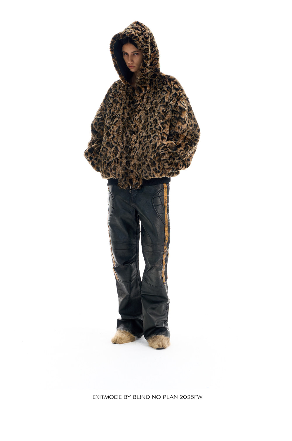 Exitmode by Blindnoplan 25Aw Reversible Plush Sports Jacket Winter Leopard Print Cotton Coat