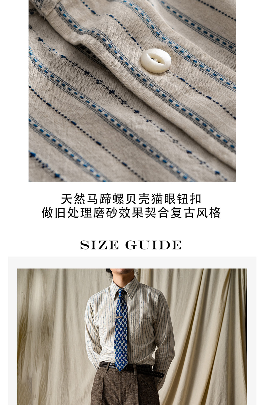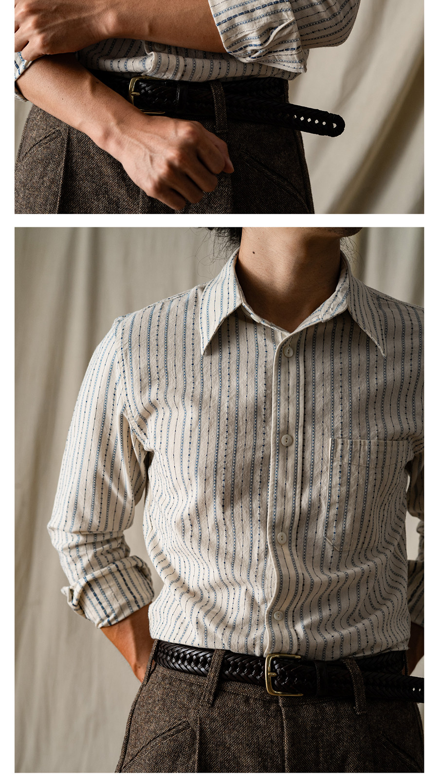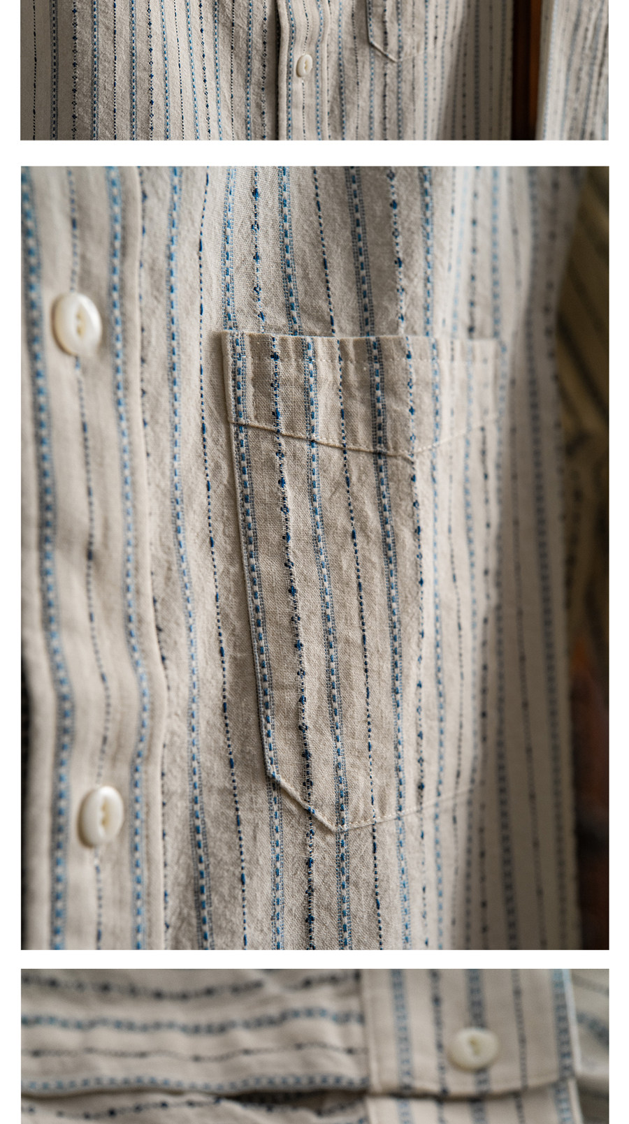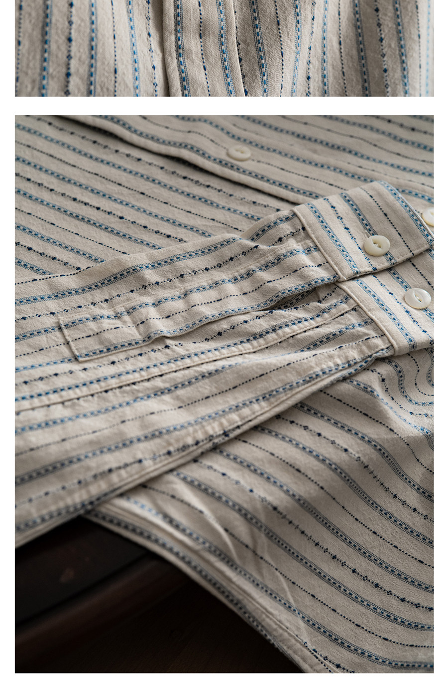 Tash&Co Milky White Beaded Jacquard Striped Ivy Shirt, All-Cotton American Retro Long-Sleeve Shirt