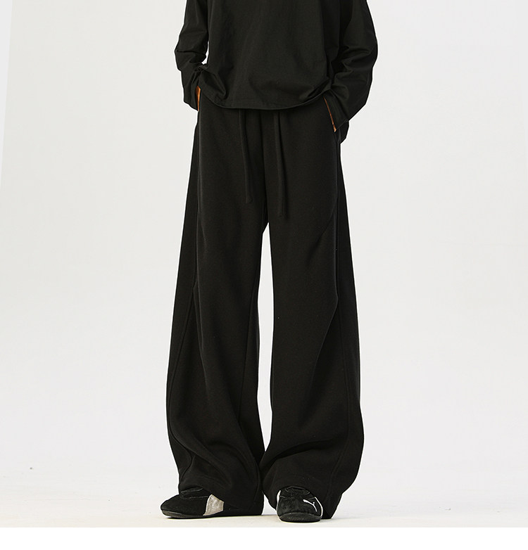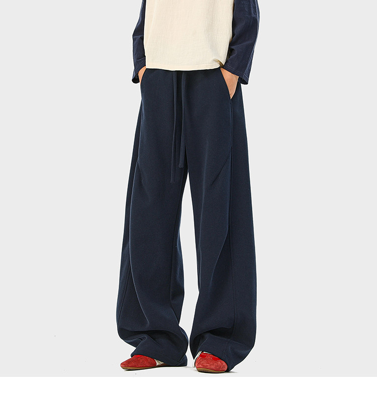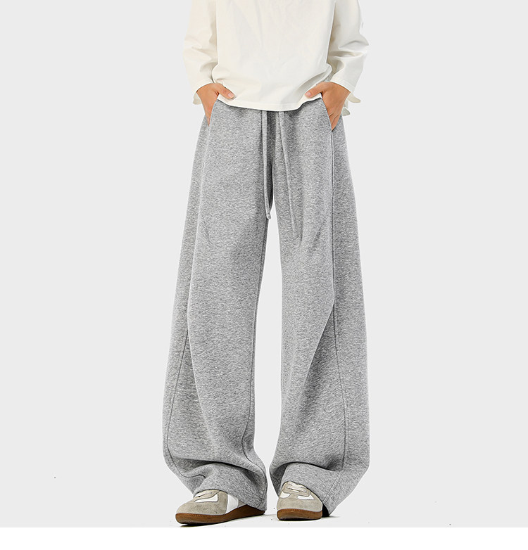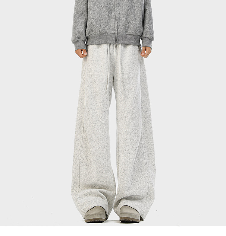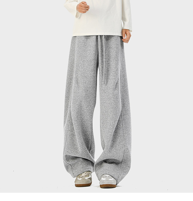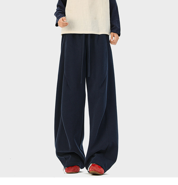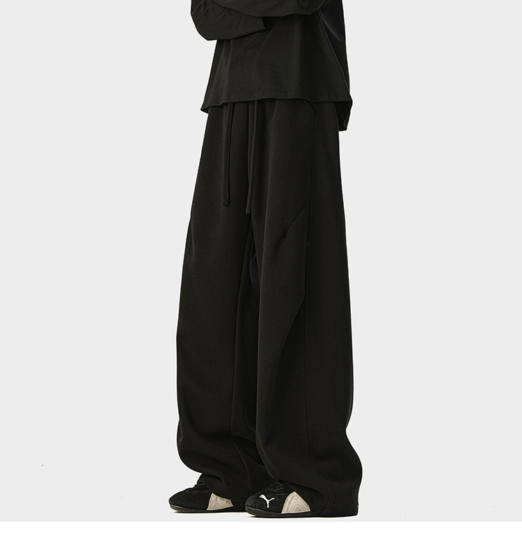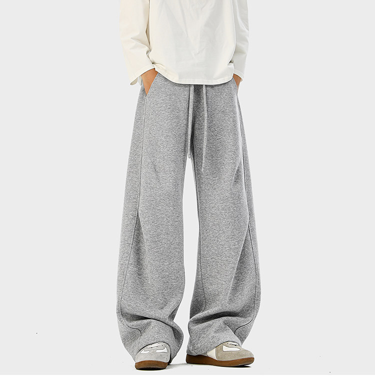 Heavyweight American-Style Sports Sweatpants for Men, Winter Trendy Brand Pleated Wide-Leg Casual Long Pants, High-Street Loose Straight-Leg Trousers
