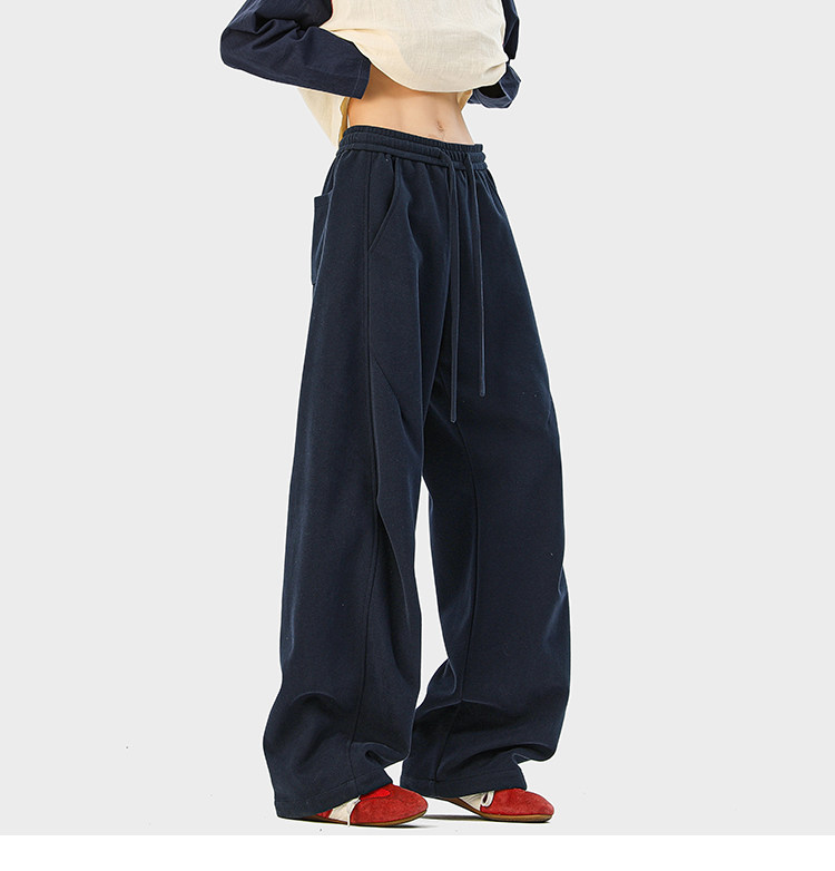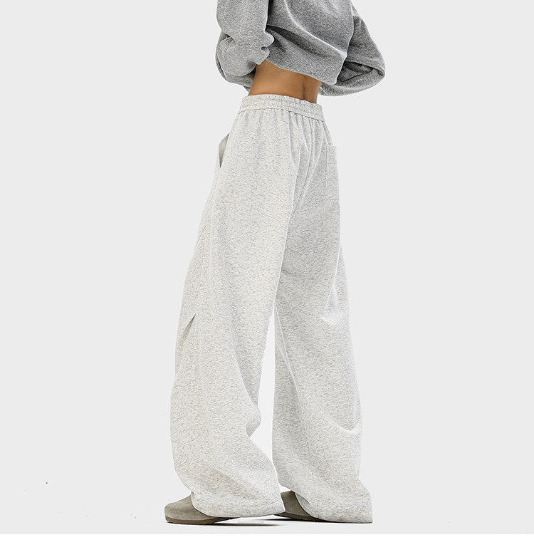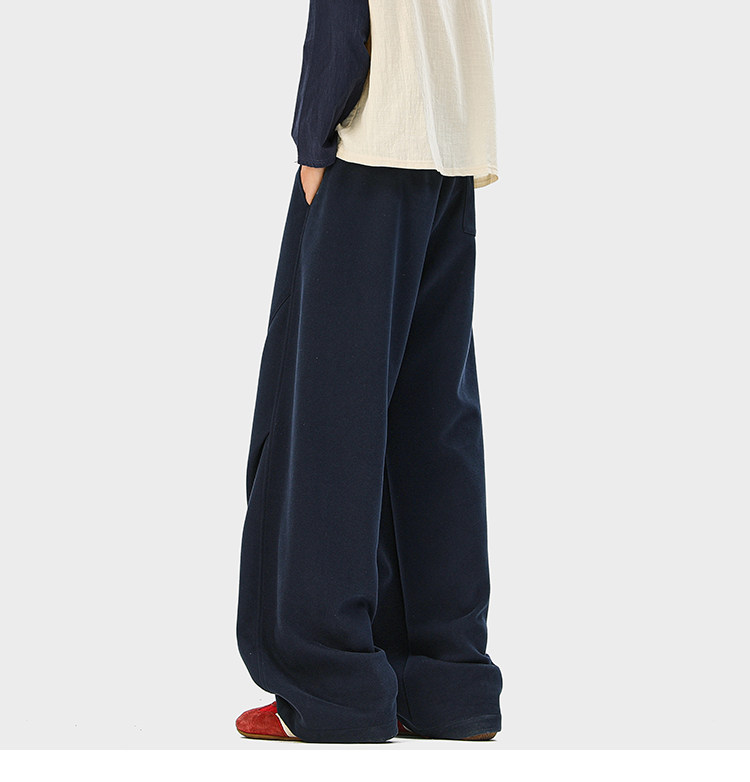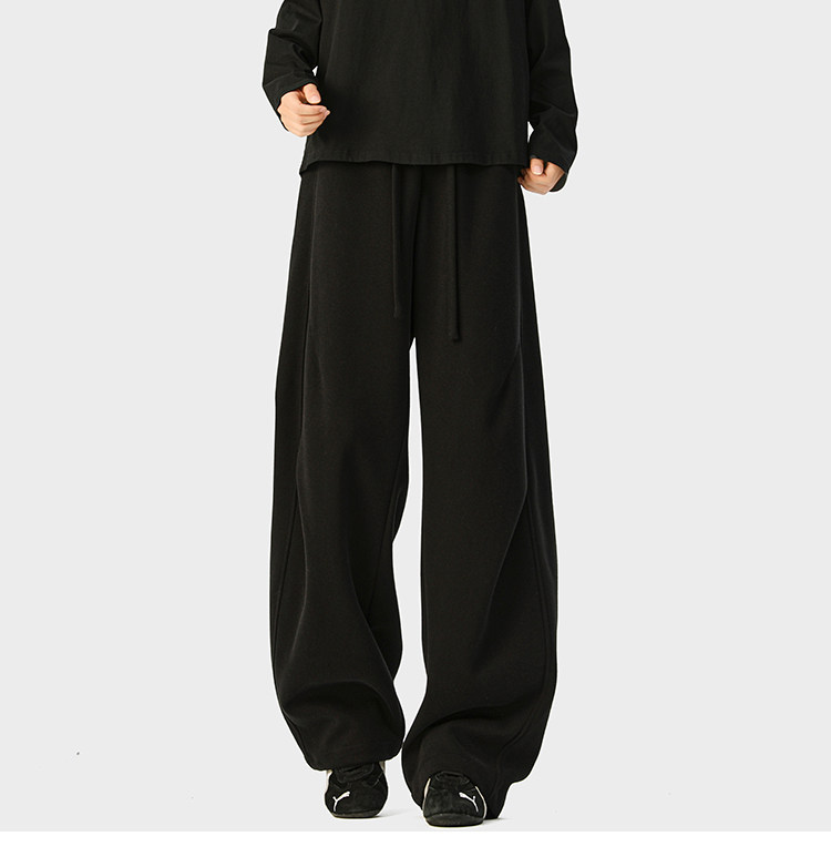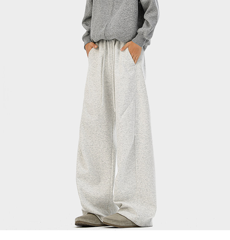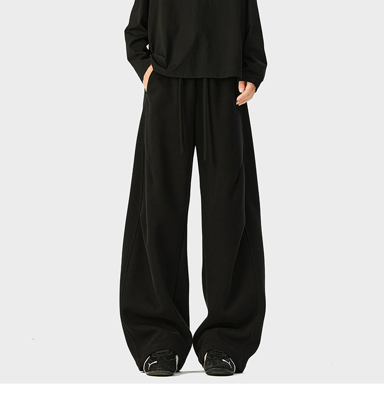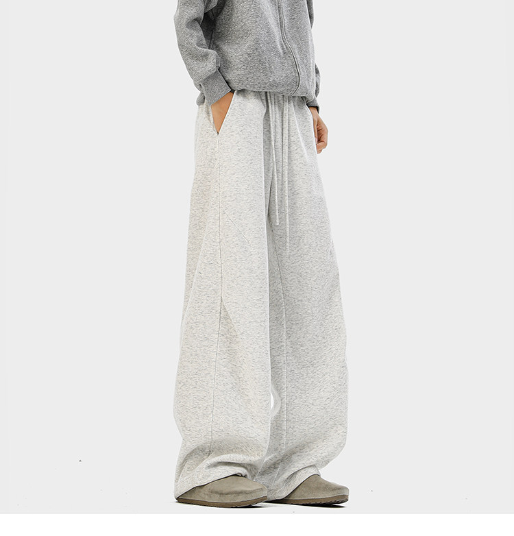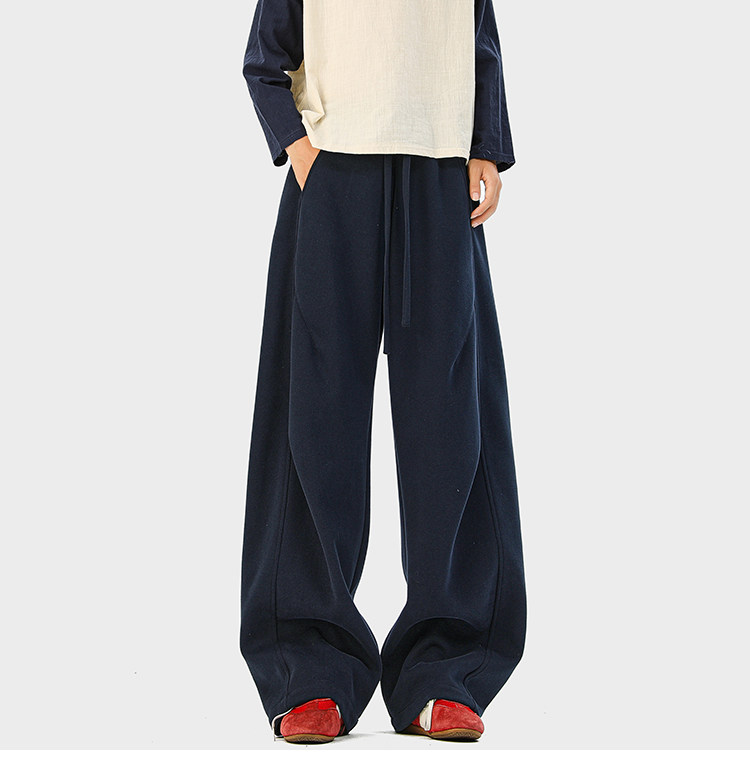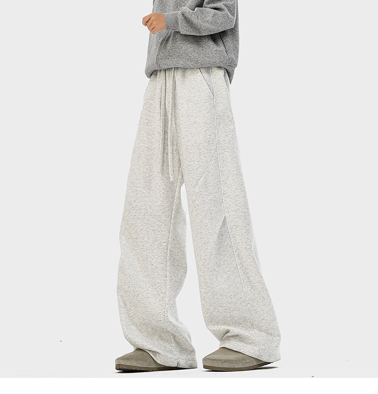 Heavyweight American-Style Sports Sweatpants for Men, Winter Trendy Brand Pleated Wide-Leg Casual Long Pants, High-Street Loose Straight-Leg Trousers