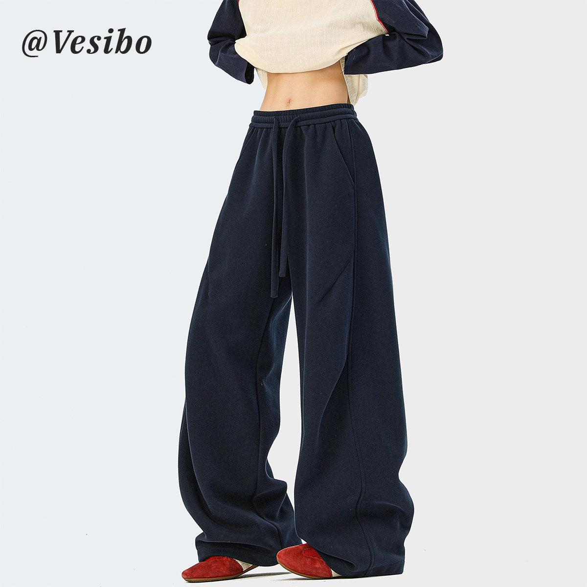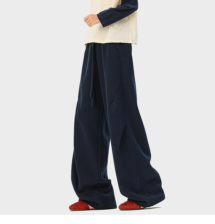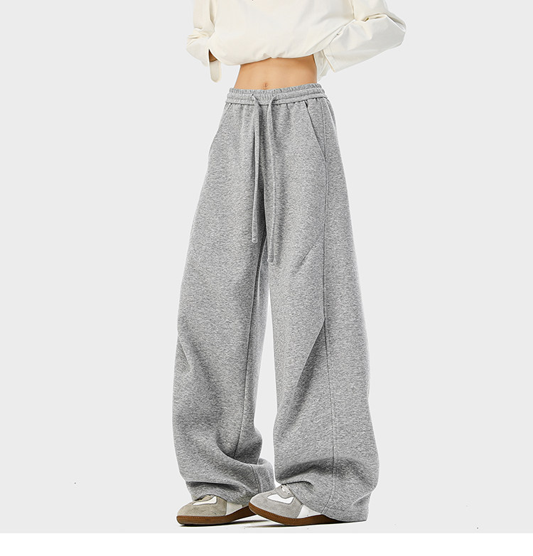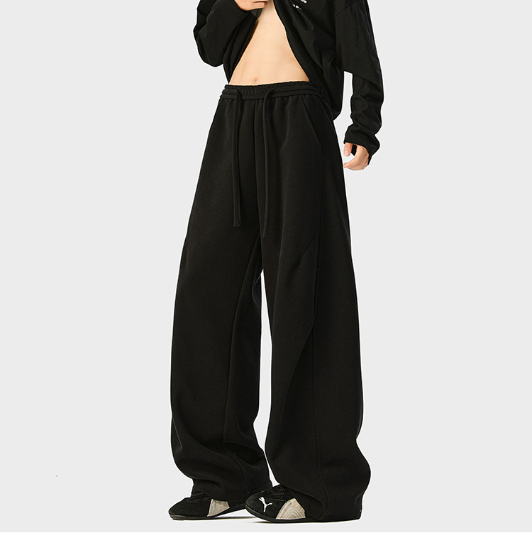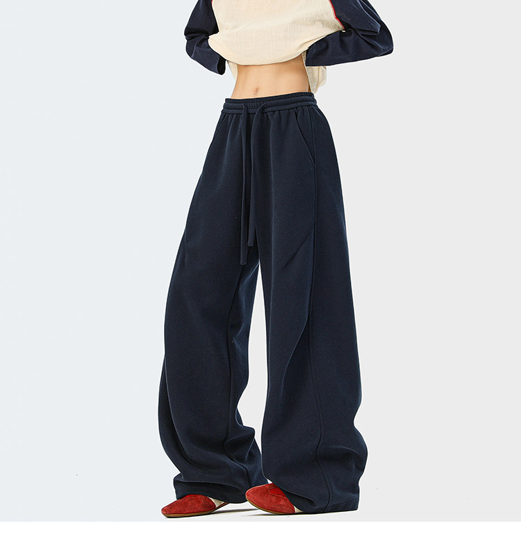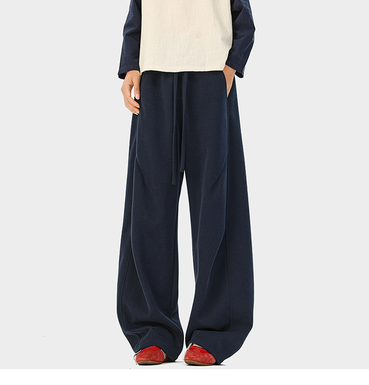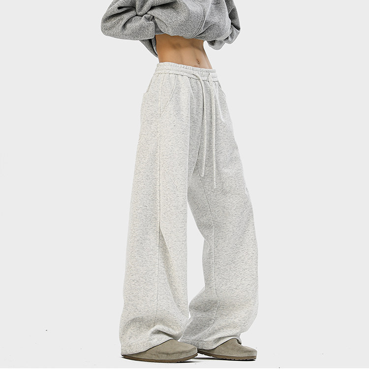 Heavyweight American-Style Sports Sweatpants for Men, Winter Trendy Brand Pleated Wide-Leg Casual Long Pants, High-Street Loose Straight-Leg Trousers