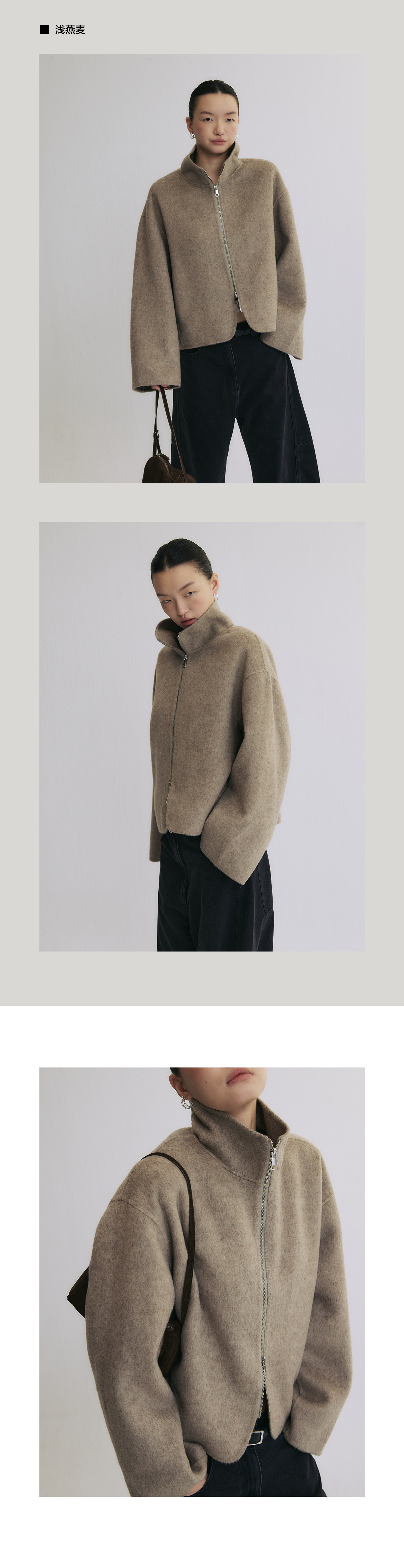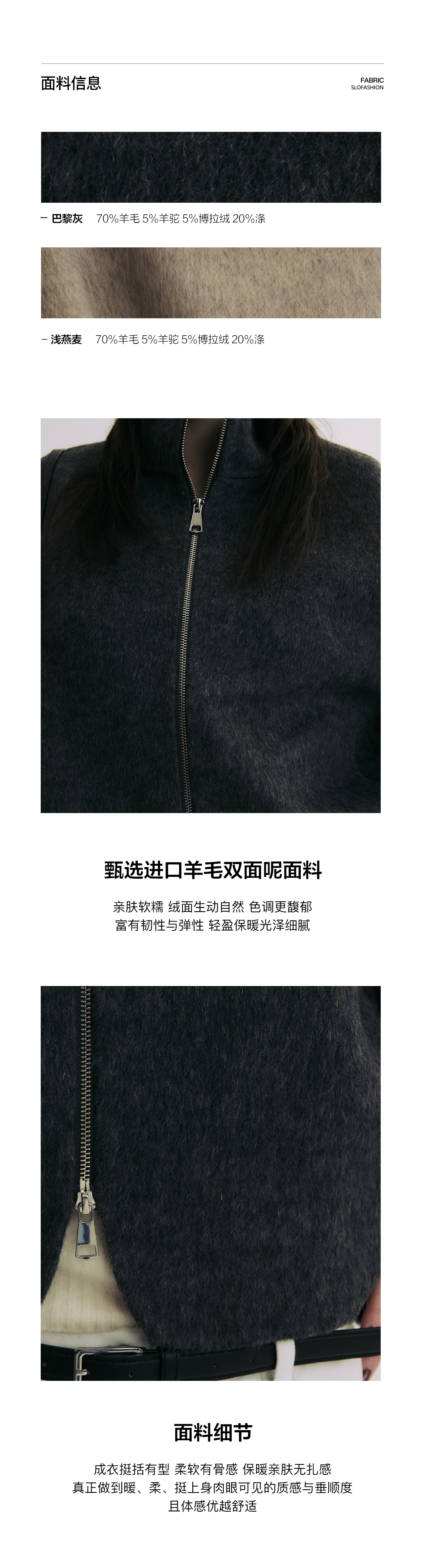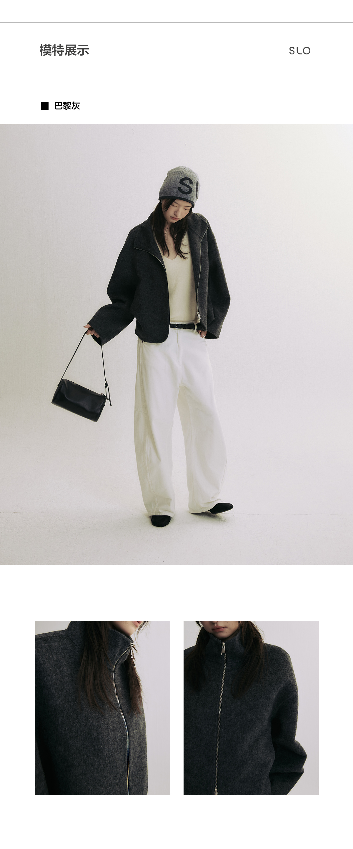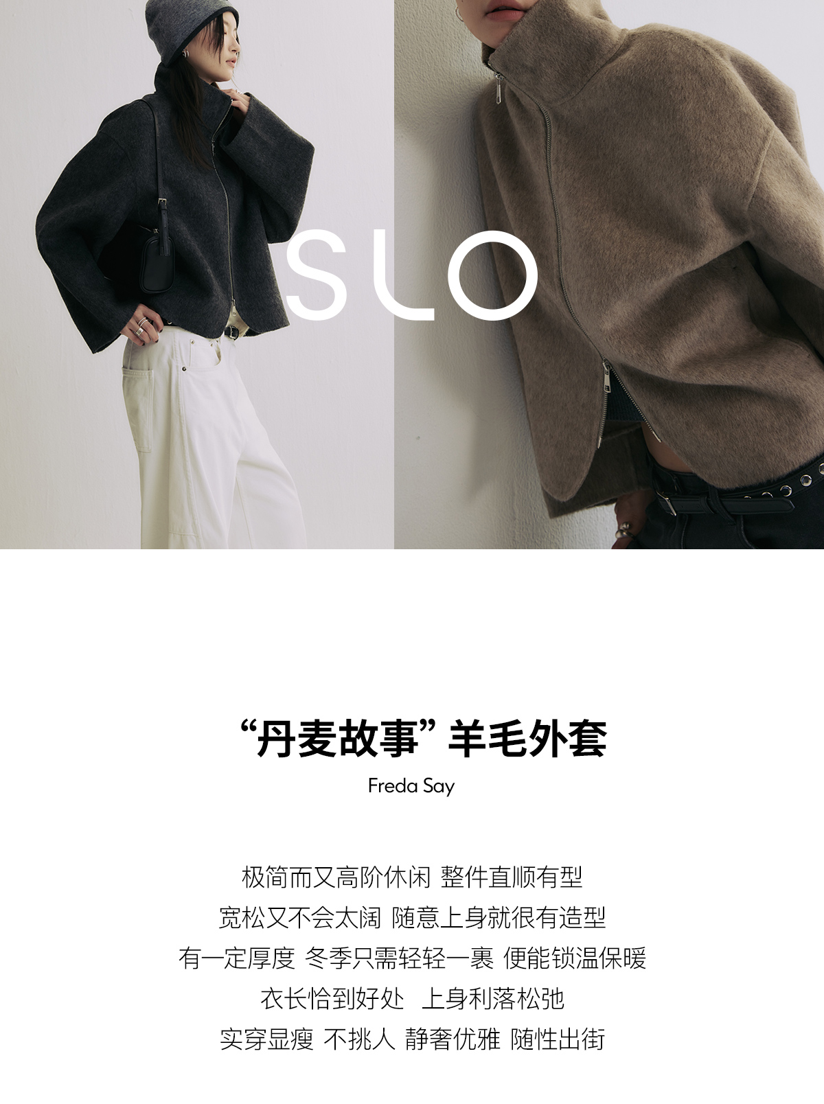 Slo "Danish Story" Short Wool Coat for Women 2025 New Double-Sided Wool High-End Gray Stand-Up Collar Top