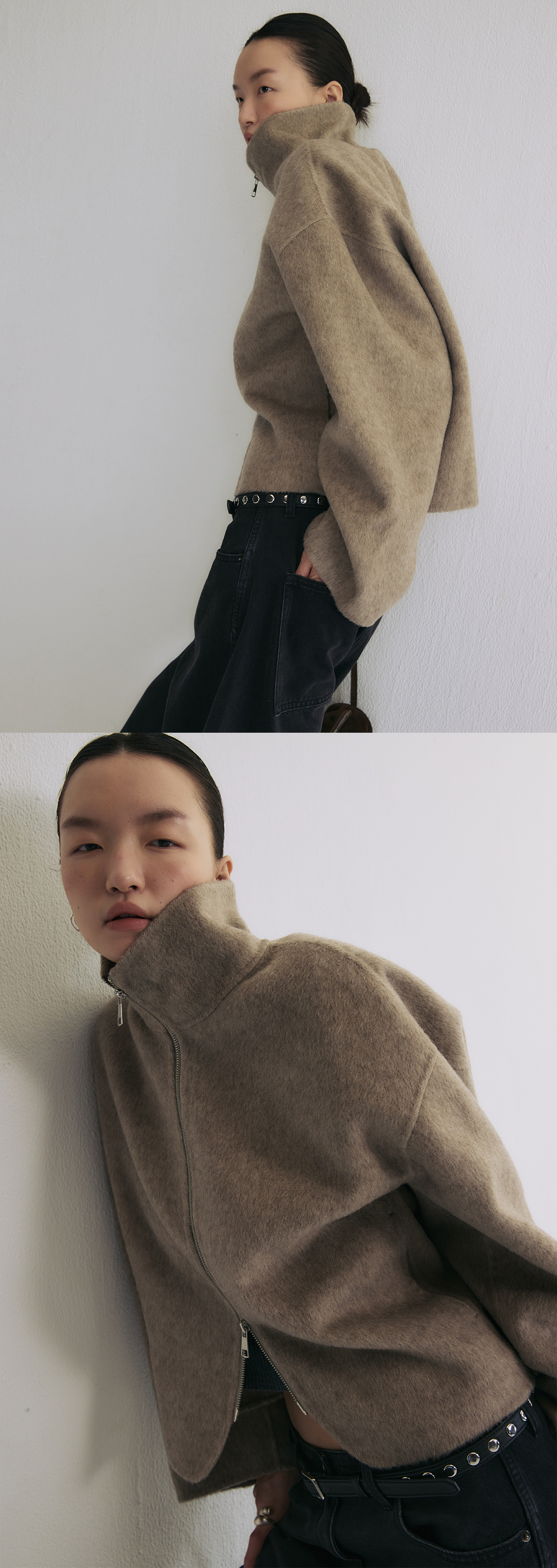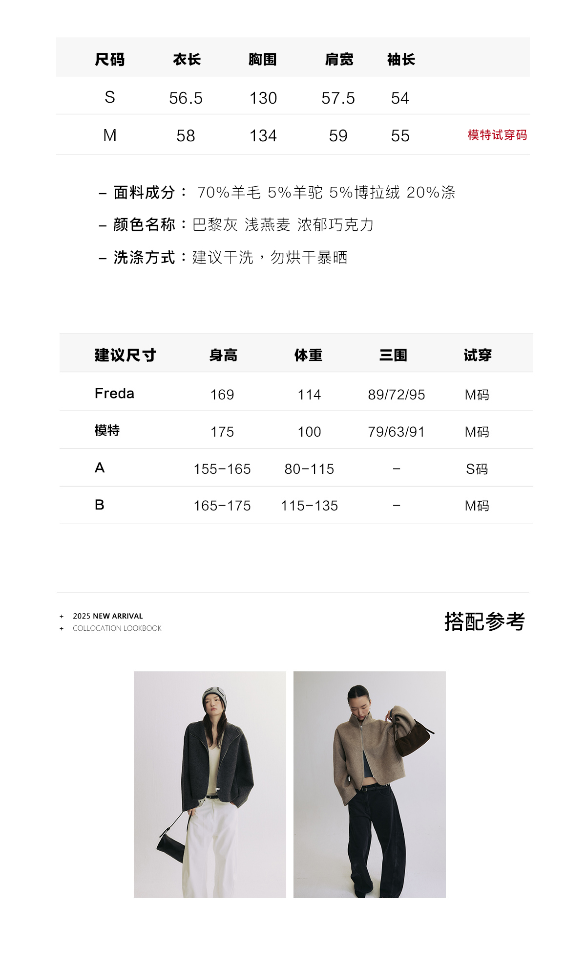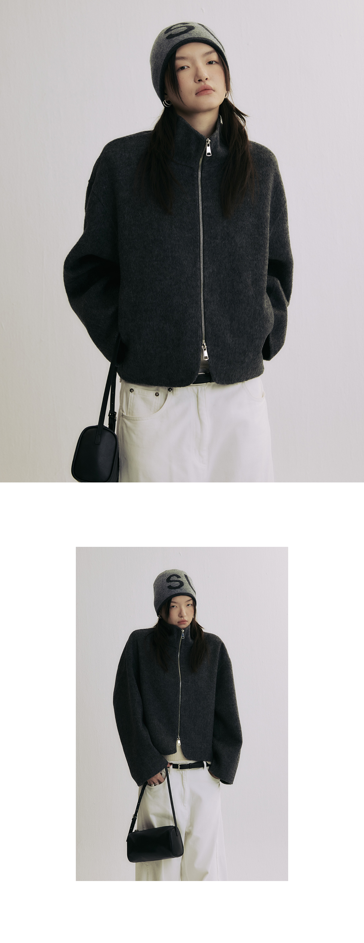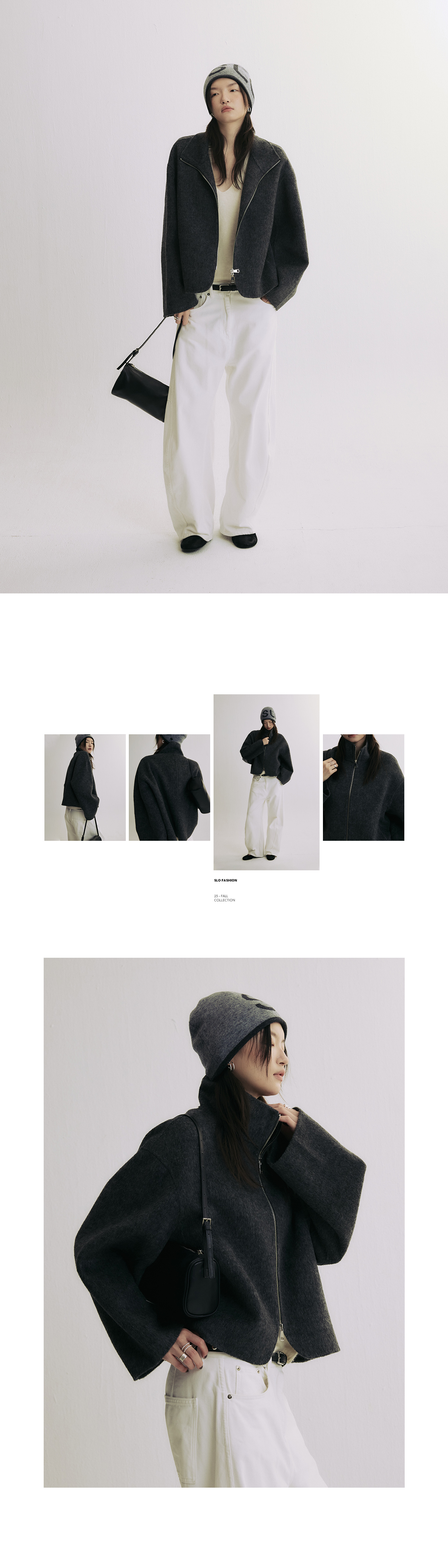 Slo "Danish Story" Short Wool Coat for Women 2025 New Double-Sided Wool High-End Gray Stand-Up Collar Top