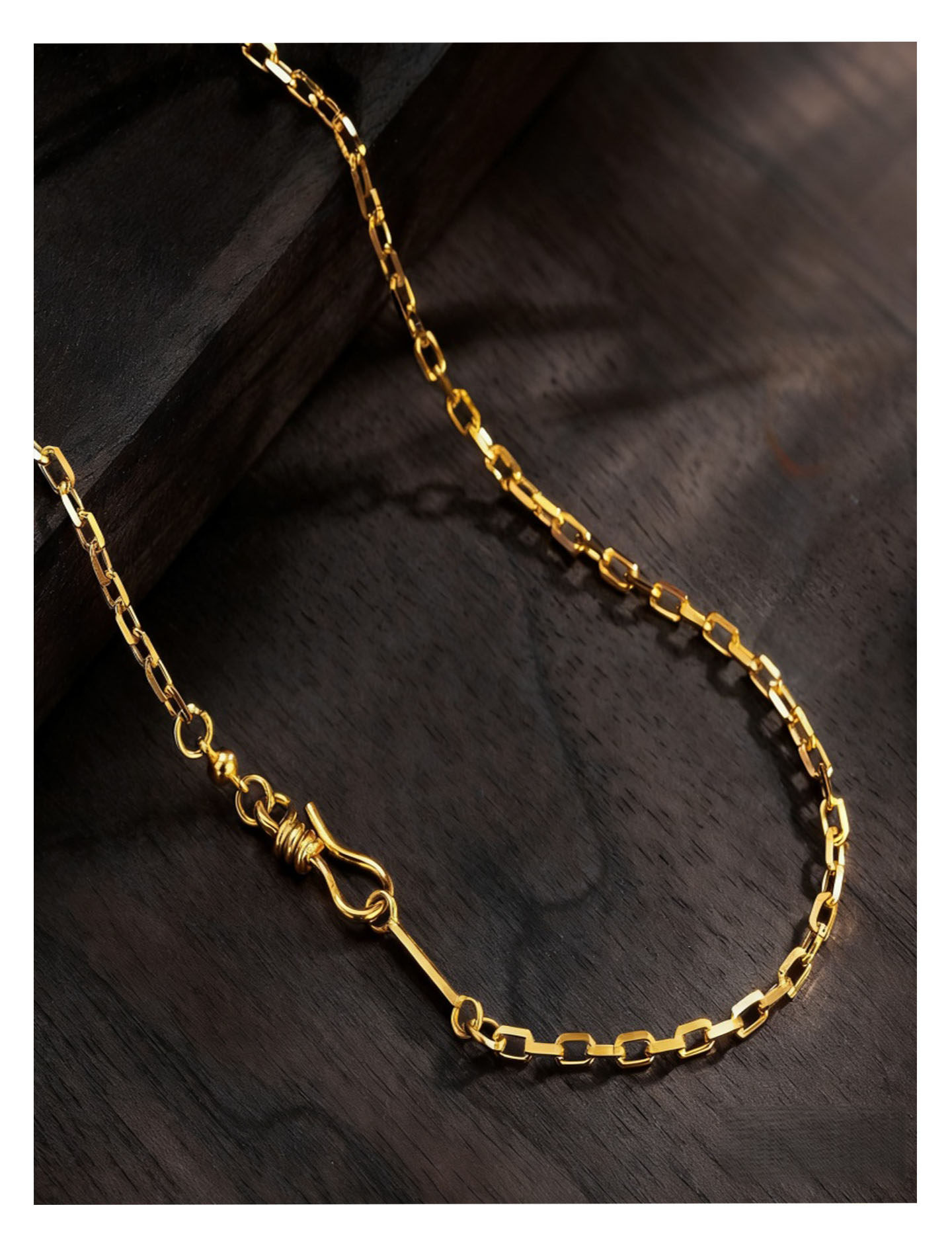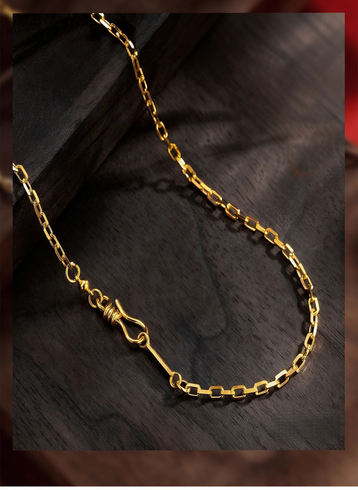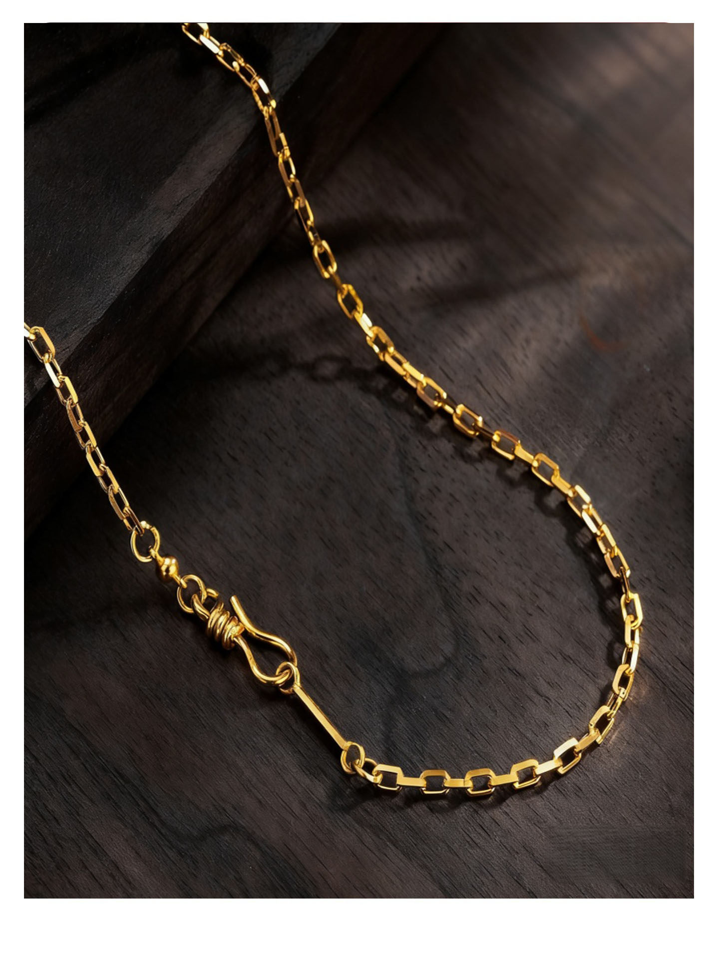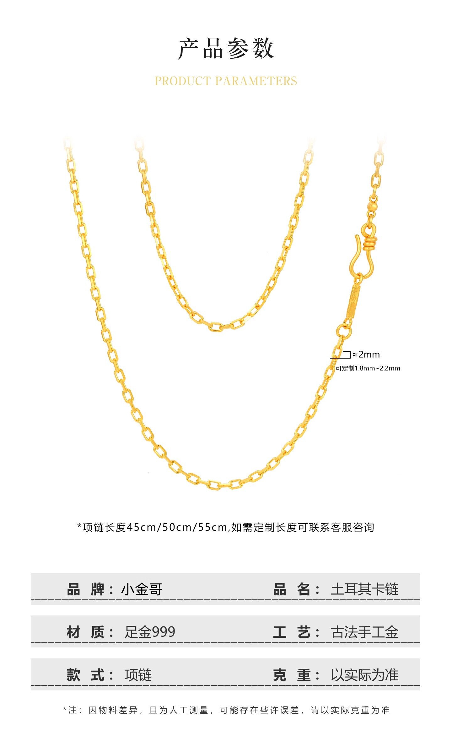 Little Golden Brother Gold Turkish Necklace Pure Gold 999 Long Cross Chain Pure Gold Plain Chain Clavicle Chain Gift
