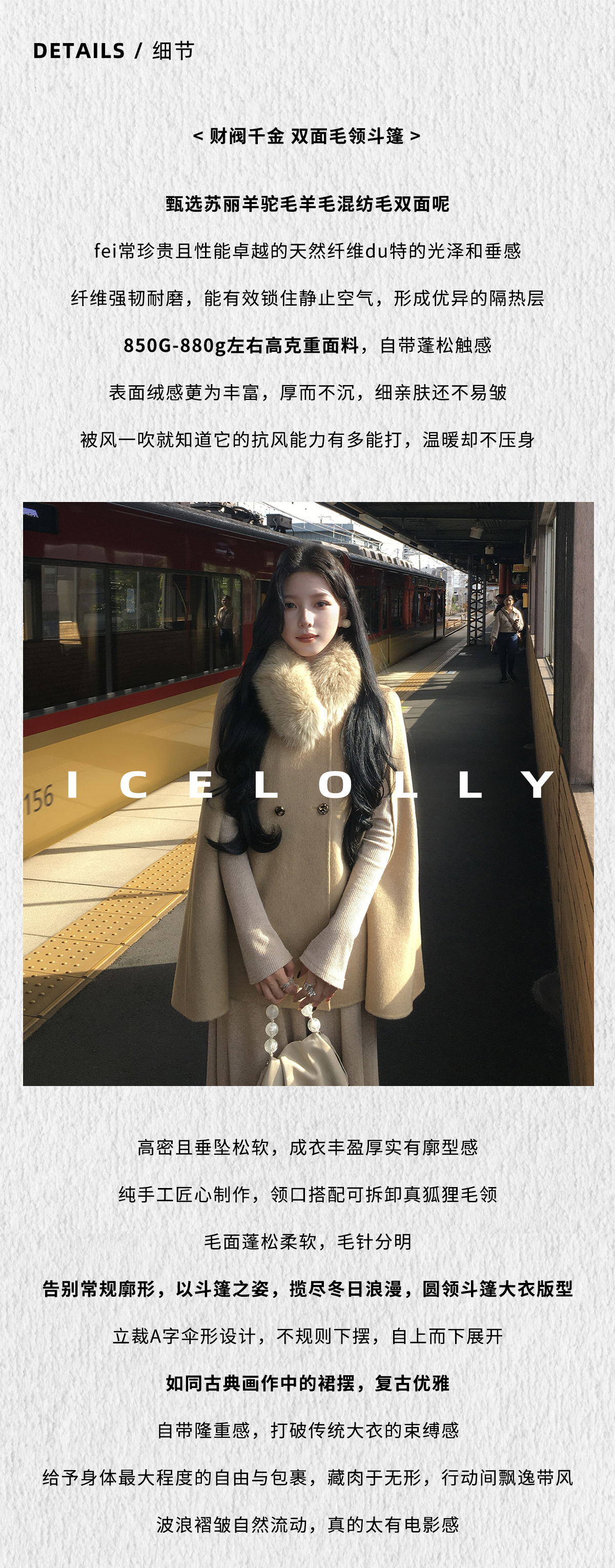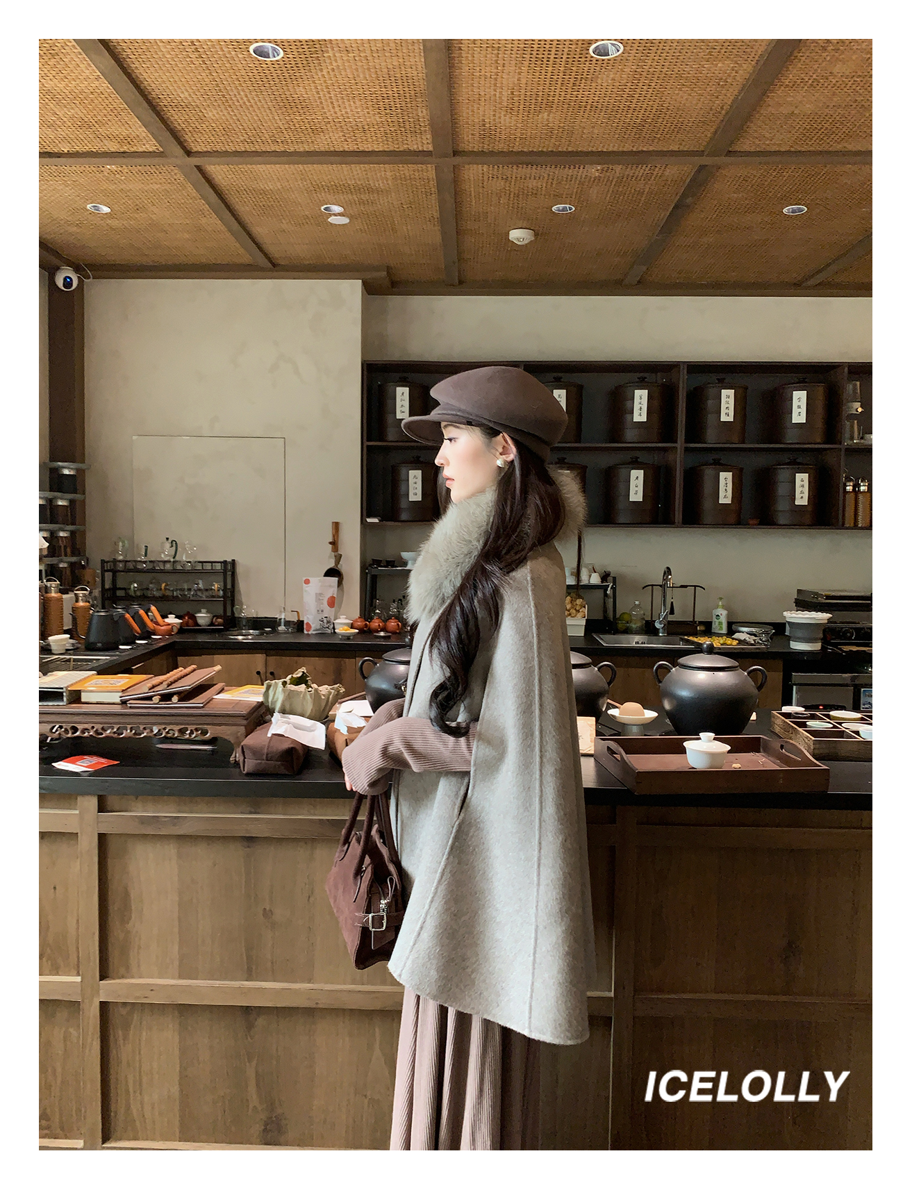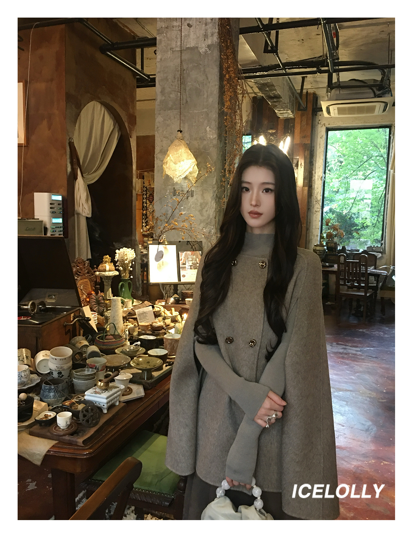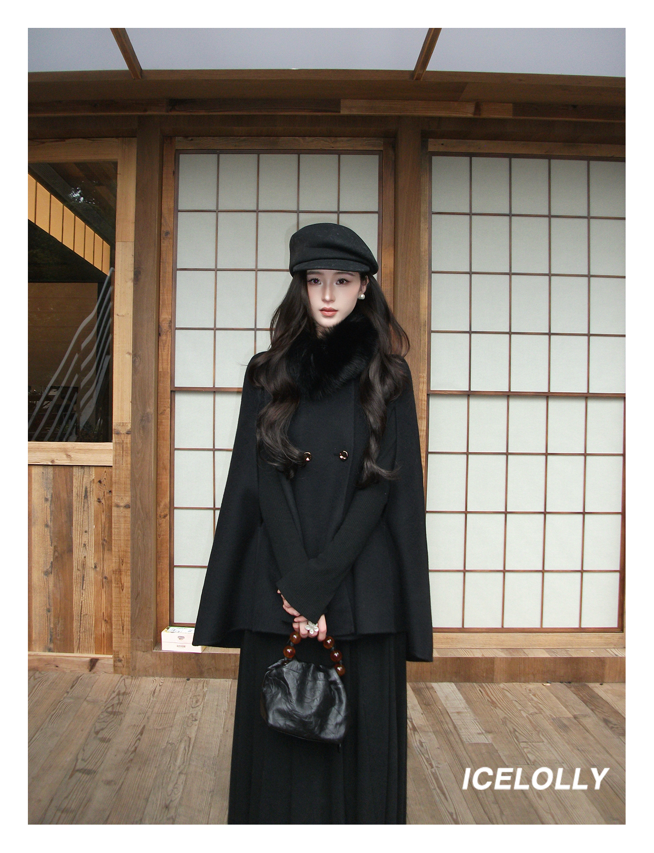 Icelolly【Rich Daughter】Wool Double-Sided Woolen Cape Woolen Coat for Women, Autumn and Winter Short Woolen Coat