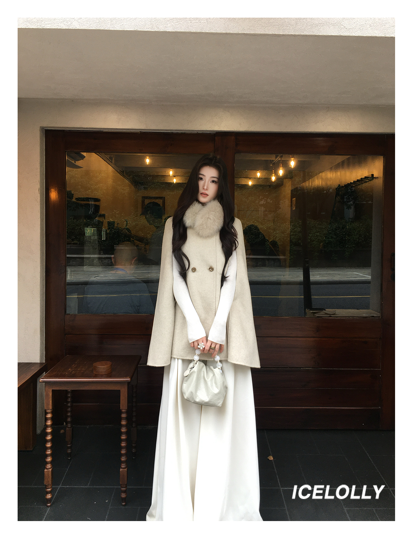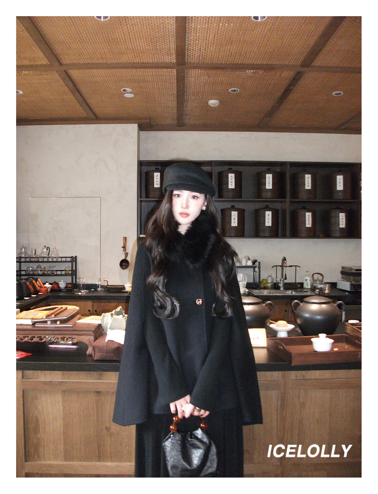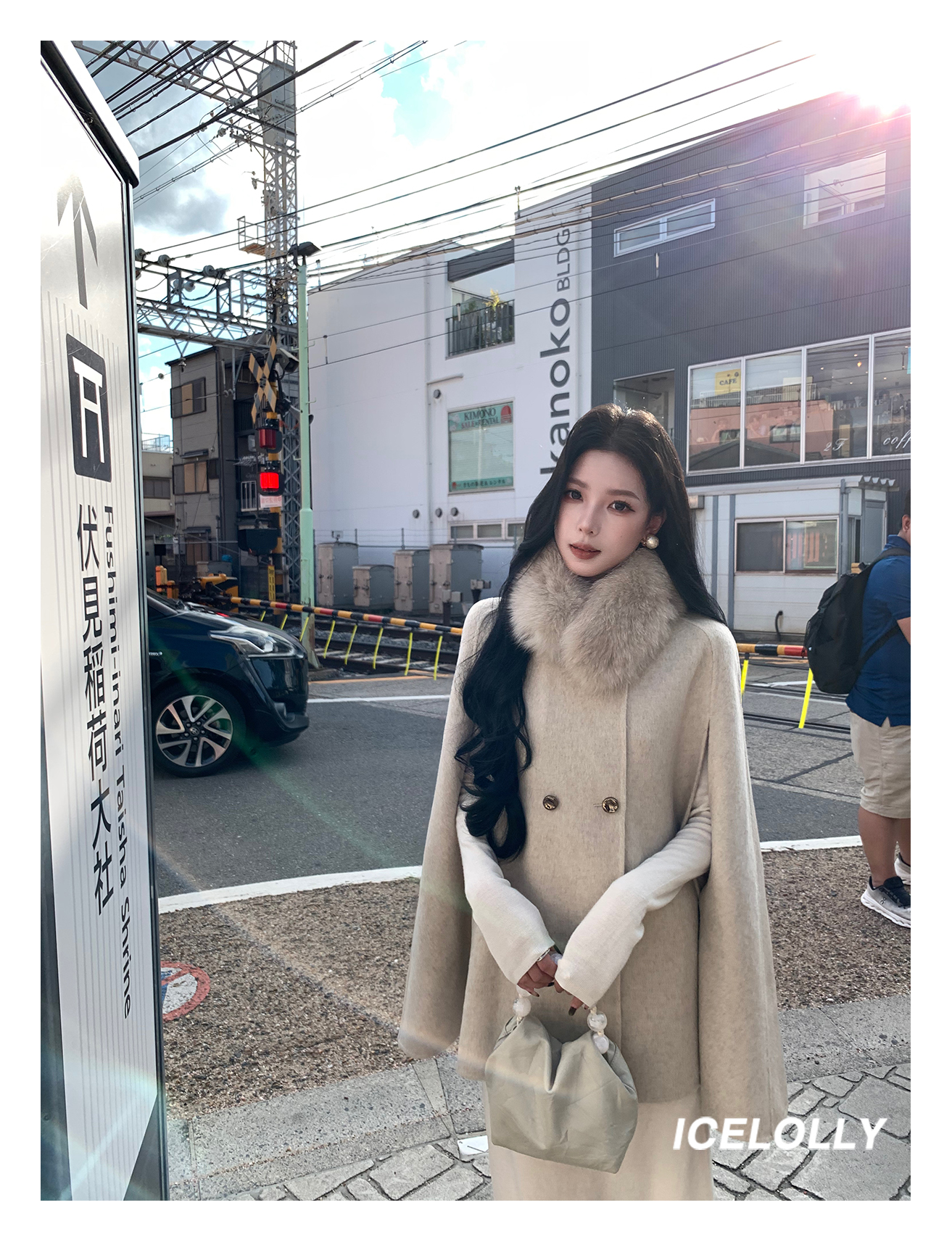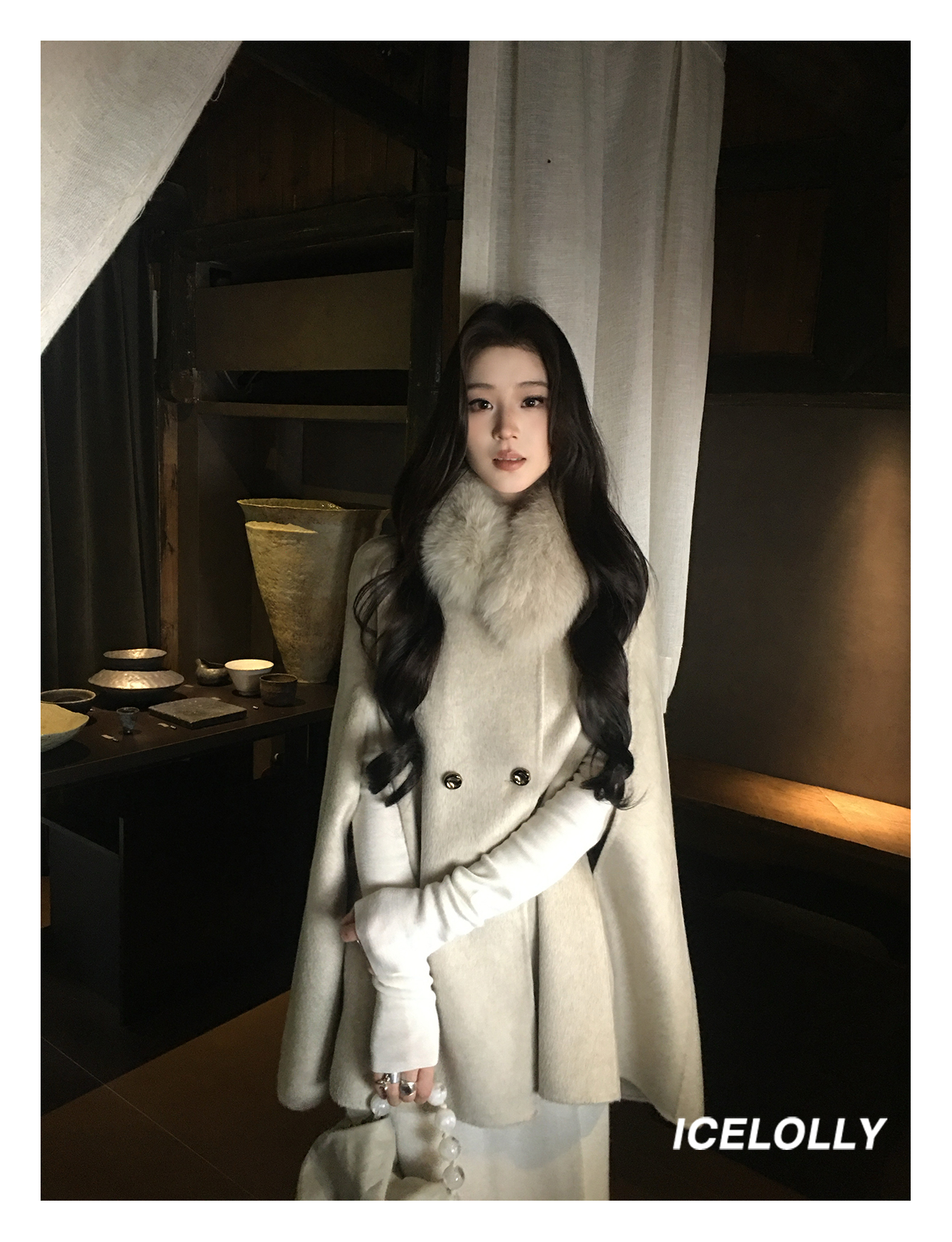 Icelolly【Rich Daughter】Wool Double-Sided Woolen Cape Woolen Coat for Women, Autumn and Winter Short Woolen Coat