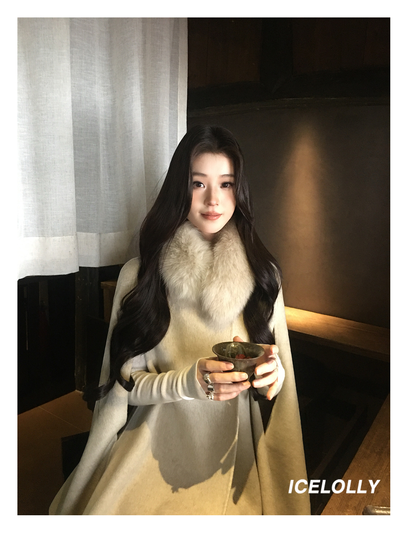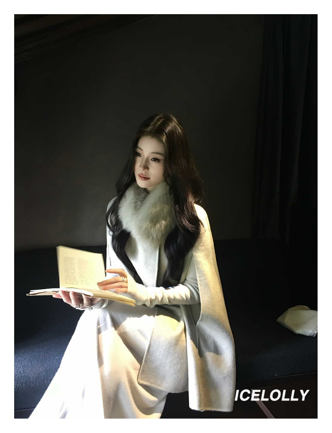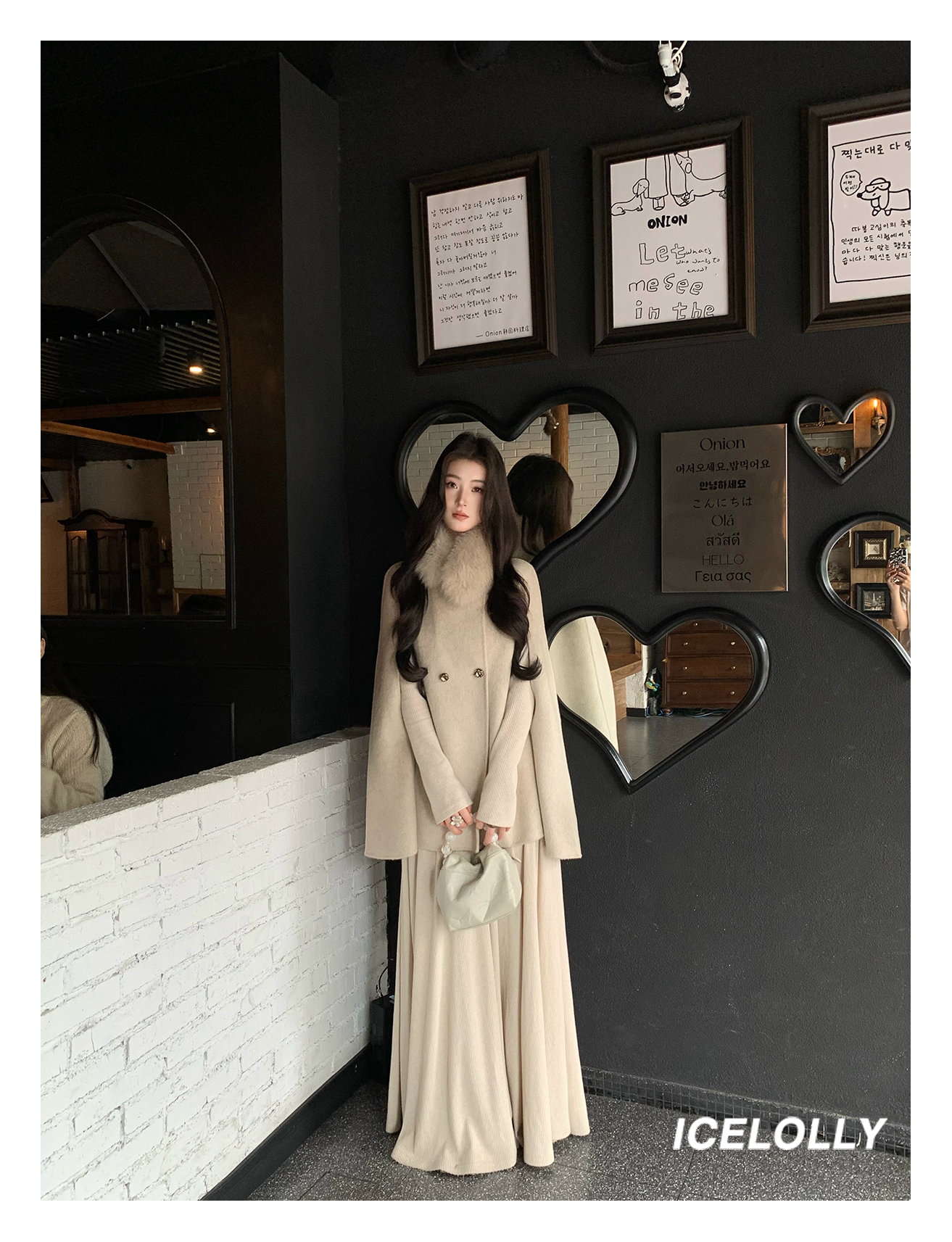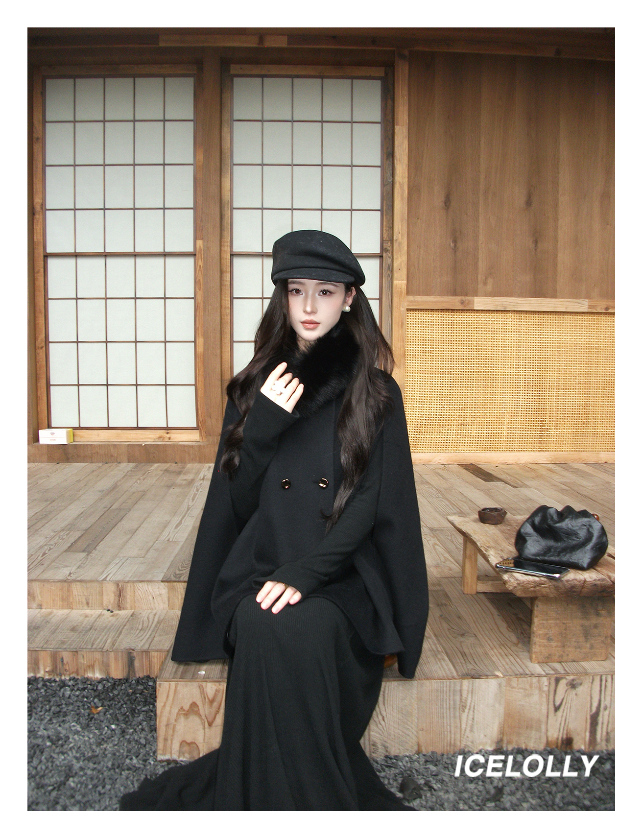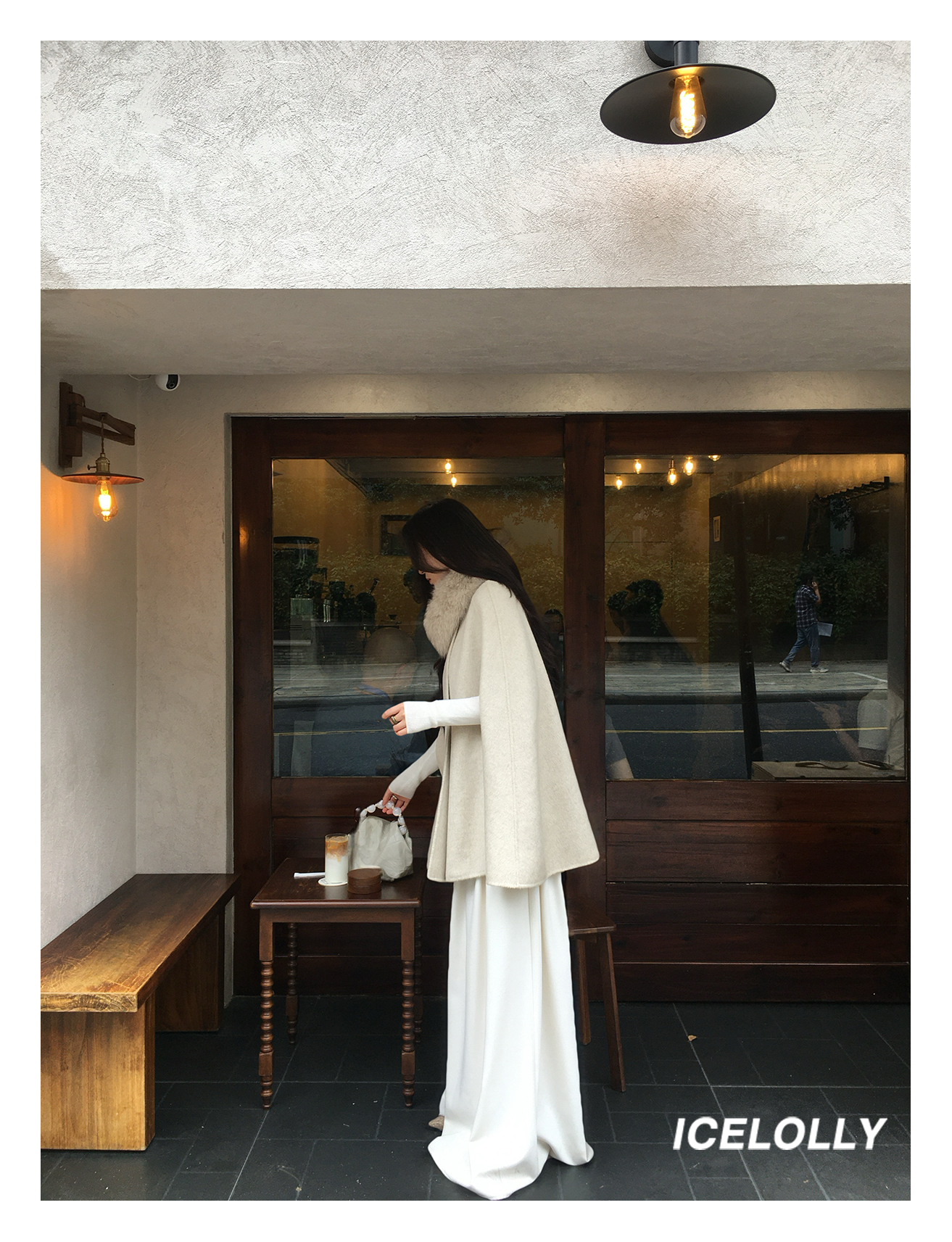 Icelolly【Rich Daughter】Wool Double-Sided Woolen Cape Woolen Coat for Women, Autumn and Winter Short Woolen Coat