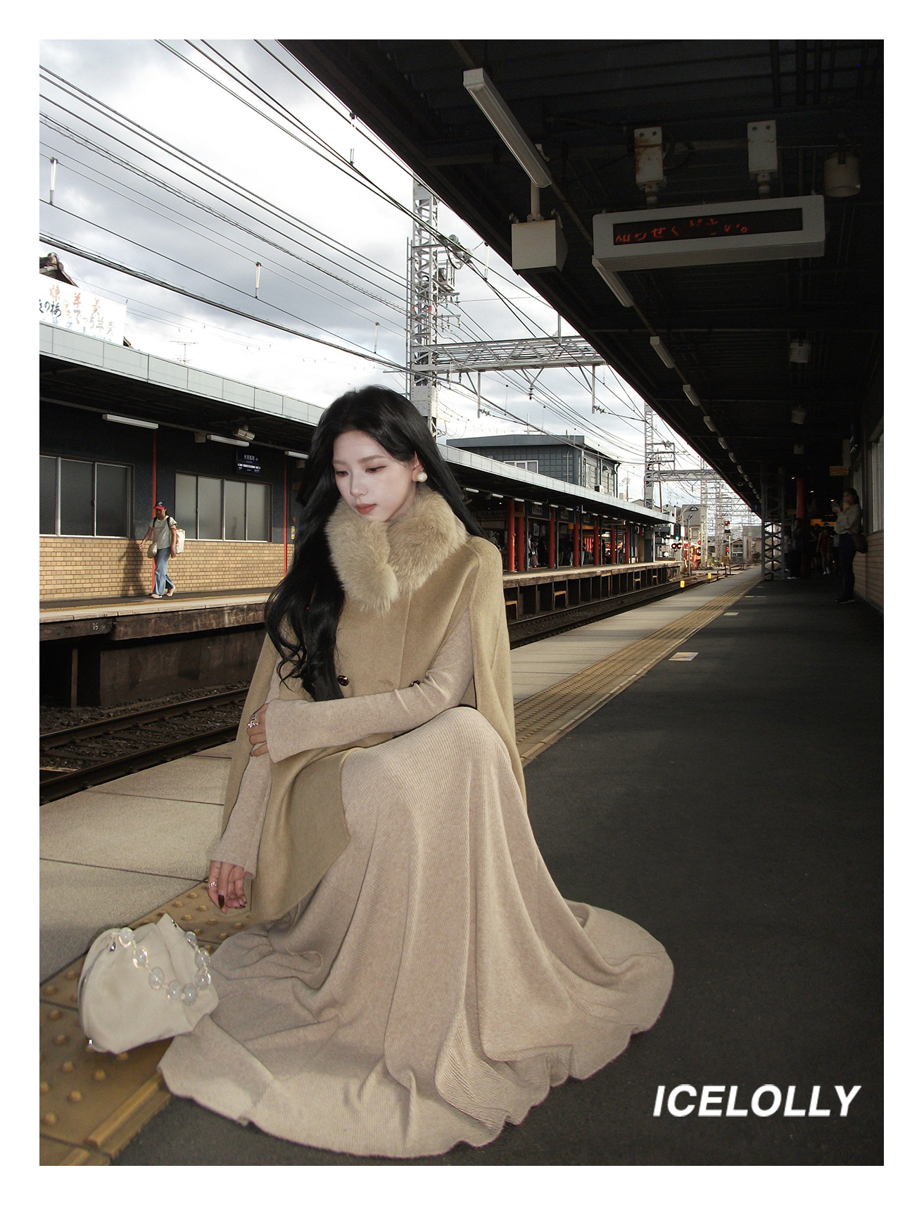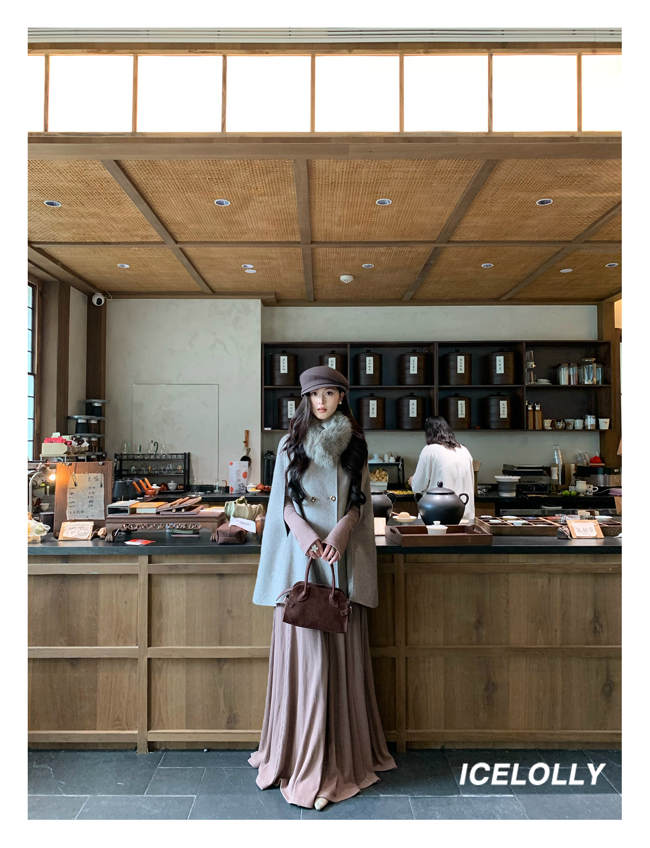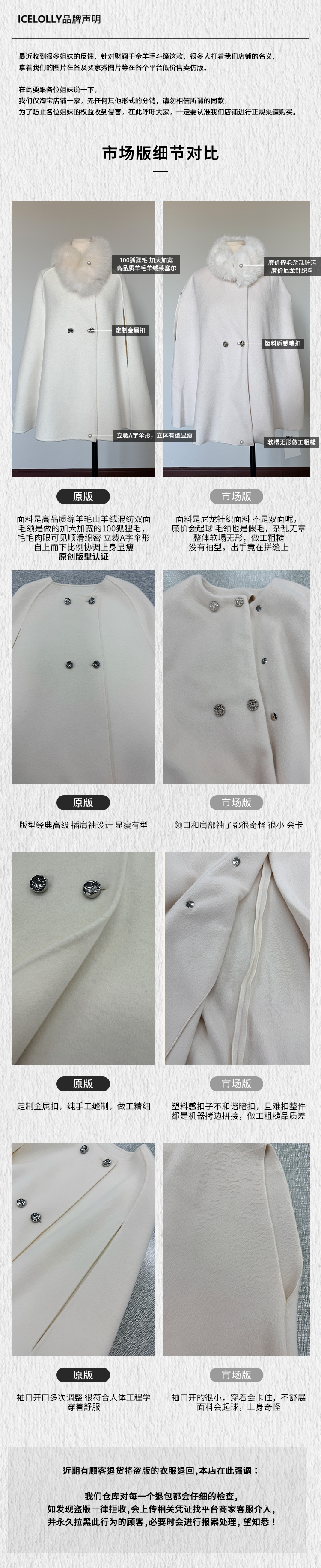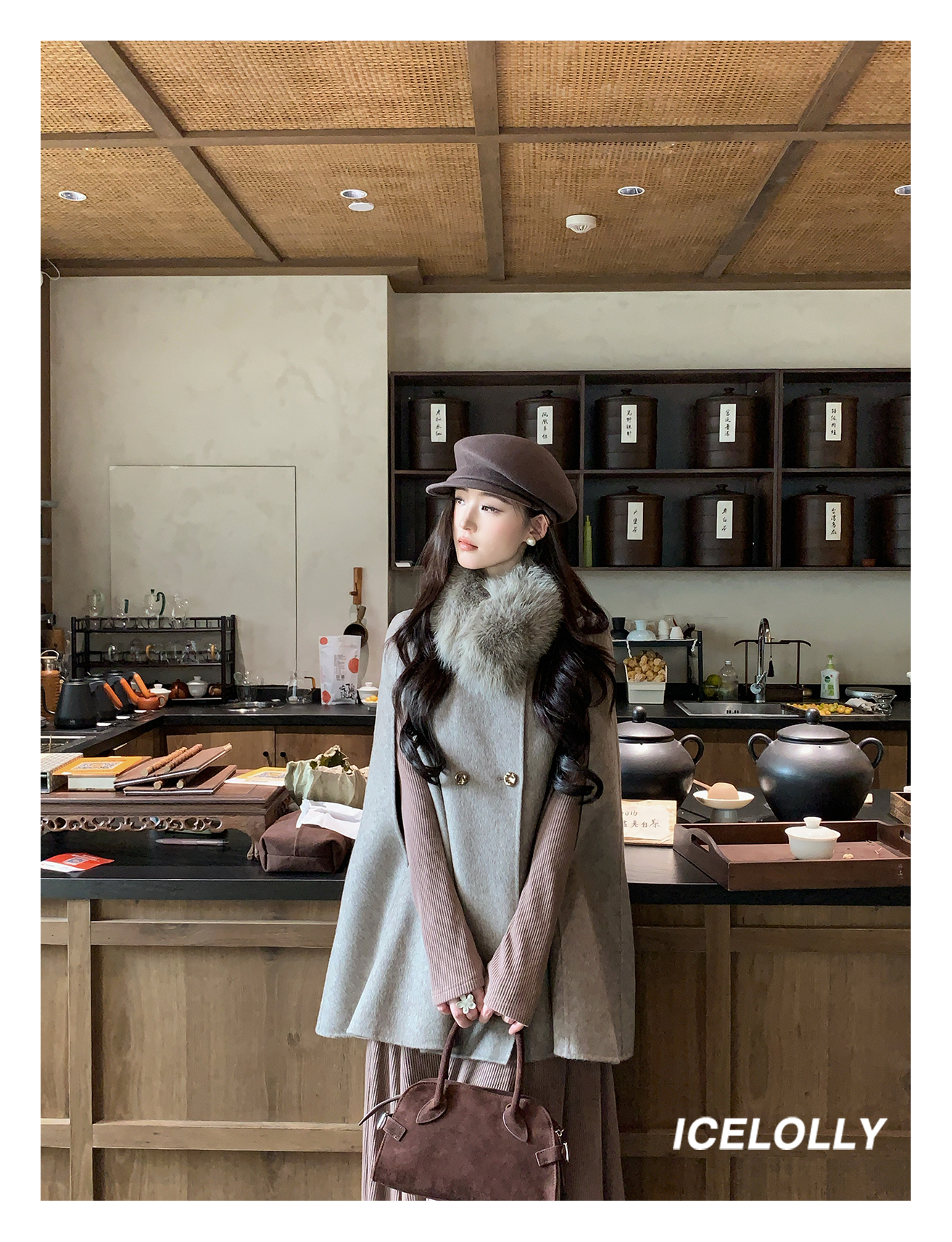 Icelolly【Rich Daughter】Wool Double-Sided Woolen Cape Woolen Coat for Women, Autumn and Winter Short Woolen Coat